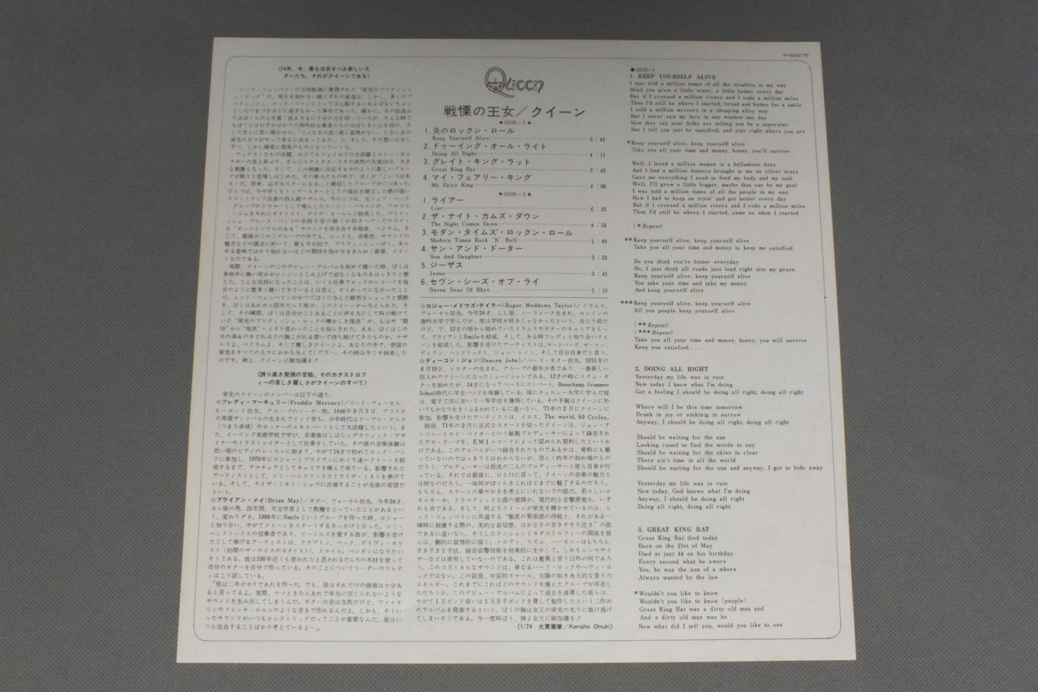 QUEENクイーン/1st ALBUM戦慄の女王 P-8427E 製造国:日本盤 / Media:LP外観:EX-盤の状態:EX+ 価格(税込):¥1,078(売約済) 送料 7inch:定形外郵便 360円~LP:定形外郵便 660円~送料は、注文の最終画面で確認頂けます。 > > QUEEN/1st ALBUM 外観 (EX-)特記事項:背スレやヘリスレ有り。外観EX-の共通説明:ダメージ軽度~多少。 中古品としては普通の状態。シミ、ヨゴレ、スレなど軽く~多少。 盤の状態 (EX+)特記事項:薄いスリキズ・スレ少し。一見してきれいな状態です。盤EX+の共通説明:盤面の極薄いスリキズ、スレ少し程度 音に出そうなものは無いように見える(極軽微なソフトティック音は除く)。 Tweet それぞれの画像をクリックすると、大きい写真が見られます こちらの商品もお勧めです