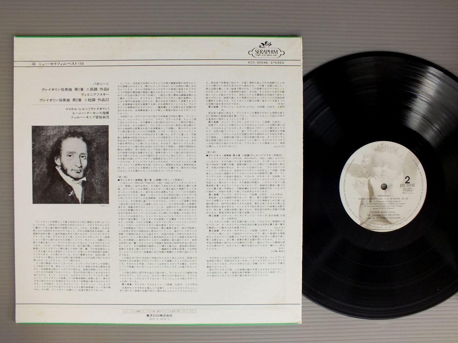 RABIN-EUGENE GOOSSENSレビン-ユージン・グーセンス/PAGANINI-VIOLIN CONC. NO1 etcパガニーニ-ヴァイオリン協奏曲 第1番 他 ECC30046 製造国:日本盤 / Media:LP外観:EX盤の状態:EX+ 価格(税込):¥1,320(売約済) 送料 7inch:定形外郵便 360円~LP:定形外郵便 660円~送料は、注文の最終画面で確認頂けます。 > > RABIN-EUGENE GOOSSENS/PAGANINI-VIOLIN CONC. NO1 etc 外観 (EX)特記事項:裏ジャケにシミやよごれ。外観EXの共通説明:ダメージが限定的。中古品としては保存状態がよい方。シミ、ヨゴレ、スレ 少し~軽度。 盤の状態 (EX+)特記事項:薄いスリキズ・スレ少し。一見してきれいな状態です。盤EX+の共通説明:盤面の極薄いスリキズ、スレ少し程度 音に出そうなものは無いように見える(極軽微なソフトティック音は除く)。 Tweet それぞれの画像をクリックすると、大きい写真が見られます こちらの商品もお勧めです 990円 MUNCHミュンシュ / DUTILLEUX-METABOLESデュティーユ-メタボール-オネゲル-交響曲 第4番 バジリアの喜び 990円 KARAJAN-MICHEL SCHWALBEカラヤン-ミシエル・シュヴァルベ / R. STRAUSS-EIN HELDENLEBENR・シュトラウス-英雄の生涯 990円 BOHM - BERLIN PHILHARMONICベーム - ベルリン・フィル / MOZART - POSTHORN SERENADE KV320モーツァルト - セレナード第9番6番 990円 KARAJAN etcカラヤン 他 / BEETHOVEN/OVERTURE CORIOLAN etcベートーヴェン/コリオラン序曲 他 990円 FRITZ REINER - CHICAGO SYM.フリッツ・ライナー - シカゴ交響楽団 / BARTOK - MUSIC FOR STRINGSバルトーク - 弦楽器と打楽器とチェレスタのための音楽 990円 ROBERT STOLZ - VIENNA SYM.ロベルト・シュトルツ - ウィーン交響楽団 / J.STRAUSS 2 - AN DER SCHONEN BLAUEN DONAUJ.シュトラウス2 - 美しく青きドナウ 他 990円 KEMPE - MUNCHNER PHILHARMONIKERケンペ - ミュンヘン・フィルハーモニー管弦楽団 / BRUCKNER - SINFONIE NR.4ブルックナー・ロマンティック 990円 KARAJANカラヤン / MOZART-SYM. NO40-41JUPITERモーツァルト交響曲第40番、第41番 ジュピター