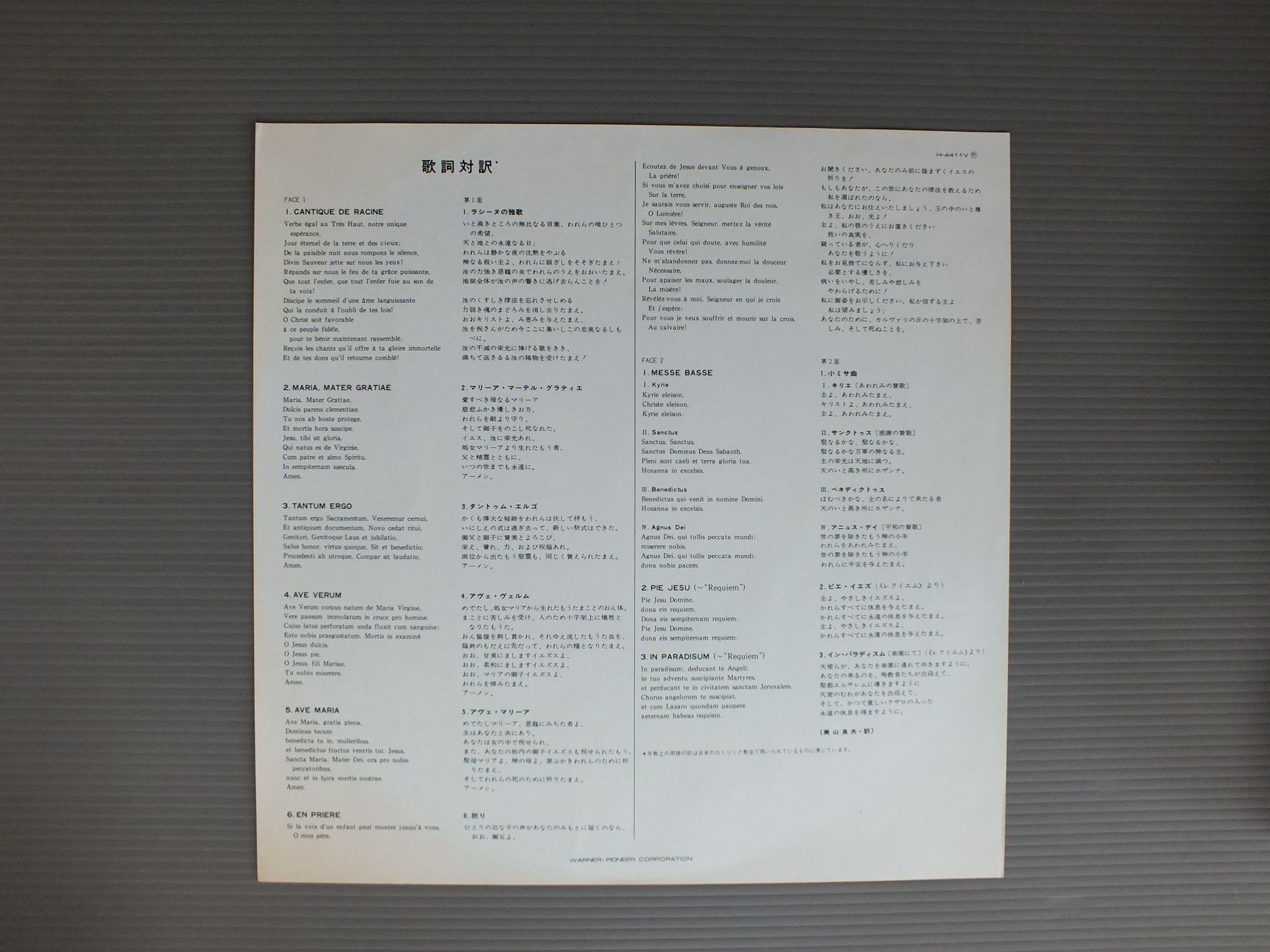 CHOIR GABRIERL FAUREガブリエル・フォーレ少年合唱団/FAURE-VOCAL WORKSフォーレ-合唱曲集 H4411V 製造国:日本盤 / Media:LP外観:EX盤の状態:EX+帯:EX 価格(税込):¥1,210(売約済) 送料 7inch:定形外郵便 360円~LP:定形外郵便 660円~送料は、注文の最終画面で確認頂けます。 > > CHOIR GABRIERL FAURE/FAURE-VOCAL WORKS 外観 (EX)特記事項:裏ジャケにシミやよごれ。外観EXの共通説明:ダメージが限定的。中古品としては保存状態がよい方。シミ、ヨゴレ、スレ 少し~軽度。 盤の状態 (EX+)特記事項:薄いスリキズ・スレ少し。一見してきれいな状態です。盤EX+の共通説明:盤面の極薄いスリキズ、スレ少し程度 音に出そうなものは無いように見える(極軽微なソフトティック音は除く)。 帯の状態 (EX):シミやよごれ有り。 Tweet それぞれの画像をクリックすると、大きい写真が見られます こちらの商品もお勧めです 2,420円 MAAZEL - ORCHESTRE NATIONAL DE FRANCEマゼール - フランス国立管弦楽団 / BIZET - CARMEN 3LP BOXビゼー - カルメン 3枚組 990円 HUSCHヒュッシュ / SCHUBERT-DIE SCHONE MULLERINシューベルト-歌曲集 美しき水車屋の娘 990円 SCHREIER-SHETLERシュライアー-シェトラー / SCHUMANN DICHTERLIEBE OP48 LIEDERKREIS OP24シューマン 歌曲集`詩人の恋` リーダークライス 990円 ROGER WAGNER CHORALEロジェー・ワーグナー合唱団 / ECHOES FROM A 16TH CENTURY CATHEDRAL16世紀の聖堂の響き 990円 MUTSUMU SHIBATA柴田睦陸 / RICITALリサイタル(叙勲記念) 990円 PETER SCHREIER-MARTIN FLAMIGペーター・シュライアー-マルティーン・フレーミヒ / SCHUTZ-AUFERSTEHUNGS-HISTORIE SWV50 EASTER ORATORIOシュッツ-復活祭オラトリオ 990円 SERGE JAROFFセルゲイ・ジャーロフ / DARK EYES黒い瞳-ドン・コサック愛唱歌集 2,420円 BOHM - ORCHESTER DES NATIONALTHEATERS PRAGベーム - プラハ国立場管弦楽団 / MOZART - DON GIOVANNI 2LP BOXモーツアルト - ドン・ジョヴァンニ 2枚組
