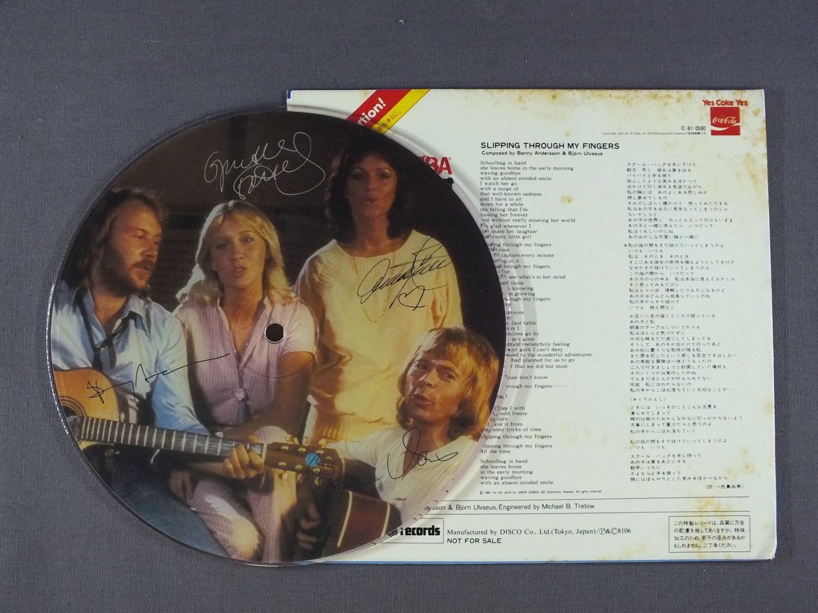 ABBAアバ/COCA COLA PICTURE DISCコカ・コーラ・ピクチャー盤 PD105 製造国:日本盤 / Media:7inch外観:VG+盤の状態:EX- 価格(税込):¥2,200(売約済) 送料 7inch:定形外郵便 360円~LP:定形外郵便 660円~送料は、注文の最終画面で確認頂けます。 > > ABBA/COCA COLA PICTURE DISC 外観 (VG+)特記事項:ジャケ表面にシミやよごれ有り。外観VG+の共通説明:ダメージやや有り。シミ、ヨゴレ、スレなど多少~やや多め。 盤の状態 (EX-)特記事項:軽微な感じですが、薄いスレキズ有り。盤EX-の共通説明:盤面のスリキズが多少有り。音に出そうなものは殆ど無いように見える~さほど気にならないぐらいの軽いプチ数カ所程度。 Tweet それぞれの画像をクリックすると、大きい写真が見られます こちらの商品もお勧めです 1,210円 ABBAアバ / ABBA GREATEST HITS VOL2アバ・グレイテスト・ヒッツ VOL2 990円 ABBAアバ / VOULEZ-VOUSヴーレ・ヴー 770円 ABBAアバ / VOULEZ-VOUSヴーレ・ヴー 770円 MARC BOLANマーク・ボラン / YOU SCARE ME TO DEATH霊魂の叫び 2,750円 SHOCKING BLUEショッキング・ブルー / LIVE IN JAPANLIVE IN JAPAN 990円 BEE GEESビー・ジーズ / SPIRITS HAVING FLOWN失われた愛の世界 440円 BAY CITY ROLLERSベイ・シティ・ローラーズ / WOULDN`T YOU LIKE IT ?青春のアイドル 770円 ABBAアバ / ARRIVALアライバル