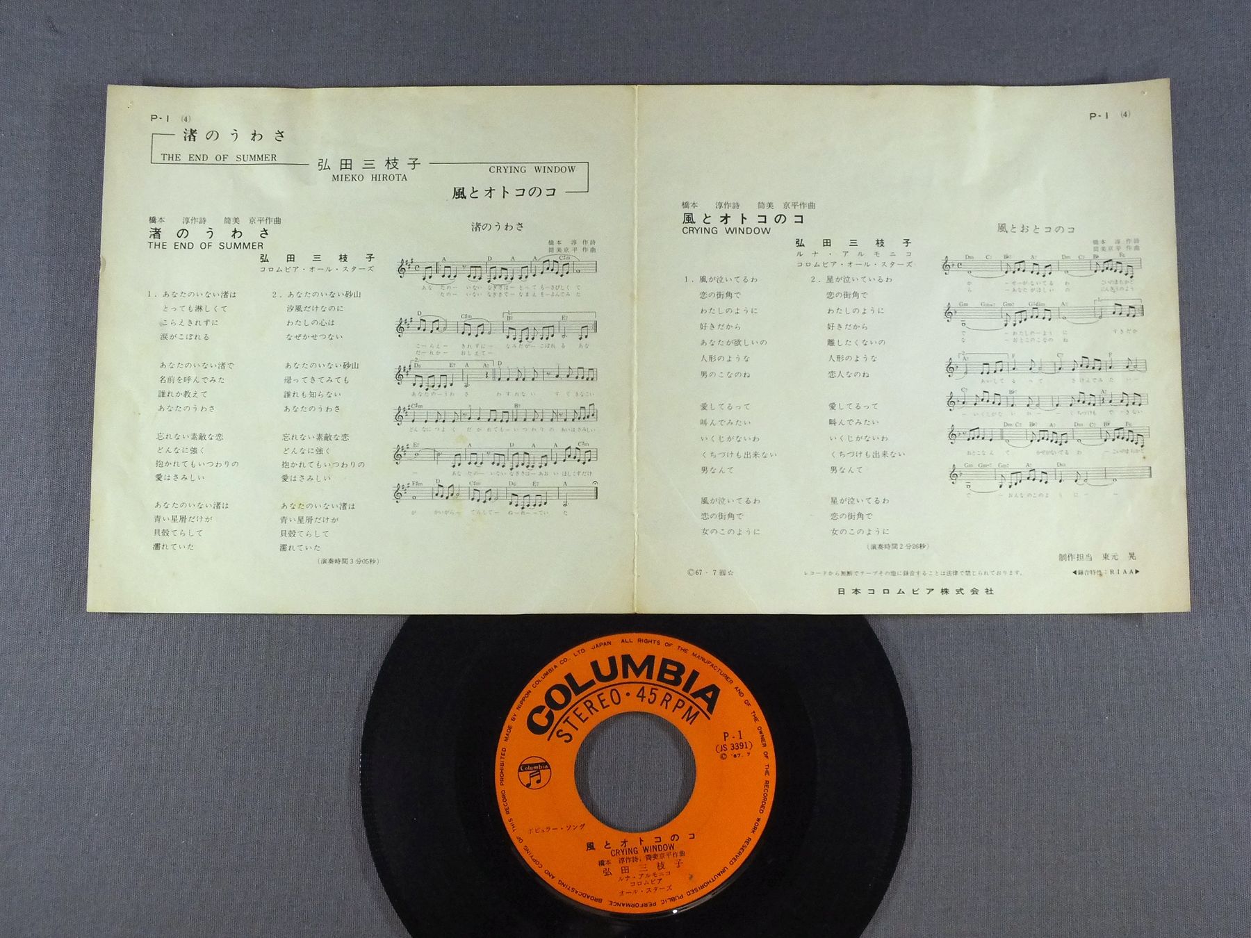 MIEKO HIROTA弘田三枝子/END OF SUMMER渚のうわさ P1 製造国:日本盤 / Media:7inch外観:EX-盤の状態:VG+ 価格(税込):¥1,650(売約済) 送料 7inch:定形外郵便 360円~LP:定形外郵便 660円~送料は、注文の最終画面で確認頂けます。 > > MIEKO HIROTA/END OF SUMMER 外観 (EX-)特記事項:ヨレ有り。見開きによごれやシミ。右上隅にピン穴有り。外観EX-の共通説明:ダメージ軽度~多少。 中古品としては普通の状態。シミ、ヨゴレ、スレなど軽く~多少。 盤の状態 (VG+)特記事項:薄いスレやスリキズ多少有り。プチ出る箇所は少ないと思います。盤VG+の共通説明:盤面にスリキズが多少~やや有り、音に出そうなものも多少ある。 Tweet それぞれの画像をクリックすると、大きい写真が見られます こちらの商品もお勧めです 990円 YOSHIMI HAMADA浜田良美 / SHUNJYU-NO SHOW春秋の章 1,210円 PEDRO & CAPRICIOUSペドロ &カプリシャス / BEST ALBUMスター・ベスト・ヒット・コレクション 550円 HIDEKI SAIJO西城秀樹 / KOU NO BOUSOU恋の暴走 770円 LAYLAレイラ / SEISHUN NO KISEKI青春の奇跡 550円 SOUTHERN ALL STARS.サザンオールスターズ / KAMAKURA 990円 TULIP - YUMI MATSUTOYA etcチューリップ - ユーミン他 / PROMO ONLY店頭演奏総合試聴盤 990円 TULIPチューリップ / LIVE ACT TULIP -VOL2-ライヴ !! アクト・チューリップ -VOL2- 770円 EPOエポ / PUMP ! PUMP !