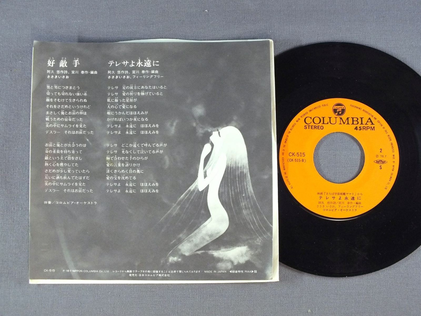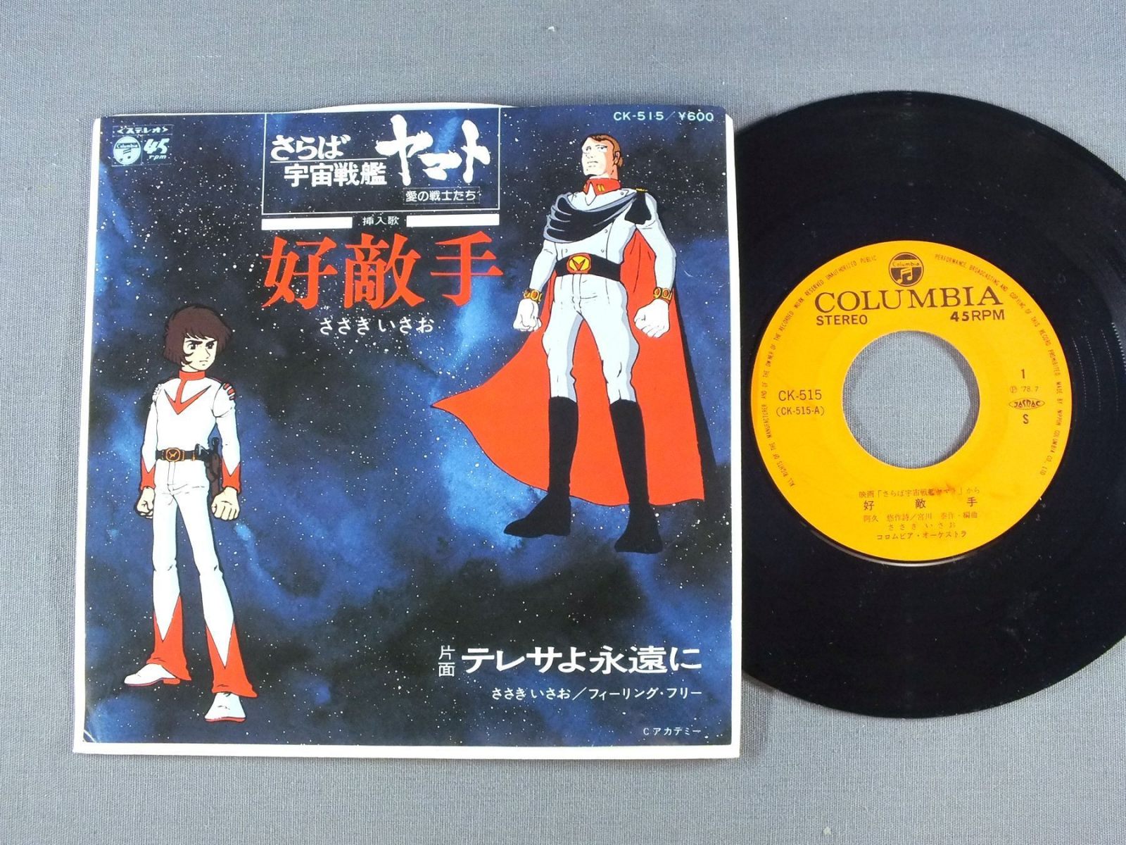 ANIME FAREWELL TO SPACE BATTLESHIP YAMATOアニメ さらば宇宙戦艦ヤマト/IMAGE SONG KOTEKISHU愛の戦士たち 挿入歌 好敵手 CK515 製造国:日本盤 / Media:7inch外観:EX盤の状態:EX 価格(税込):¥550(売約済) 送料 7inch:定形外郵便 360円~LP:定形外郵便 660円~送料は、注文の最終画面で確認頂けます。 > > ANIME FAREWELL TO SPACE BATTLESHIP YAMATO/IMAGE SONG KOTEKISHU 外観 (EX)特記事項:ヨレ有り。外観EXの共通説明:ダメージが限定的。中古品としては保存状態がよい方。シミ、ヨゴレ、スレ 少し~軽度。 盤の状態 (EX)特記事項:スレやスリキズが少し。全体的にきれいな状態です。盤EXの共通説明:盤面のスリキズが薄いものが少し~軽度 音に出そうなものは無いように見える(軽微なソフトティック音は除く)。 Tweet それぞれの画像をクリックすると、大きい写真が見られます こちらの商品もお勧めです 1,210円 ANIME AONI PPRODUCTION青二プロ / VOICE VOICE VOICE10周年記念フェスティバル・ライヴ 770円 ROUND-VERNIAN VIFAM銀河漂流バイファム / ORIGINAL SOUND TRACK音楽集 770円 MOBILE SUIT GUNDAM機動戦士ガンダム / 2nd LP戦場で 550円 AURA BATTLER DUNBINE聖戦士ダンバイン / ORIGINAL SOUND TRACKダンバイン2 770円 ANIME SPACE BATTLE SHIP YAMATOアニメ 宇宙戦艦ヤマト / NEW DEPARTURE新たなる旅立ち 1,650円 CYBORG 009サイボーグ009 / TV SERIES VOL1Xの挑戦 1,320円 KEITH EMARSONキース・エマーソン / ORIGINAL SOUNDTRACK HARMAGEDON映画 幻魔大戦ドラマ編 1,320円 ANIME SIX GOD COMBINATION MARSアニメ 六神合体ゴッドマーズ / MARS AND MARG STORY + POSTERドラマ編マーズ&マーグ物語
