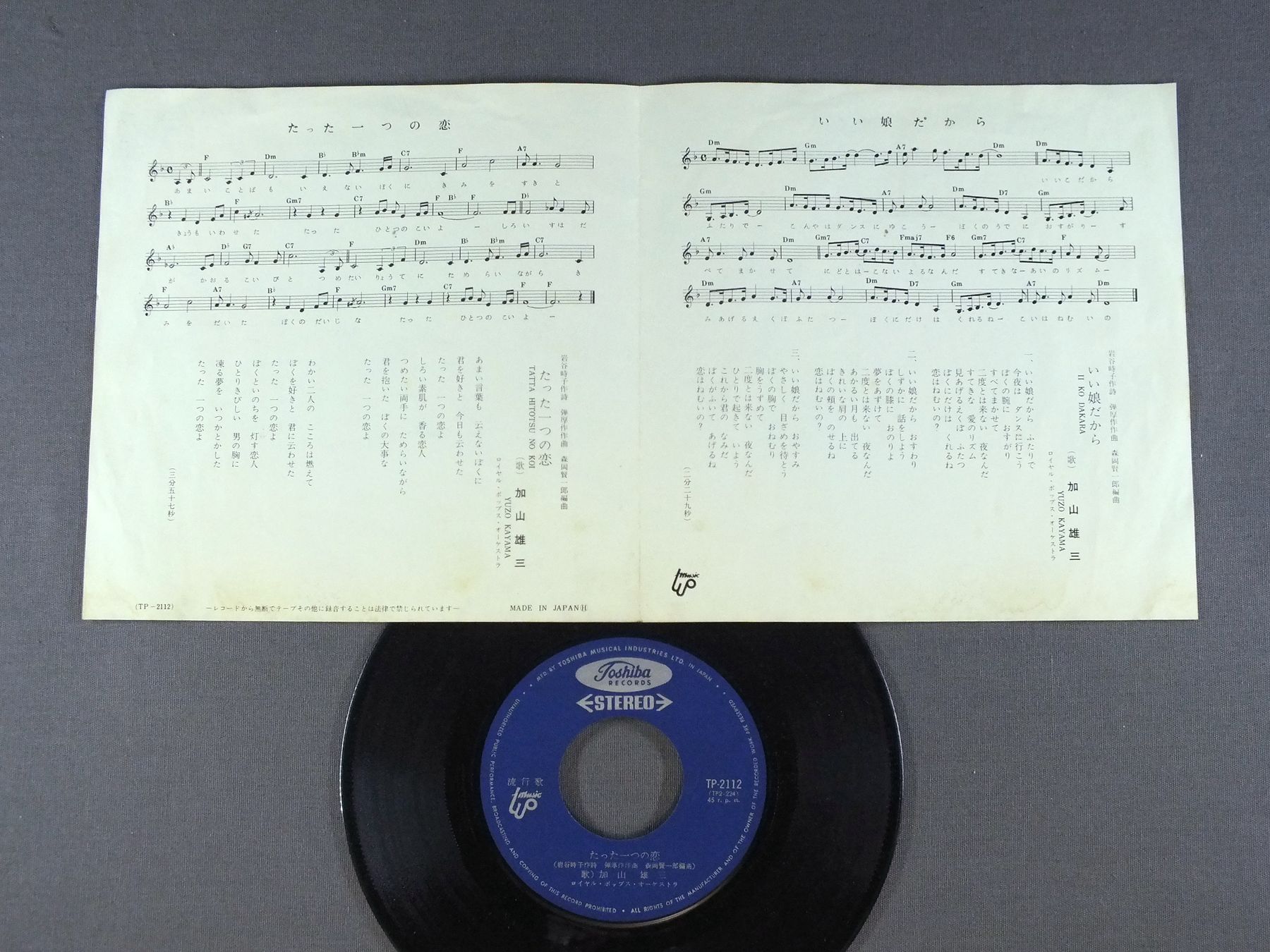 YUZO KAYAMA加山雄三/II KO DAKARAいい娘だから TP2112 製造国:日本盤 / Media:7inch外観:EX-盤の状態:VG+ 価格(税込):¥550 送料 7inch:定形外郵便 360円~LP:定形外郵便 660円~送料は、注文の最終画面で確認頂けます。 レコード検索 > FEMALE > YUZO KAYAMA/II KO DAKARA 外観 (EX-)特記事項:ヨレ有り。見開きにシミやよごれ。外観EX-の共通説明:ダメージ軽度~多少。 中古品としては普通の状態。シミ、ヨゴレ、スレなど軽く~多少。 盤の状態 (VG+)特記事項:薄いスレやスリキズ多少有り。軽微な感じです。歪み軽少し有り。盤VG+の共通説明:盤面にスリキズが多少~やや有り、音に出そうなものも多少ある。 Tweet それぞれの画像をクリックすると、大きい写真が見られます こちらの商品もお勧めです 550円 TAKESHI TERAUCHI & THE BUNNYS寺内タケシとバニーズ / LET`S GO CLASSICSレッツ・ゴー運命 660円 YUZO KAYAMA加山雄三 / AISURUTOKIHA IMA愛する時は今 1,320円 YUZO KAYAMA & LAUNCHERS加山雄三とランチャーズ / 1st ALBUM ( REISSUE )青春・愛その時 (幻の1st ALBUM ) 1,320円 TAKESHI TERAUCHI & THE BUNNYS寺内タケシとザ・バニーズ / LET`S GO CLASSICSレッツ・ゴー運命 1,320円 TAKESHI TERAUCHI & BLUEJEANS寺内タケシとブルー・ジーンズ / ELECTRIC GUITAR SONGS WITHOUT SONG歌のないエレキ歌謡曲 3,850円 OXオックス / FIRST ALBUMファースト・アルバム 2,420円 OXオックス / TELL ME-OX ON STAGE No1テルミー-オックス・オン・ステージ No1 770円 YUZO KAYAMA加山雄三 / GOLDEN ALBUMゴールデン・アルバム(あなたと共に)赤盤