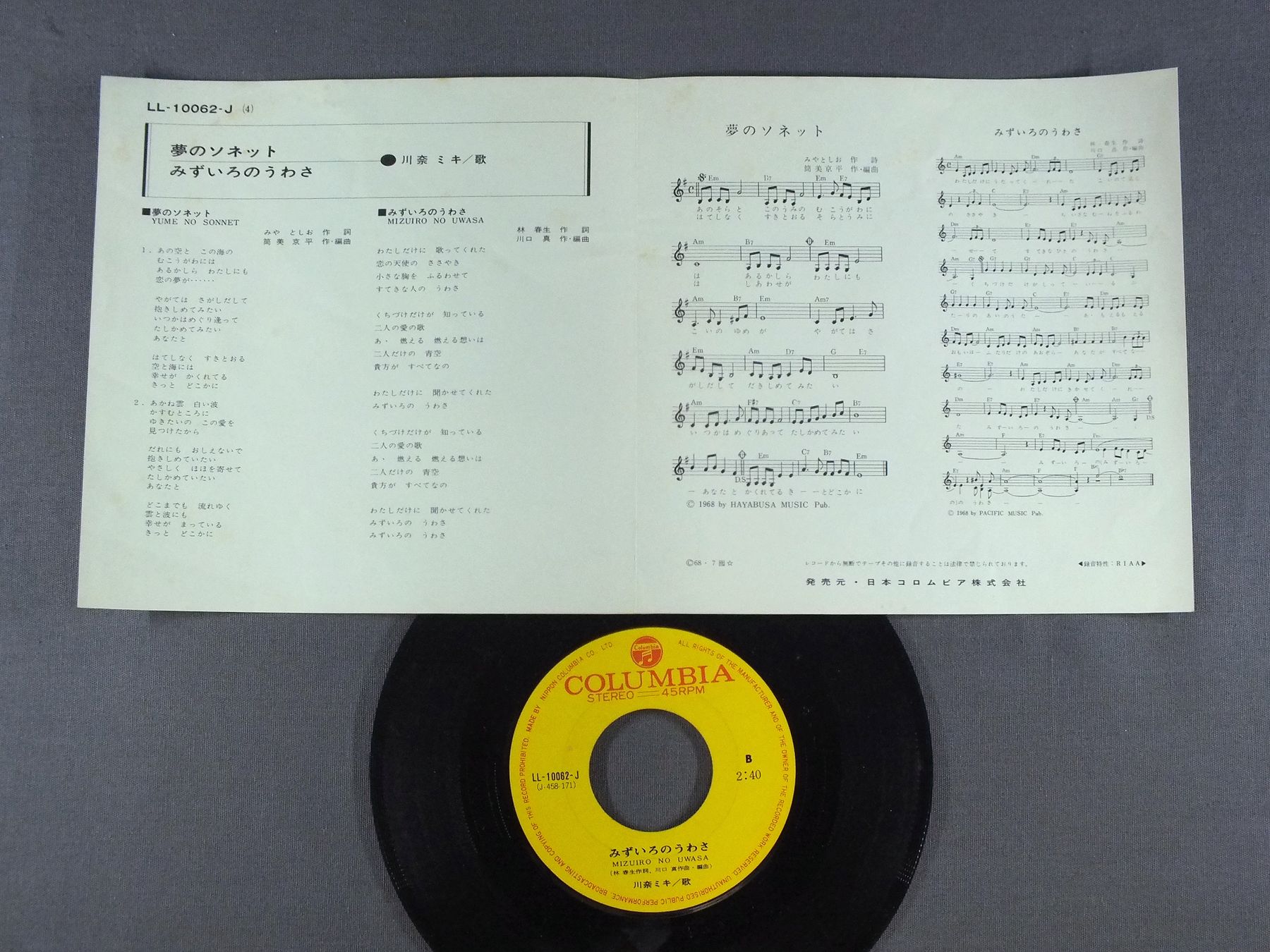 MIKI KANAWA川奈ミキ/YUME NO SONNET夢のソネット LL10062 製造国:日本盤 / Media:7inch外観:EX盤の状態:EX 価格(税込):¥1,320 送料 7inch:定形外郵便 360円~LP:定形外郵便 660円~送料は、注文の最終画面で確認頂けます。 > > MIKI KANAWA/YUME NO SONNET 外観 (EX)特記事項:見開きやジャケ表面にシミ有り。外観EXの共通説明:ダメージが限定的。中古品としては保存状態がよい方。シミ、ヨゴレ、スレ 少し~軽度。 盤の状態 (EX)特記事項:薄いスレやスリキズ多少有り。軽微な感じです。盤EXの共通説明:盤面のスリキズが薄いものが少し~軽度 音に出そうなものは無いように見える(軽微なソフトティック音は除く)。 Tweet それぞれの画像をクリックすると、大きい写真が見られます こちらの商品もお勧めです 770円 KAKIZAKI OPEN THE ROAD神埼・オン・ザ・ロード / OPEN MY ROAD 1,650円 YOSHIKO SAGA嵯峨美子 / ANATANIあなたに 1,210円 MIYUKI NAKAJIMA中島みゆき / OKAERINASAIおかえりなさい 660円 KENICHI HAGIWARA萩原健一 / NADJAナジャ 770円 YOSHITAROU KANAZAKI加奈崎芳太郎 (古井戸) / AIGA MOSHI SUBETENARA愛がもしすべてなら 1,210円 NUMBER ONE BANDザ・ナンバーワン・バンド / TOKYO ATARI東京あたり 1,210円 TAKURO YOSHIDAよしだたくろう / ON STAGEオン・ステージ - ともだち 770円 TAKURO YOSHIDA吉田拓郎 / SHANGRI-LAシャングリ・ラ