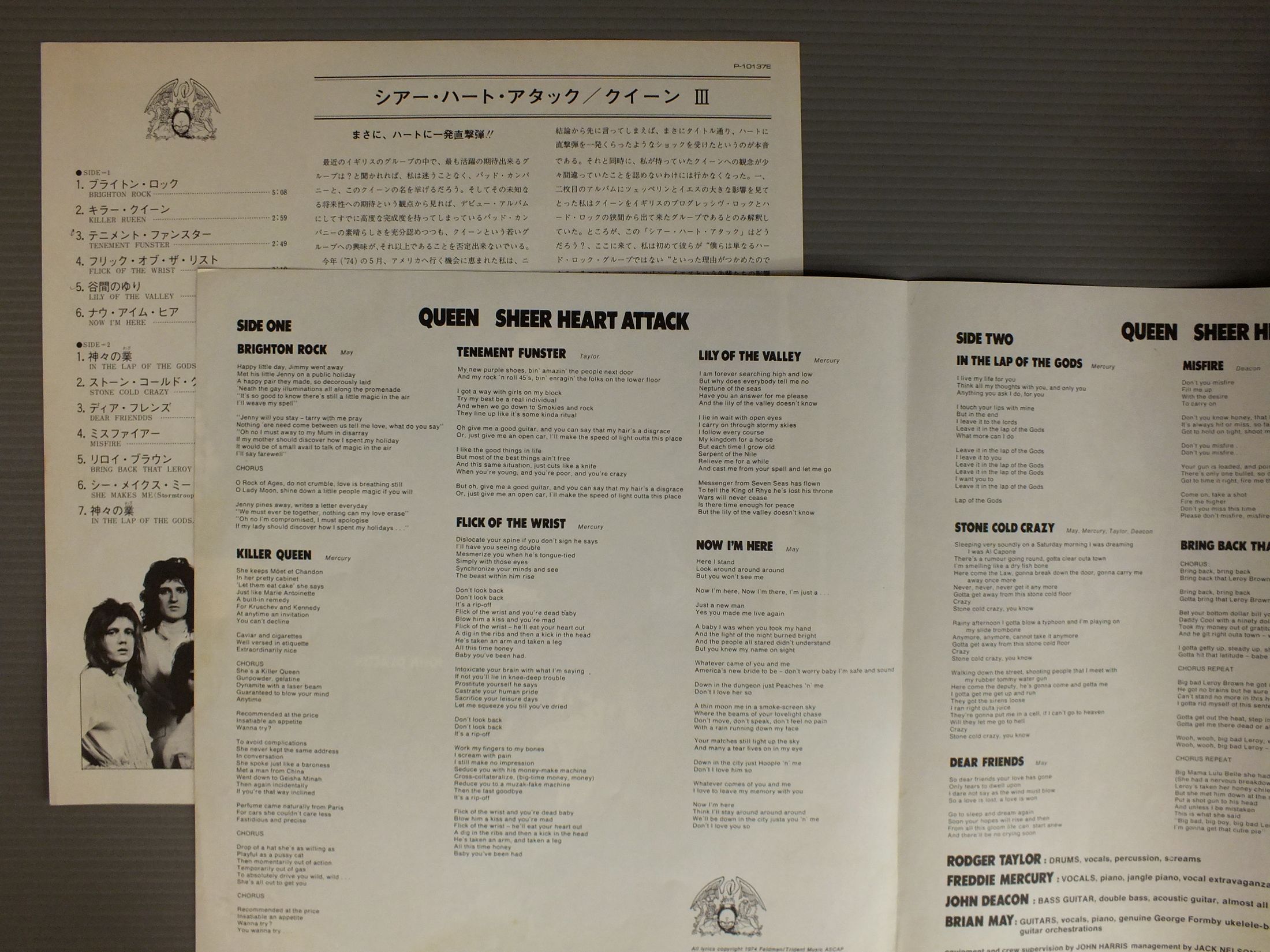 QUEENクイーン/SHEER HEART ATTACKシアー・ハート・アタック-クイーン P10137E 製造国:日本盤 / Media:LP外観:EX盤の状態:EX 価格(税込):¥1,155(売約済) 送料 7inch:定形外郵便 360円~LP:定形外郵便 660円~送料は、注文の最終画面で確認頂けます。 > > QUEEN/SHEER HEART ATTACK 外観 (EX)特記事項:特記なし。外観EXの共通説明:ダメージが限定的。中古品としては保存状態がよい方。シミ、ヨゴレ、スレ 少し~軽度。 盤の状態 (EX)特記事項:薄いスリキズ・スレ軽くある感じ。軽微なものの様子です。盤EXの共通説明:盤面のスリキズが薄いものが少し~軽度 音に出そうなものは無いように見える(軽微なソフトティック音は除く)。 Tweet それぞれの画像をクリックすると、大きい写真が見られます こちらの商品もお勧めです
