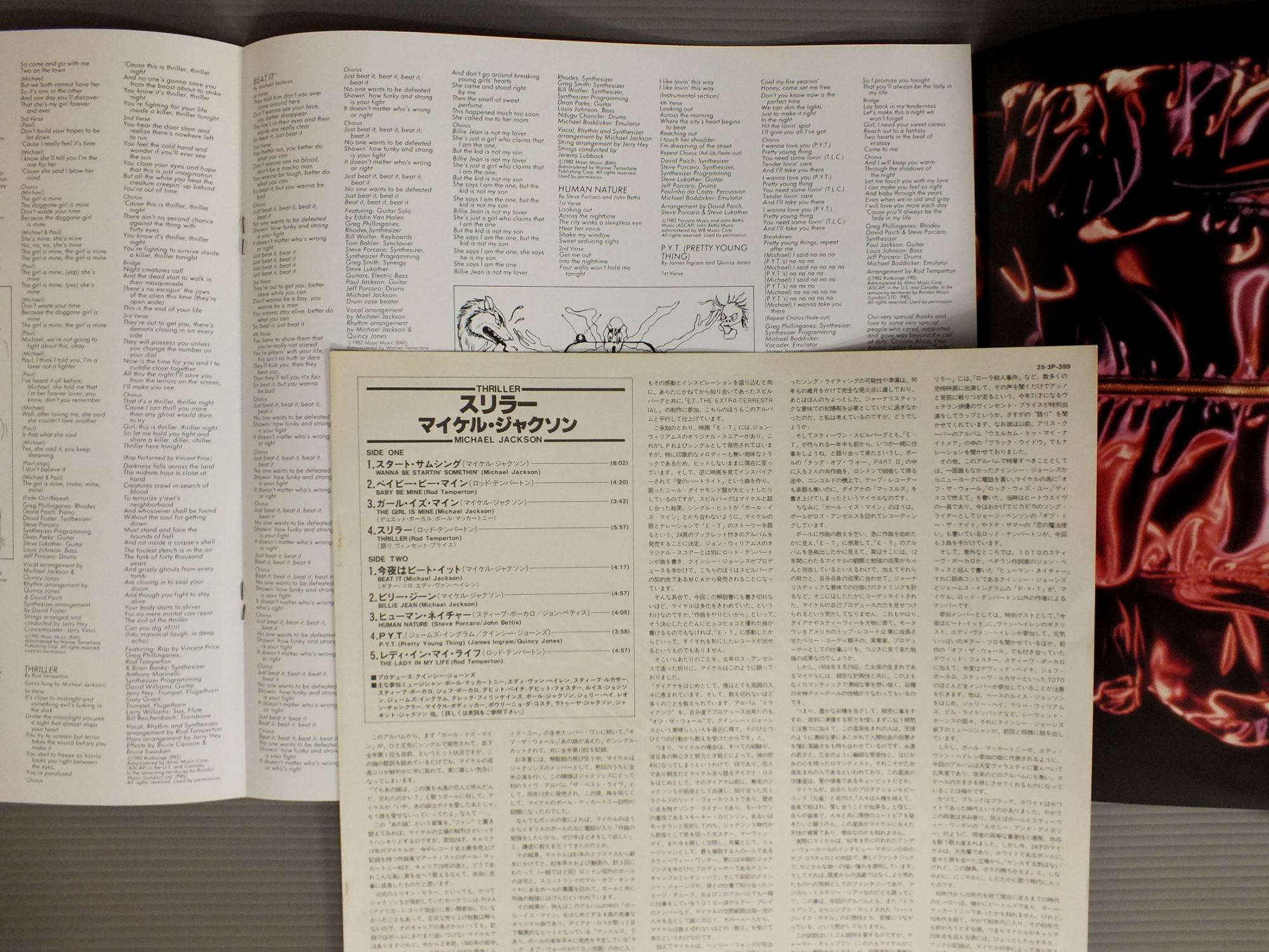 MICHAEL JACKSONマイケル・ジャクソン/THRILLERスリラー 25・3P399 製造国:日本盤 / Media:LP外観:EX盤の状態:EX帯:EX 価格(税込):¥1,650(売約済) 送料 7inch:定形外郵便 360円~LP:定形外郵便 660円~送料は、注文の最終画面で確認頂けます。 > > MICHAEL JACKSON/THRILLER 外観 (EX)特記事項:特記なし。外観EXの共通説明:ダメージが限定的。中古品としては保存状態がよい方。シミ、ヨゴレ、スレ 少し~軽度。 盤の状態 (EX)特記事項:薄いスリキズ・スレ軽くある感じ。軽微なものの様子です。盤EXの共通説明:盤面のスリキズが薄いものが少し~軽度 音に出そうなものは無いように見える(軽微なソフトティック音は除く)。 帯の状態 (EX):特記なし。 Tweet それぞれの画像をクリックすると、大きい写真が見られます こちらの商品もお勧めです 1,210円 DRAMATICSドラマティックス / SO WHAT YOU WANNA DO愛にめざめて 660円 AL GREENアル・グリーン / I`LL RISE AGAINアイル・ライズ・アゲイン 1,320円 DIANA ROSSダイアナ・ロス / ROSSロス 990円 GRAHAM CENTRAL STATIONグラハム・セントラル・ステイション / MIRRORミラー 660円 DIONNE WARWICKディオンヌ・ワーウィック / HOW MANY TIMES CAN WE SAY GOODBYEさよならは一度だけ 1,210円 SMOKEY ROBINSONスモーキー・ロビンソン / YES IT`S YOU LADYイエス・イッツ・ユー・レディ 880円 DIANA ROSSダイアナ・ロス / WHY DO FOOLS FALL IN LOVEファースト・レディ 恋はくせもの 1,210円 VAN MCCOYヴァン・マッコイ / RHYTHMS OF WORLDリズム・オブ・ザ・ワールド