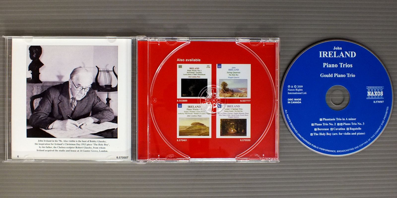 GOULD PIANO TRIOグールド・ピアノ三重奏団/IRELAND-PIANO TRIOSアイアランド-ピアノ三重奏曲集 8.570507 製造国:カナダ盤 / Media:CD外観:EX+盤の状態:EX+帯:EX- 価格(税込):¥2,750 送料 7inch:定形外郵便 360円~LP:定形外郵便 660円~送料は、注文の最終画面で確認頂けます。 > > GOULD PIANO TRIO/IRELAND-PIANO TRIOS 外観 (EX+)特記事項:特記事項無し。コンディションリスト参照。外観EX+の共通説明:中古としては美品、一見してきれいでダメージが軽微。シミ、ヨゴレ、スレ有っても僅か~少し。 盤の状態 (EX+)特記事項:薄いスリキズ・スレ少し。一見してきれいな状態です。盤EX+の共通説明:盤面の極薄いスリキズ、スレ少し程度 音に出そうなものは無いように見える(極軽微なソフトティック音は除く)。 帯の状態 (EX-):裏側に折れ跡。 Tweet それぞれの画像をクリックすると、大きい写真が見られます こちらの商品もお勧めです 990円 BORODIN QUARTETボロディン弦楽四重奏団 / BORODIN - STRING QUARTET NO.2ボロディン - 弦楽四重奏曲第2番 990円 BARENBOIM - ENGLISH CHAMBER ORCHESTRAバレンボエム - イギリス室内管弦楽団 / SCHONBERG - VERKLARTE NACHETシェーンベルク - 浄夜 1,540円 BAUMGAETNER - FESTIVAL STRINGS LUCERNEバウムガルトナー - ルツェルン音楽祭弦楽合奏団他 / VIVARDI - CONCERTO FOR 2 VIOLINヴィヴァルディ - 2つのヴァイオリンのための協奏曲他 1,540円 HELMUTH RILLING - BACH ENSEMBLEヘルムート・リリング - バッハ・アンサンブル / BACH KANTATE BWV61 & 110バッハ - カンタータ BWV61 & 110 1,540円 ESCHENBACH - JUSTUS FRANTZエッシェンバッハ&フランツ / MOZART - KLAVIERMUSIK ZU VIER HANDENモーツアルト・デュオ 第2集 1,540円 VICTOR DESARZENS - LAUSANNE CHEMBER ORCHESTRAデザルツェンス - ローザンヌ室内管弦楽団 / WEBER - SYMPHONY NO1ウエーバー交響曲第1番 1,540円 KARLBEINZ ZOLLER - BERNHARD KLEE - ENGLISH CHEMBER ORCHESTRAカールハインツ・ツェラー - ベルンハルト・クレー - 英国室内管弦楽団 / MOZART - FLOTENKONZERTEモーツアルト - フルート協奏曲 990円 VIENER STREICHQUARTETTウィーン弦楽四重奏 / HAYDN - STRING QUARTET NO.77 `EMPEROR`ハイドン - 弦楽四重奏曲第77番 皇帝