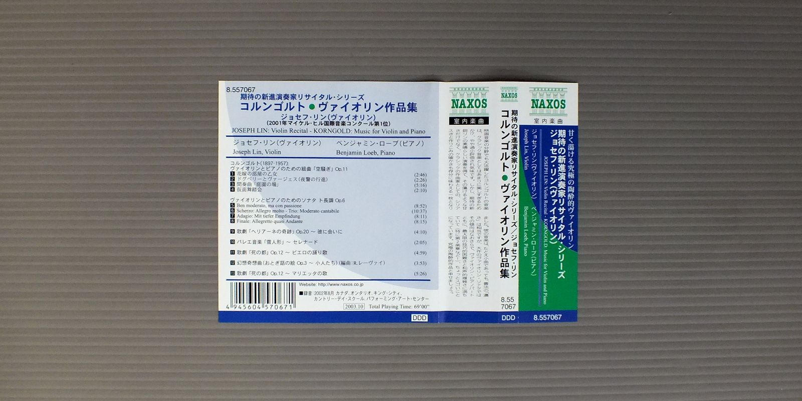 JOSEPH LIN-BENJAMIN LOEBジョセフ・リン-ベンジャミン・ローブ/KORNGOLD-MUSIC FOR VIOLIN&PIANOコルンゴルト-ヴァイオリン作品集 8.557067 製造国:輸入盤 / Media:CD外観:EX盤の状態:EX+帯:EX- 価格(税込):¥1,100 送料 7inch:定形外郵便 360円~LP:定形外郵便 660円~送料は、注文の最終画面で確認頂けます。 > > JOSEPH LIN-BENJAMIN LOEB/KORNGOLD-MUSIC FOR VIOLIN&PIANO 外観 (EX)特記事項:特記事項無し。コンディションリスト参照。外観EXの共通説明:ダメージが限定的。中古品としては保存状態がよい方。シミ、ヨゴレ、スレ 少し~軽度。 盤の状態 (EX+)特記事項:薄いスリキズ・スレ少し。一見してきれいな状態です。盤EX+の共通説明:盤面の極薄いスリキズ、スレ少し程度 音に出そうなものは無いように見える(極軽微なソフトティック音は除く)。 帯の状態 (EX-):裏側に折れ跡 その他:EU盤 Tweet それぞれの画像をクリックすると、大きい写真が見られます こちらの商品もお勧めです 2,200円 MENGELBERG / BEETHOVEN LES 9 SYMPHONIES 8LP BOX