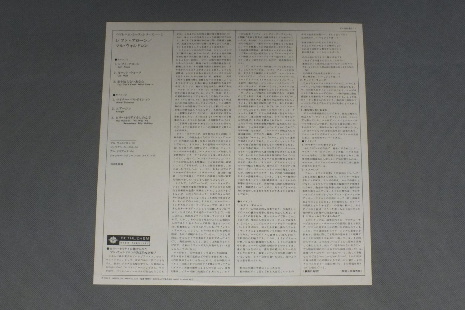 MAL WALDRONマル・ウォルドロン/LEFT ALONEレフト・アローン YP-7111 製造国:日本盤 / Media:LP外観:EX盤の状態:EX 価格(税込):¥1,320(売約済) 送料 7inch:定形外郵便 360円~LP:定形外郵便 660円~送料は、注文の最終画面で確認頂けます。 > > MAL WALDRON/LEFT ALONE 外観 (EX)特記事項:裏ジャケにシミ有り。外観EXの共通説明:ダメージが限定的。中古品としては保存状態がよい方。シミ、ヨゴレ、スレ 少し~軽度。 盤の状態 (EX)特記事項:薄いスリキズ・スレ軽くある感じ。軽微なものの様子です。盤EXの共通説明:盤面のスリキズが薄いものが少し~軽度 音に出そうなものは無いように見える(軽微なソフトティック音は除く)。 Tweet それぞれの画像をクリックすると、大きい写真が見られます こちらの商品もお勧めです 1,650円 MASABUMI KIKUCHI + GIL EVANS菊池雅章 / SAME TITLEWITH ギル・エヴァンス 990円 CHARLIE PARKERチャーリー・パーカー / CHARLIE PARKER ON SAVOY VOL4チャーリー・パーカー・オン・サヴォイVOL4 770円 BENNY GOODMANベニー・グッドマン他 / MR BENNY GOODMAN (BENNY GOODMAN STORY)映画ベニー・グッドマン物語 660円 CAL TJADERカル・ジェイダー / SHINING SEAシャイニング・シー 440円 HERB ALPERT & TIJUANA BRASS / BRASS ARE COMIN` 880円 HERBIE MANNハービー・マン / EVOLUTION OF MANNハービー・マン・ストーリー 1,210円 BINGO MIKI & INNER GALAXY ORCHESTRA三木敏悟&インナー・ギャラクシー・オーケストラ / EVE(EIGHT LETTERS)出航前夜-一通の手紙 1,210円 EDDIE CONDONエディ・コンドン楽団 / ERA OF CONDON JAZZ栄光のコンドン・ジャズ