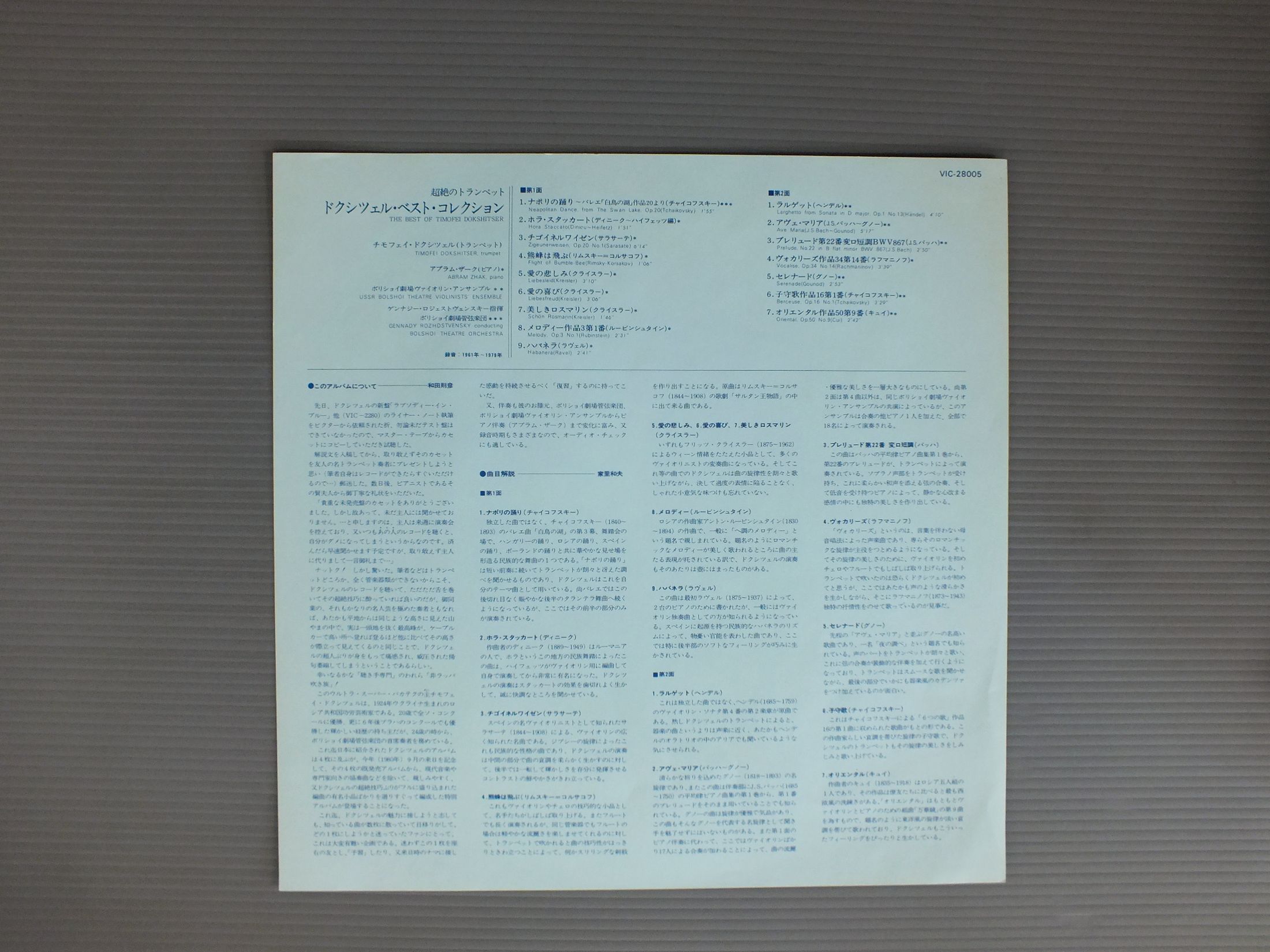 TIMOFEI DOKSHITSERチモフェイ・ドクシツェル/BEST OF TIMOFEI DOKSHITSER超絶のトランペット ドクシツェル・ベスト・コレクション VIC28005 製造国:日本盤 / Media:LP外観:EX盤の状態:EX帯:EX- 価格(税込):¥3,004(売約済) 送料 7inch:定形外郵便 360円~LP:定形外郵便 660円~送料は、注文の最終画面で確認頂けます。 > > TIMOFEI DOKSHITSER/BEST OF TIMOFEI DOKSHITSER 外観 (EX)特記事項:特記なし。外観EXの共通説明:ダメージが限定的。中古品としては保存状態がよい方。シミ、ヨゴレ、スレ 少し~軽度。 盤の状態 (EX)特記事項:薄いスリキズ・スレ軽くある感じ。軽微なものの様子です。盤EXの共通説明:盤面のスリキズが薄いものが少し~軽度 音に出そうなものは無いように見える(軽微なソフトティック音は除く)。 帯の状態 (EX-):裏側に切れやヨレ。 Tweet それぞれの画像をクリックすると、大きい写真が見られます こちらの商品もお勧めです 990円 OISTRAKHオイストラッフ / BACH - SONATASバッハ - ヴァイオリン奏鳴曲第5番6番 990円 RAMPAL - VEYRON-LACROIX - NEILZランパル - ヴェイロン-ラクロワ / RAMEAU - PIECES DE CLAVECIN CONCERTSラモー - クラブサン フルート チェロのためのコンセール集 1,870円 SZELLセル / BEETHOVEN SYM. NO3 `EROICA` EGMONT OVERTURE 0P84ベートーヴェン 交響曲第3番`英雄`・エグモント序曲 990円 JOSEF SUKヨセフ・スーク / VIVALDI FOUR SEASONSヴィヴァルディ ヴァイオリン協奏曲集 `四季` 1,320円 STARKER & SEBOKシュタルケル & シェベック / BEETHOVEN - SONATES NO3 & 4ベートーヴェン - チェロ・ソナタ 第3番4番 1,430円 SCHNEIDERHAN-KLIENシュナイダーハン-クリーン / SCHUBERT FANTASIA FOR PIANO & VIOLIN D934シューベルト ヴァイオリンとピアノのための幻想曲 990円 KAYABUE ENSEMBLE川崎優 - カヤブエ・アンサンブル / KAYABUE-NO-KAI 20TH ANNIVERSARY CONCERT茅笛の会 20周年記念特別演奏会 990円 PAULINO ORTIZパウリーノ・オルティス神父 / JUAN CABANILLES - ORGANOS DE DAROCA Y TOLEDOハアン・カバニーリェス作品集
