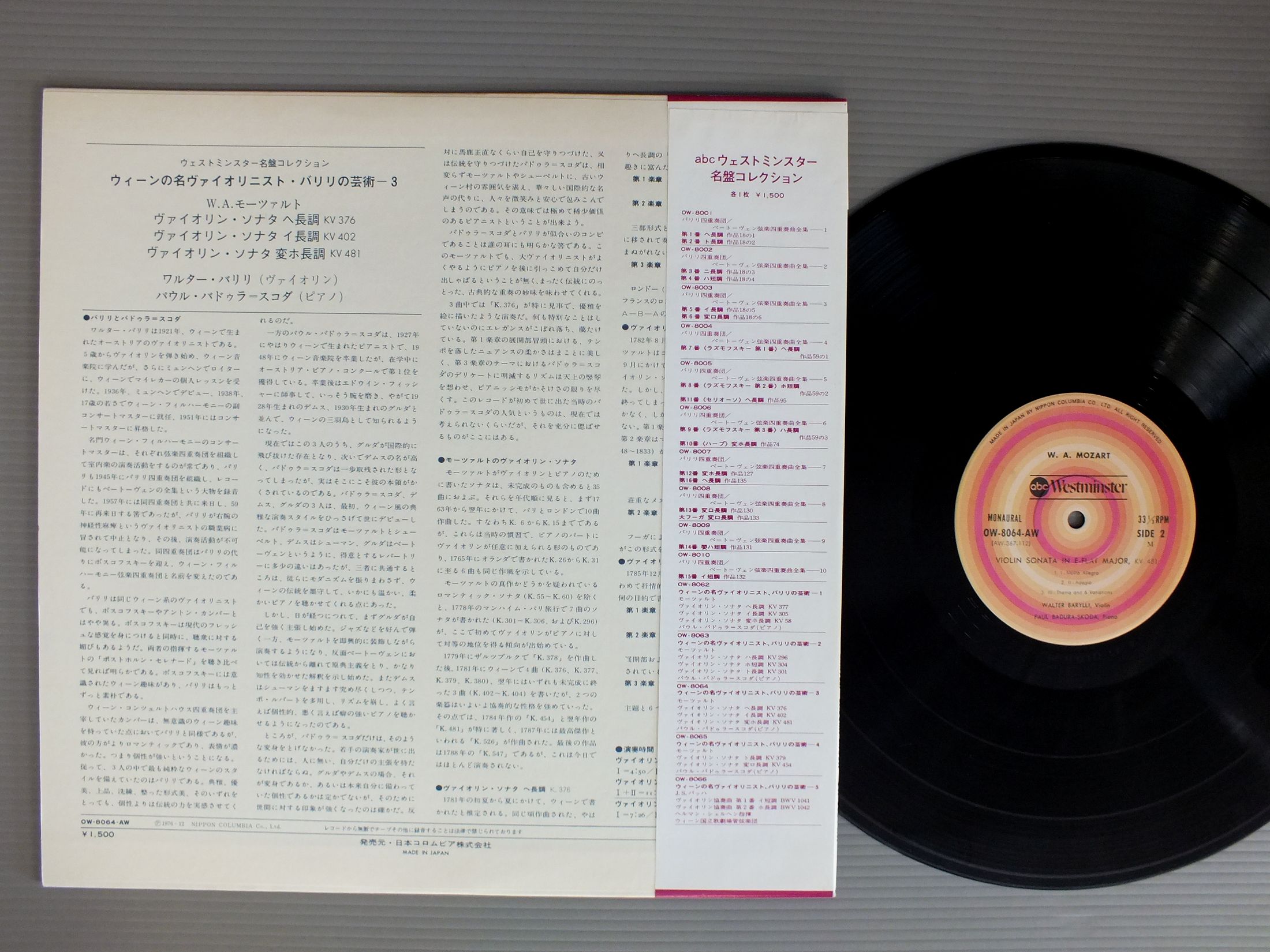 BARYLLI-BADURA-SKODAバリリ-バドゥラ=スコダ/MOZART-THREE VIOLIN SONATASW.A.モーツァルト-ヴァイオリン・ソナタKV376-KV402-KV481 OW8064AW 製造国:日本盤 / Media:LP外観:EX盤の状態:EX帯:EX 価格(税込):¥1,100(売約済) 送料 7inch:定形外郵便 360円~LP:定形外郵便 660円~送料は、注文の最終画面で確認頂けます。 > > BARYLLI-BADURA-SKODA/MOZART-THREE VIOLIN SONATAS 外観 (EX)特記事項:特記なし。外観EXの共通説明:ダメージが限定的。中古品としては保存状態がよい方。シミ、ヨゴレ、スレ 少し~軽度。 盤の状態 (EX)特記事項:薄いスリキズ・スレ軽くある感じ。軽微なものの様子です。盤EXの共通説明:盤面のスリキズが薄いものが少し~軽度 音に出そうなものは無いように見える(軽微なソフトティック音は除く)。 帯の状態 (EX):特記なし。 Tweet それぞれの画像をクリックすると、大きい写真が見られます こちらの商品もお勧めです 1,320円 AMADEUS QUARTETアマデウス弦楽四重奏団 / BRAHMS - STRING QUARTET NO3ブラームス 弦楽四重奏第3番 990円 MAKSYMIUK - POLISH CHAMBER ORCHESTRAマクシウク - ポーランド室内管弦楽団 / MOZART - 2 DIVERTIMENTI FOR STRINGSモーツァルト - ディヴェルティメント 1,320円 MEMBERS OF THE VIENNA OCTETウィーン八重奏団員 / MOZART - DIVERTIMENTO NO15モーツアルト喜遊曲第15番 990円 ROSAND-FLISSLERローザンド-フリッスラー / BEETHOVEN VIOLIN SONATAS KREUTZERベートーヴェン ヴァイオリン・ソナタ `クロエツェル``スプリング` 1,386円 MARRINERマリナー - アカデミー室内管弦楽団 / BACH - ORCHESTRAL SUITES NOS1&4バッハ - 管弦楽組曲第1番4番 770円 AURIACOMBE - ORCHESTRE DE CHAMBRE DE TOULOUSEオーリアコンブ - トゥルーズ室内管弦楽団 / ALBINONI - ADAGIO FOR STRINGS & ORGAN etcトゥルーズの魅力 770円 QUATUOR INSTRUMENTAL MAXENCE LARRIEUマクサンス・ラリュー四重奏団 / CONCERT AU CHATEAU DE SAN-SOUCI A POTSDAMポツダムのサン=スーシ宮における音楽会 1,650円 MUSICIENSミュジシャン / MOZART DUOS VIOLON ET ALTO`室内楽のエスプリ` レ・ミュジシャンの芸術1