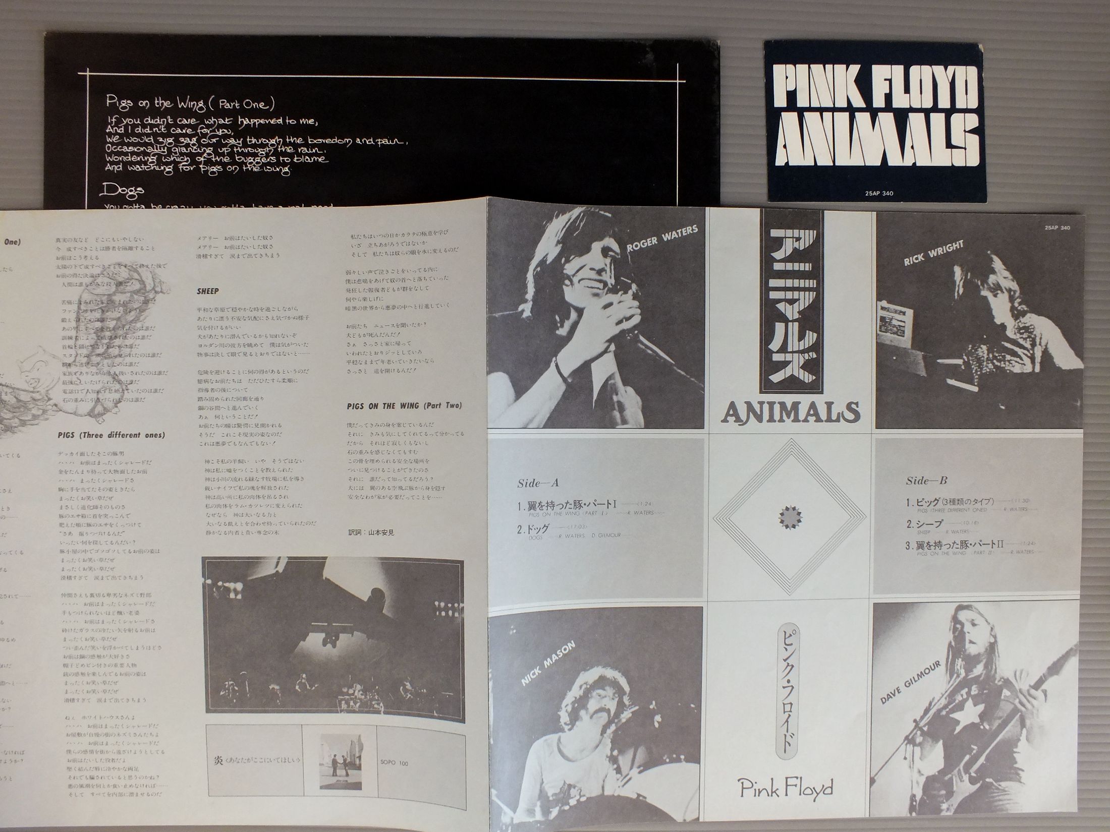 PINK FLOYDピンク・フロイド/ANIMALSアニマルズ 25AP340 製造国:日本盤 / Media:LP外観:EX盤の状態:EX+ 価格(税込):¥2,200(売約済) 送料 7inch:定形外郵便 360円~LP:定形外郵便 660円~送料は、注文の最終画面で確認頂けます。 > > PINK FLOYD/ANIMALS 外観 (EX)特記事項:上ヘリにスレ有り。外観EXの共通説明:ダメージが限定的。中古品としては保存状態がよい方。シミ、ヨゴレ、スレ 少し~軽度。 盤の状態 (EX+)特記事項:薄いスリキズ・スレ少し。一見してきれいな状態です。盤EX+の共通説明:盤面の極薄いスリキズ、スレ少し程度 音に出そうなものは無いように見える(極軽微なソフトティック音は除く)。 Tweet それぞれの画像をクリックすると、大きい写真が見られます こちらの商品もお勧めです