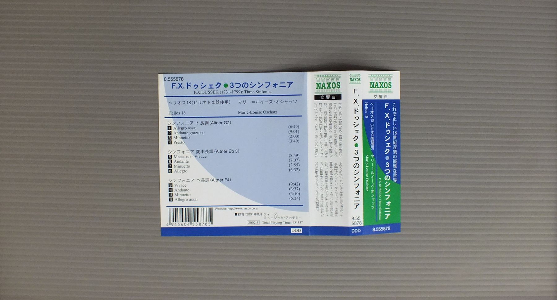 MARIE-LOUISE OSCHATZマリー=ルイーズ・オシャッツ/DUSSEK-THREE SINFONIASF.X.ドゥシェク-3つのシンフォニア 8.555878 製造国:輸入盤 / Media:CD外観:EX盤の状態:EX+帯:EX- 価格(税込):¥770 送料 7inch:定形外郵便 360円~LP:定形外郵便 660円~送料は、注文の最終画面で確認頂けます。 > > MARIE-LOUISE OSCHATZ/DUSSEK-THREE SINFONIAS 外観 (EX)特記事項:特記事項無し。コンディションリスト参照。外観EXの共通説明:ダメージが限定的。中古品としては保存状態がよい方。シミ、ヨゴレ、スレ 少し~軽度。 盤の状態 (EX+)特記事項:薄いスリキズ・スレ少し。一見してきれいな状態です。盤EX+の共通説明:盤面の極薄いスリキズ、スレ少し程度 音に出そうなものは無いように見える(極軽微なソフトティック音は除く)。 帯の状態 (EX-):裏側に折れ跡有り。 その他:EC盤 Tweet それぞれの画像をクリックすると、大きい写真が見られます こちらの商品もお勧めです 2,200円 MENGELBERG / BEETHOVEN LES 9 SYMPHONIES 8LP BOX