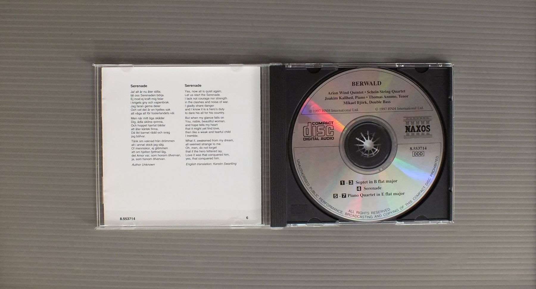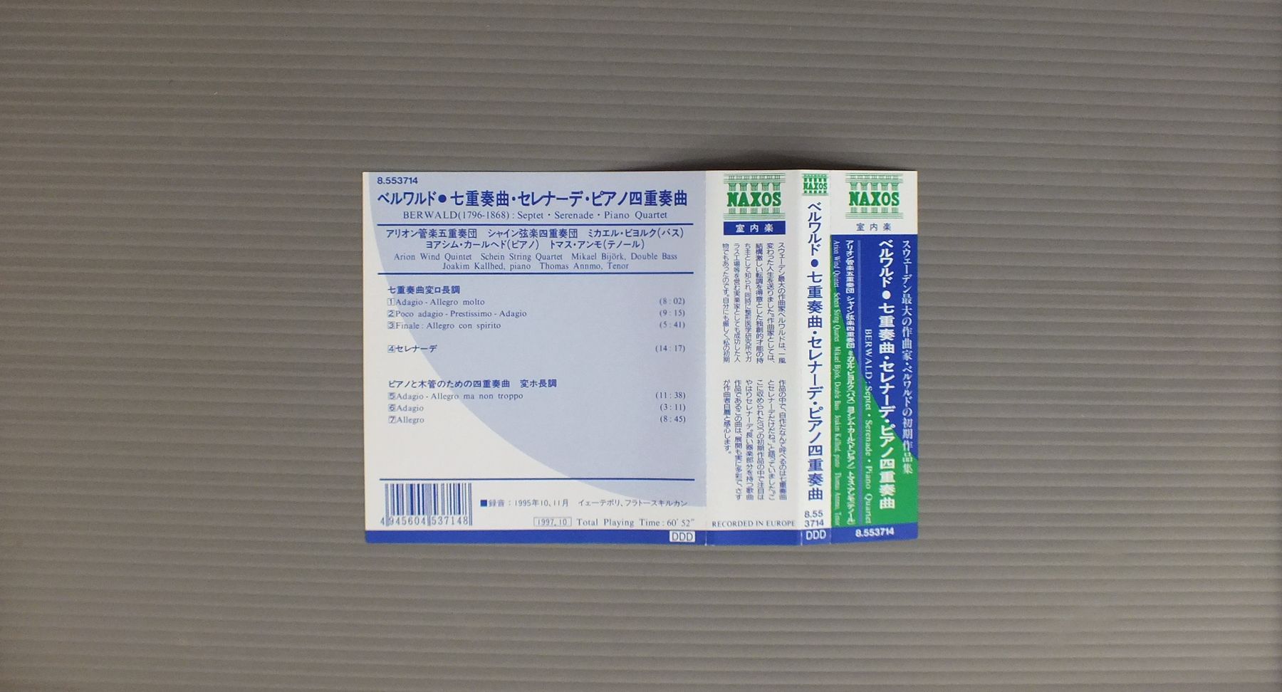 ARON WIND QUINTET-SCHEIN STRING QUERTETアリオン管楽五重奏団-シャイン弦楽四重奏団/BERWALD-SERENADE-PIANO QUARTETベルワルド-七重奏曲-セレナーデ-ピアノ四重奏団 8.553714 製造国:輸入盤 / Media:CD外観:EX盤の状態:EX+帯:EX 価格(税込):¥2,200 送料 7inch:定形外郵便 360円~LP:定形外郵便 660円~送料は、注文の最終画面で確認頂けます。 レコード検索 > FOLK > ARON WIND QUINTET-SCHEIN STRING QUERTET/BERWALD-SERENADE-PIANO QUARTET 外観 (EX)特記事項:特記事項無し。コンディションリスト参照。外観EXの共通説明:ダメージが限定的。中古品としては保存状態がよい方。シミ、ヨゴレ、スレ 少し~軽度。 盤の状態 (EX+)特記事項:薄いスリキズ・スレ少し。一見してきれいな状態です。盤EX+の共通説明:盤面の極薄いスリキズ、スレ少し程度 音に出そうなものは無いように見える(極軽微なソフトティック音は除く)。 帯の状態 (EX):裏側に折れ跡有り。 Tweet それぞれの画像をクリックすると、大きい写真が見られます こちらの商品もお勧めです 2,200円 MENGELBERG / BEETHOVEN LES 9 SYMPHONIES 8LP BOX