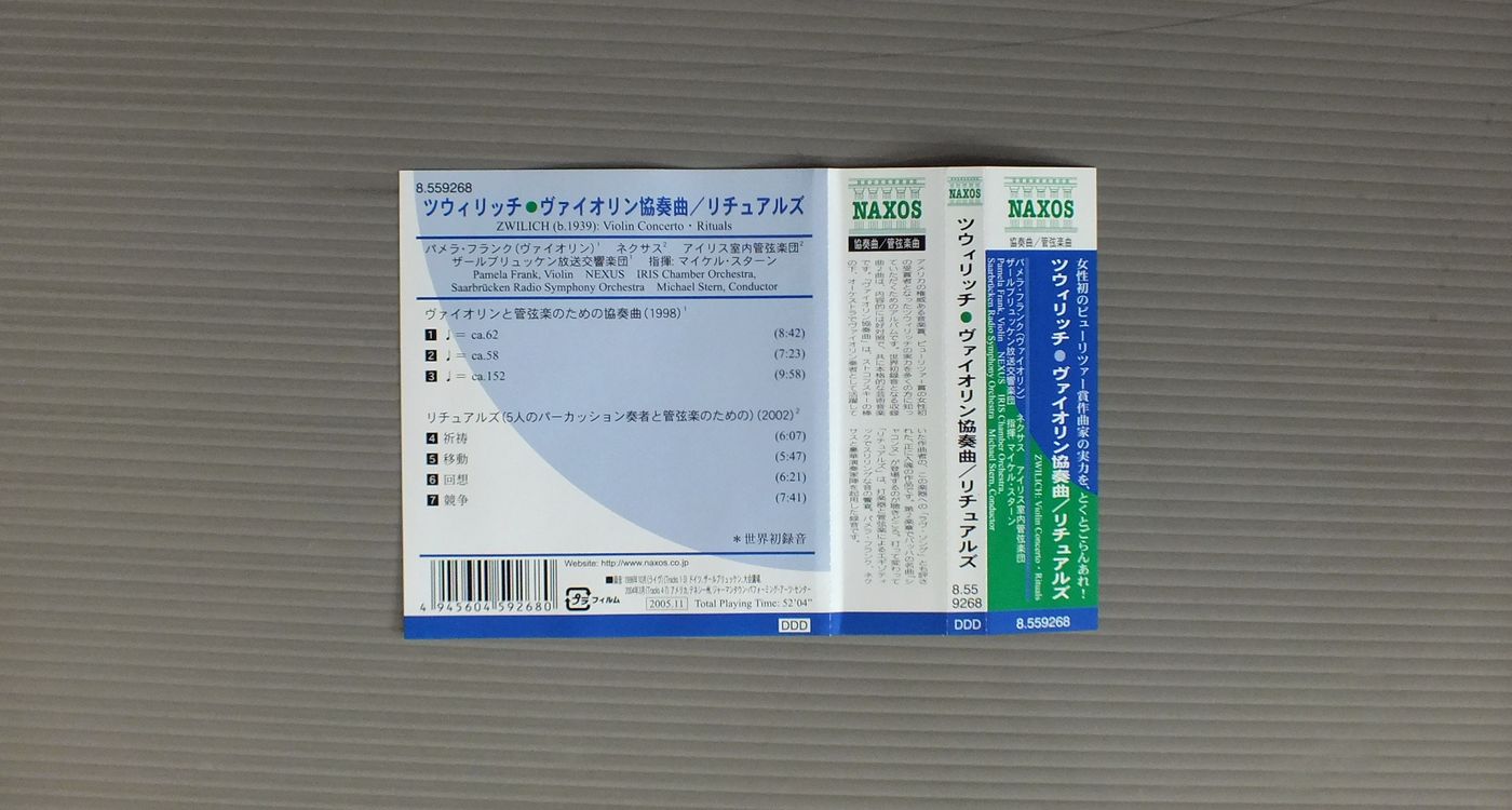 PAMELA FRANK-MICHAEL STERNパメラ・フランク-マイケル・スターン/ZWILICH-VIOLIN CONC.-RITUALSツウィリッチ-ヴァイオリン協奏曲-リチュアルズ 8.559268 製造国:輸入盤 / Media:CD外観:EX+盤の状態:EX+帯:EX- 価格(税込):¥1,012 送料 7inch:定形外郵便 360円~LP:定形外郵便 660円~送料は、注文の最終画面で確認頂けます。 > > PAMELA FRANK-MICHAEL STERN/ZWILICH-VIOLIN CONC.-RITUALS 外観 (EX+)特記事項:特記事項無し。コンディションリスト参照。外観EX+の共通説明:中古としては美品、一見してきれいでダメージが軽微。シミ、ヨゴレ、スレ有っても僅か~少し。 盤の状態 (EX+)特記事項:薄いスリキズ・スレ少し。一見してきれいな状態です。盤EX+の共通説明:盤面の極薄いスリキズ、スレ少し程度 音に出そうなものは無いように見える(極軽微なソフトティック音は除く)。 帯の状態 (EX-):裏側に折れ跡。 その他:EU盤 Tweet それぞれの画像をクリックすると、大きい写真が見られます こちらの商品もお勧めです 2,200円 MENGELBERG / BEETHOVEN LES 9 SYMPHONIES 8LP BOX