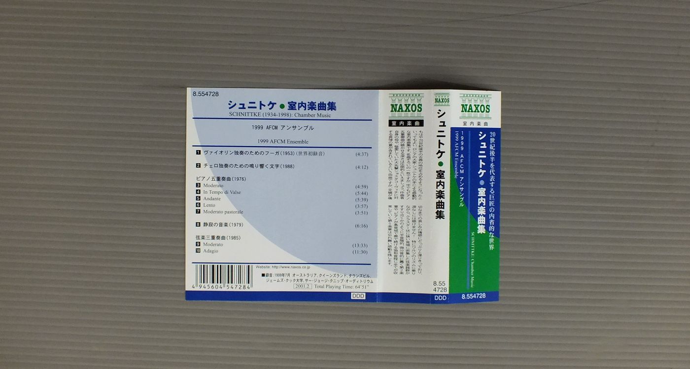 1999 AFCM ENSEMBLE1999 AFCM アンサンブル/SCHNITTKE-CHAMBER MUSICシュニトケ-室内楽曲集 8.554728 製造国:輸入盤 / Media:CD外観:EX+盤の状態:EX+帯:EX 価格(税込):¥1,100(売約済) 送料 7inch:定形外郵便 360円~LP:定形外郵便 660円~送料は、注文の最終画面で確認頂けます。 > > 1999 AFCM ENSEMBLE/SCHNITTKE-CHAMBER MUSIC 外観 (EX+)特記事項:特記事項無し。コンディションリスト参照。外観EX+の共通説明:中古としては美品、一見してきれいでダメージが軽微。シミ、ヨゴレ、スレ有っても僅か~少し。 盤の状態 (EX+)特記事項:薄いスリキズ・スレ少し。一見してきれいな状態です。盤EX+の共通説明:盤面の極薄いスリキズ、スレ少し程度 音に出そうなものは無いように見える(極軽微なソフトティック音は除く)。 帯の状態 (EX):裏側に折れ跡。 その他:EC盤 Tweet それぞれの画像をクリックすると、大きい写真が見られます こちらの商品もお勧めです 2,200円 MENGELBERG / BEETHOVEN LES 9 SYMPHONIES 8LP BOX