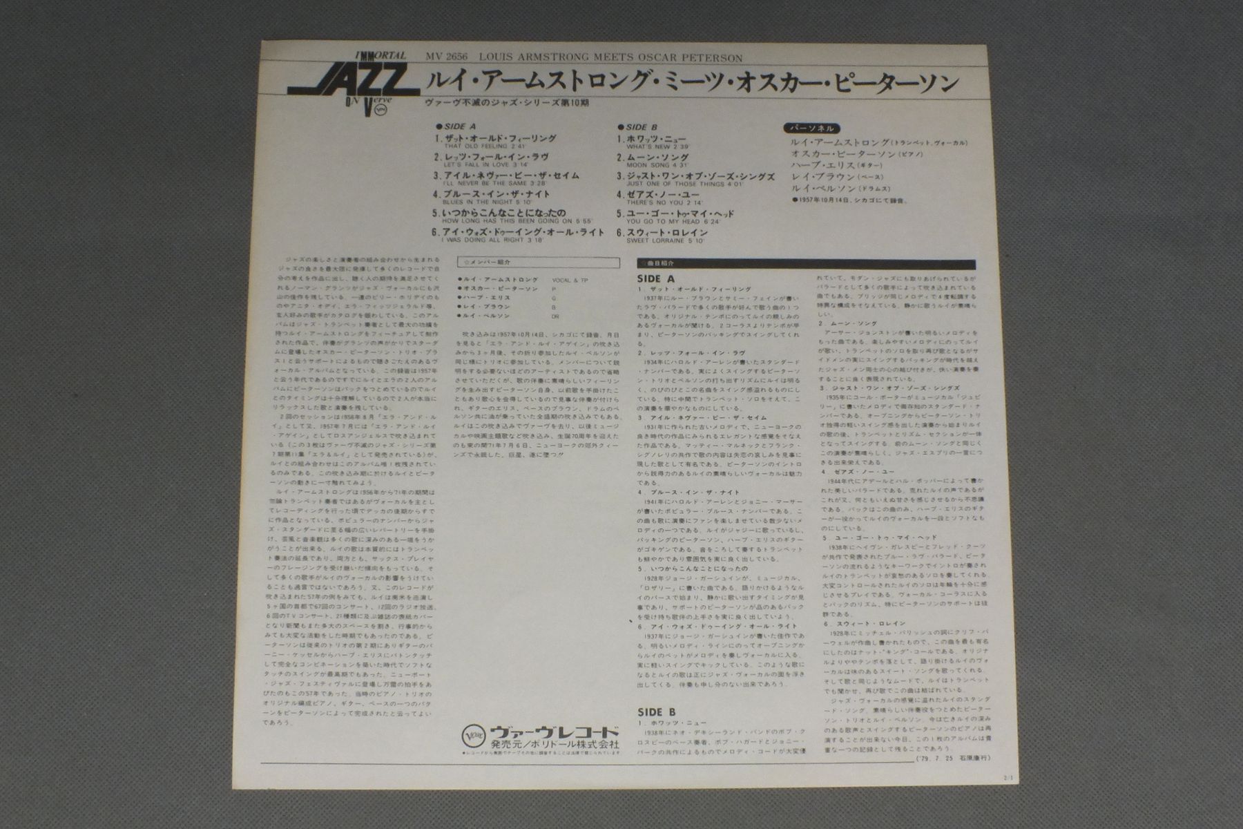 LOUIS ARMSTROIGルイ・アームストロング/ MEETS OSCAR PETERSONミーツ・オスカー・ピーターソン MV 2656 製造国:日本盤 / Media:LP外観:EX-盤の状態:EX+帯:EX- 価格(税込):¥924(売約済) 送料 7inch:定形外郵便 360円~LP:定形外郵便 660円~送料は、注文の最終画面で確認頂けます。 > > LOUIS ARMSTROIG/ MEETS OSCAR PETERSON 外観 (EX-)特記事項:ジャケ表面にシミやよごれ有り。外観EX-の共通説明:ダメージ軽度~多少。 中古品としては普通の状態。シミ、ヨゴレ、スレなど軽く~多少。 盤の状態 (EX+)特記事項:薄いスリキズ・スレ少し。一見してきれいな状態です。盤EX+の共通説明:盤面の極薄いスリキズ、スレ少し程度 音に出そうなものは無いように見える(極軽微なソフトティック音は除く)。 帯の状態 (EX-):シミやよごれ有り。 Tweet それぞれの画像をクリックすると、大きい写真が見られます こちらの商品もお勧めです 1,320円 GERY PEACOCKゲーリー・ピーコック / TALES OF ANOTHERTALES OF ANOTHER 770円 RON CARTERロン・カーター / ANYTHING GOESエニシング・ゴーズ 770円 BRUCE FORMANブルース・フォアマン / COAST TO COASTコースト・トゥ・コースト 1,210円 BUD POWELL TRIOバド・パウエル・トリオ / ROOST SESSION BEST 6-VOL.1バド・パウエルの芸術 1,210円 ERIC DOLPHYエリック・ドルフィー / AT THE FIVE SPOTアット・ザ・5・スポットVOL2 990円 JAMES NEWTONジェームズ・ニュートン / DAYDREAMデイドリーム 770円 LOUIS ARMSTRONG & THE ALL-STARSルイ・アームストロングとオール・スターズ / SATCHMO ALL-STARS IN 1950サッチモ・オール・スターズ・イン 1950 1,320円 JOHN HALLジョン・ホール / JOHN HALLジョン・ホールの世界