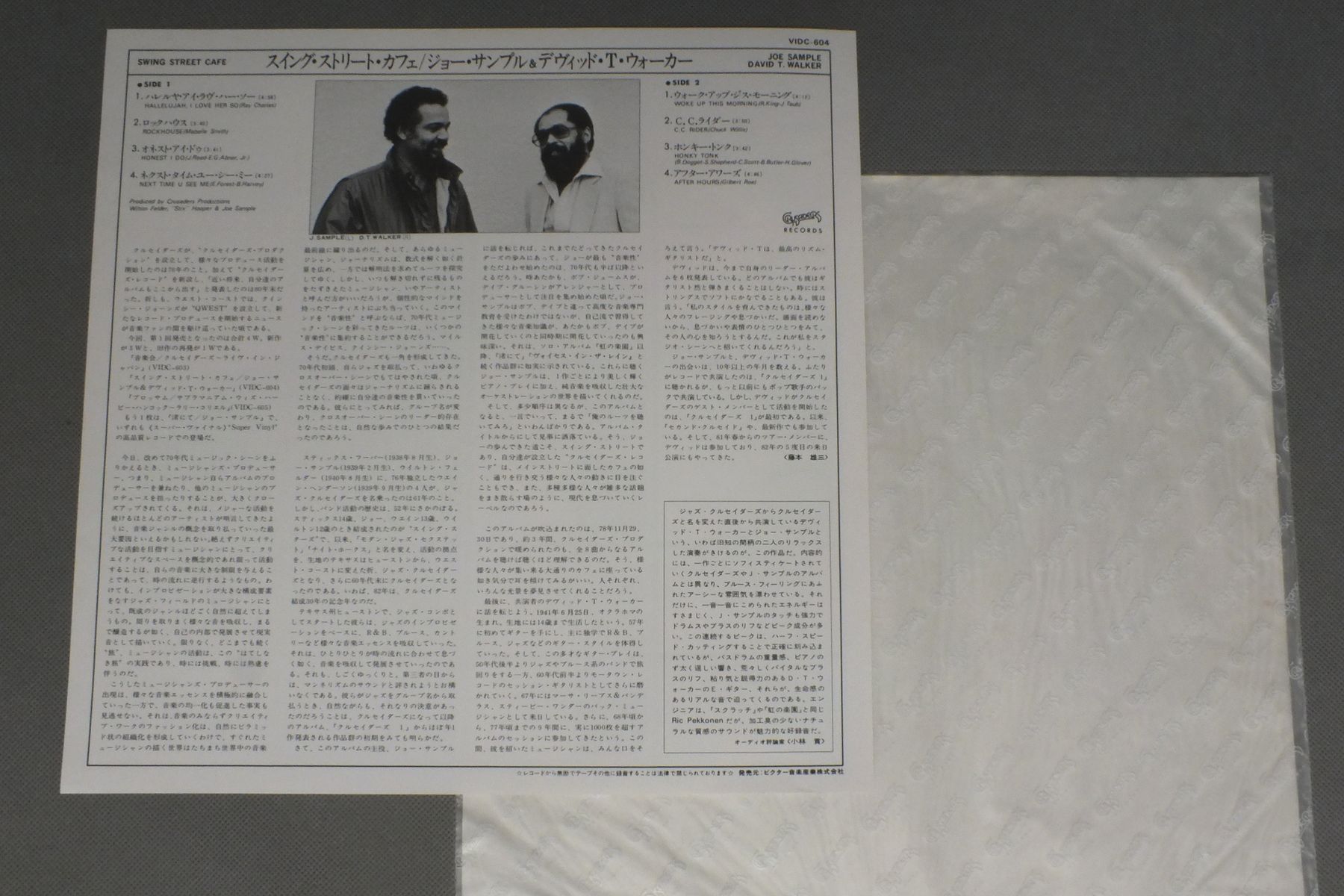 JOE SAMPLE & DAVID T WALKERジョー・サンプル & デヴィッド・T・ウォーカー/SWING STREET CAFEスイング・ストリート・カフェ VIDC-604 製造国:日本盤 / Media:LP外観:EX盤の状態:EX+ 価格(税込):¥1,045(売約済) 送料 7inch:定形外郵便 360円~LP:定形外郵便 660円~送料は、注文の最終画面で確認頂けます。 > > JOE SAMPLE & DAVID T WALKER/SWING STREET CAFE 外観 (EX)特記事項:特記なし。外観EXの共通説明:ダメージが限定的。中古品としては保存状態がよい方。シミ、ヨゴレ、スレ 少し~軽度。 盤の状態 (EX+)特記事項:薄いスリキズ・スレ少し。一見してきれいな状態です。盤EX+の共通説明:盤面の極薄いスリキズ、スレ少し程度 音に出そうなものは無いように見える(極軽微なソフトティック音は除く)。 Tweet それぞれの画像をクリックすると、大きい写真が見られます こちらの商品もお勧めです 1,210円 RON CARTERロン・カーター / THE MAN WITH THE BASS.RON CARTERザ・マン・ウィズ・ザ・ベース ロン・カーター 1,320円 YOSHIAKI MASUO増尾好秋 / SUNSHINE AVENUEサンシャイン・アヴェニュー 440円 YUTAKA TOBE戸部豊 / TRUMPET 770円 VICTOR FELDMAN`S GENERATION BAND / CALL OF THE WILDチェイシン・サンボーン ( L.A.スーパー・リズム) 1,320円 HIROSHIMAヒロシマ / ODORI - HIROSHIMA 2オドリ (ヒロシマ?) 1,210円 CRUSADERSクルセイダーズ / GHETTO BLLASTERゲットー・プラスター 770円 LEE OSCARリー・オスカー / BEFORE THE RAINビフォー・ザ・レイン 440円 NATIVE SONネイティブ・サン / SAVANNA HOT LINEサバンナ・ホットライン