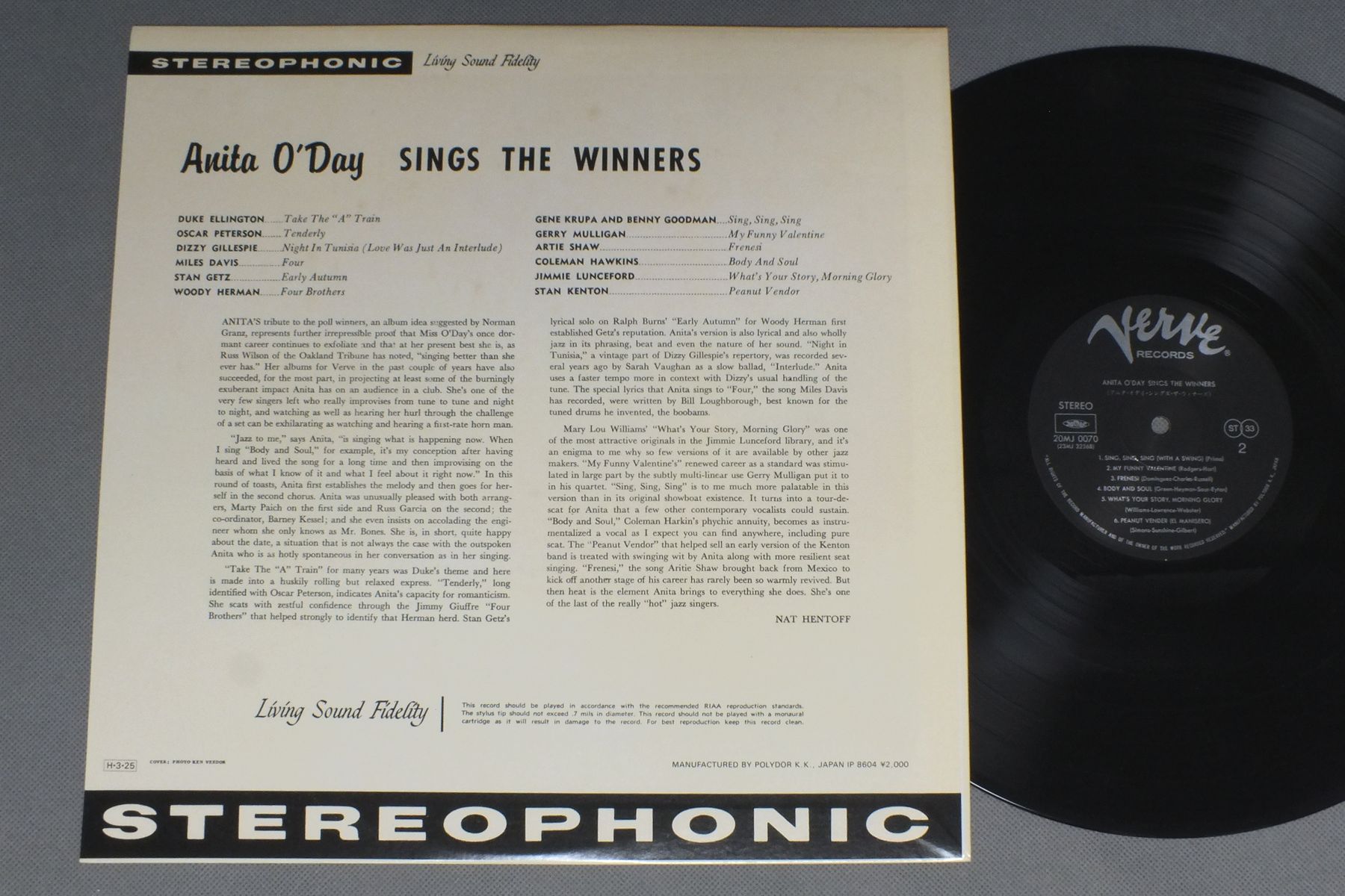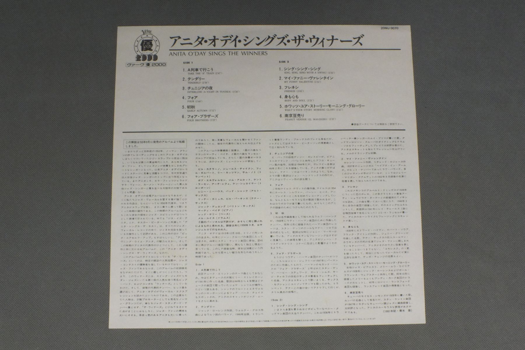 ANITA O`DAYアニタ・オデイ/ANITA O`DAY SINGS THE WINNERSアニタ・オデイ・シングズ・ザ・ウィナーズ 20MJ-0070 製造国:日本盤 / Media:LP外観:EX盤の状態:EX+ 価格(税込):¥1,155(売約済) 送料 7inch:定形外郵便 360円~LP:定形外郵便 660円~送料は、注文の最終画面で確認頂けます。 > > ANITA O`DAY/ANITA O`DAY SINGS THE WINNERS 外観 (EX)特記事項:ジャケ表面にシミやよごれ有り。外観EXの共通説明:ダメージが限定的。中古品としては保存状態がよい方。シミ、ヨゴレ、スレ 少し~軽度。 盤の状態 (EX+)特記事項:薄いスリキズ・スレ少し。一見してきれいな状態です。盤EX+の共通説明:盤面の極薄いスリキズ、スレ少し程度 音に出そうなものは無いように見える(極軽微なソフトティック音は除く)。 Tweet それぞれの画像をクリックすると、大きい写真が見られます こちらの商品もお勧めです 990円 BRENDA LEEブレンダ・リー / GREAT HITS OF BRENDA LEEブレンダ・リー大全集 990円 KEI MARIMURA真梨邑ケイ / MOOD INDIGOムード・イン・インディゴ 1,320円 YUKARI KANEKO金子由香利 / MEGURIAIめぐり逢い 660円 TONY MARTINトニー・マーチン / BEST OF TONY MARTINベスト・オブ・トニー・マーチン 770円 MITCH MILLER AND THE GANGミッチ・ミラー合唱団 / HOME CHORUS PARTY VOL2 60s ISSUEホーム・コーラス・パーティ 第2集 ペラジャケ 770円 YUKARI KANEKO金子由香利 / BEST COLLECTIONベスト・コレクション 770円 TONY MARTINトニー・マーティン / HIS GREATEST HITS 990円 CLEO LAINE & JAMES GALWAYクレオ・レーン&ジェームズ・ゴールウェイ / SOMETIMES WHEN WE TOUCHベスト・フレンズ?