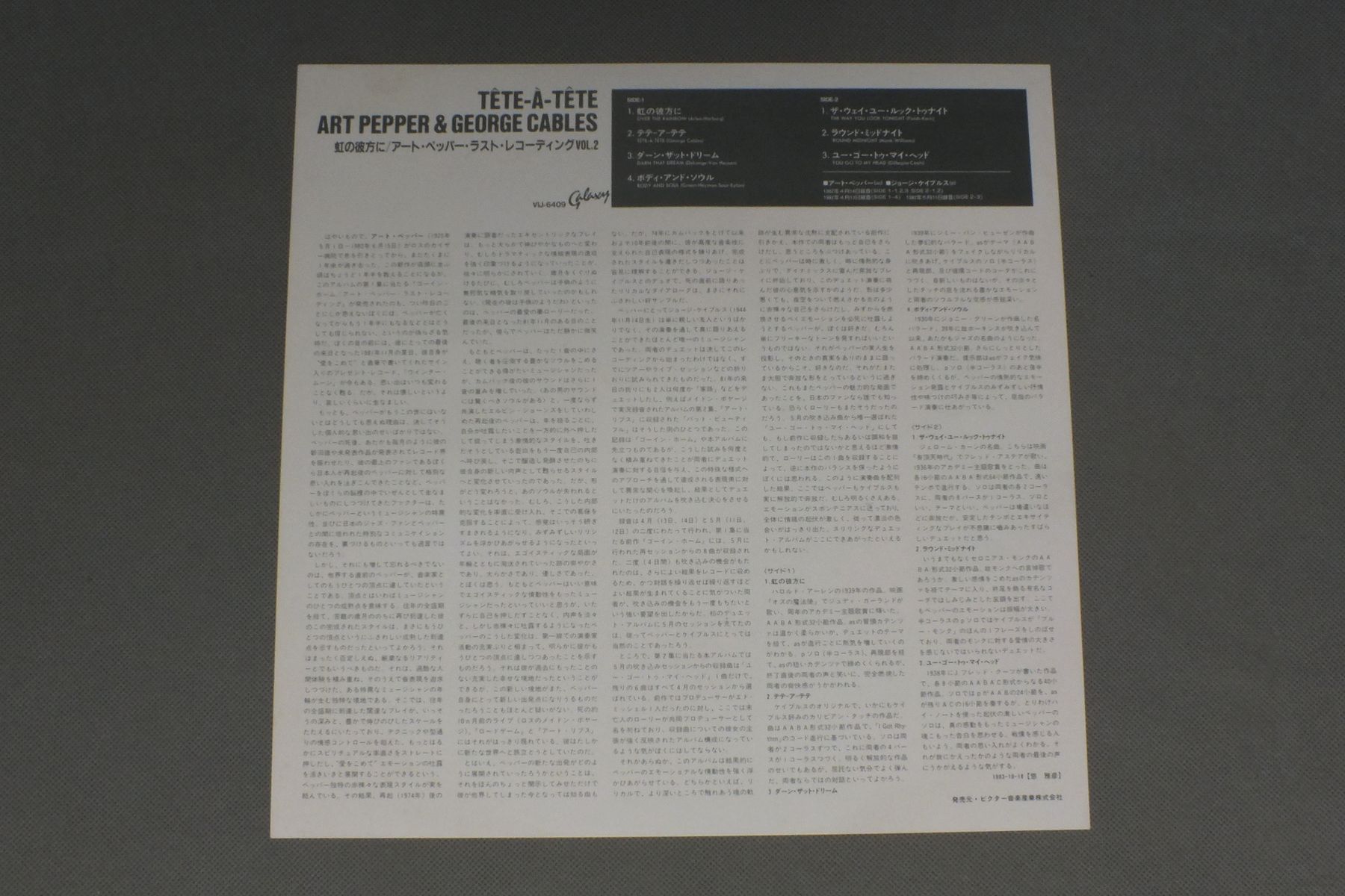 ART PEPPER & GEORGE CABLESアート・ペッパー/TETE-A-TETE虹の彼方に VIJ-6409 製造国:日本盤 / Media:LP外観:EX盤の状態:EX+ 価格(税込):¥1,386(売約済) 送料 7inch:定形外郵便 360円~LP:定形外郵便 660円~送料は、注文の最終画面で確認頂けます。 > > ART PEPPER & GEORGE CABLES/TETE-A-TETE 外観 (EX)特記事項:特記なし。外観EXの共通説明:ダメージが限定的。中古品としては保存状態がよい方。シミ、ヨゴレ、スレ 少し~軽度。 盤の状態 (EX+)特記事項:薄いスリキズ・スレ少し。一見してきれいな状態です。盤EX+の共通説明:盤面の極薄いスリキズ、スレ少し程度 音に出そうなものは無いように見える(極軽微なソフトティック音は除く)。 Tweet それぞれの画像をクリックすると、大きい写真が見られます こちらの商品もお勧めです 990円 MILT JACKSON/RAY BROWN JAMミルト・ジャクソン&レイ・ブラウン / MONTREUX`77ミルト・ジャクソン&レイ・ブラウン・ジャム・アット・モントゥルー`77 990円 YOSHIAKI MASUO増尾好秋 / SAILING WONDERセイリング・ワンダー 770円 TERUMASA HINO日野皓正 / DOUBLE RAINBOWダブル・レインボー 1,210円 HERBIE MANNハービー・マン / MEMPHIS UNDERGROUNDメンフィス・アンダーグラウンド 880円 HARRIS SIMON GROUPハリス・サイモン・グループ / NEW YORK CONNECTIONニューヨーク・コネクション 1,650円 McOY TYNERマッコイ・タイナー / SONG OF THE NEW WORLDソング・オブ・ザ・ニュー・ワールド 1,650円 MASARU IMADA今田勝 / DAY IN THE PARADISEコーラルの涙 1,320円 QUINCY JONESクィンシー・ジョーンズ / THIS IS HOW I FEEL ABOUT JAZZ私の考えるジャズ