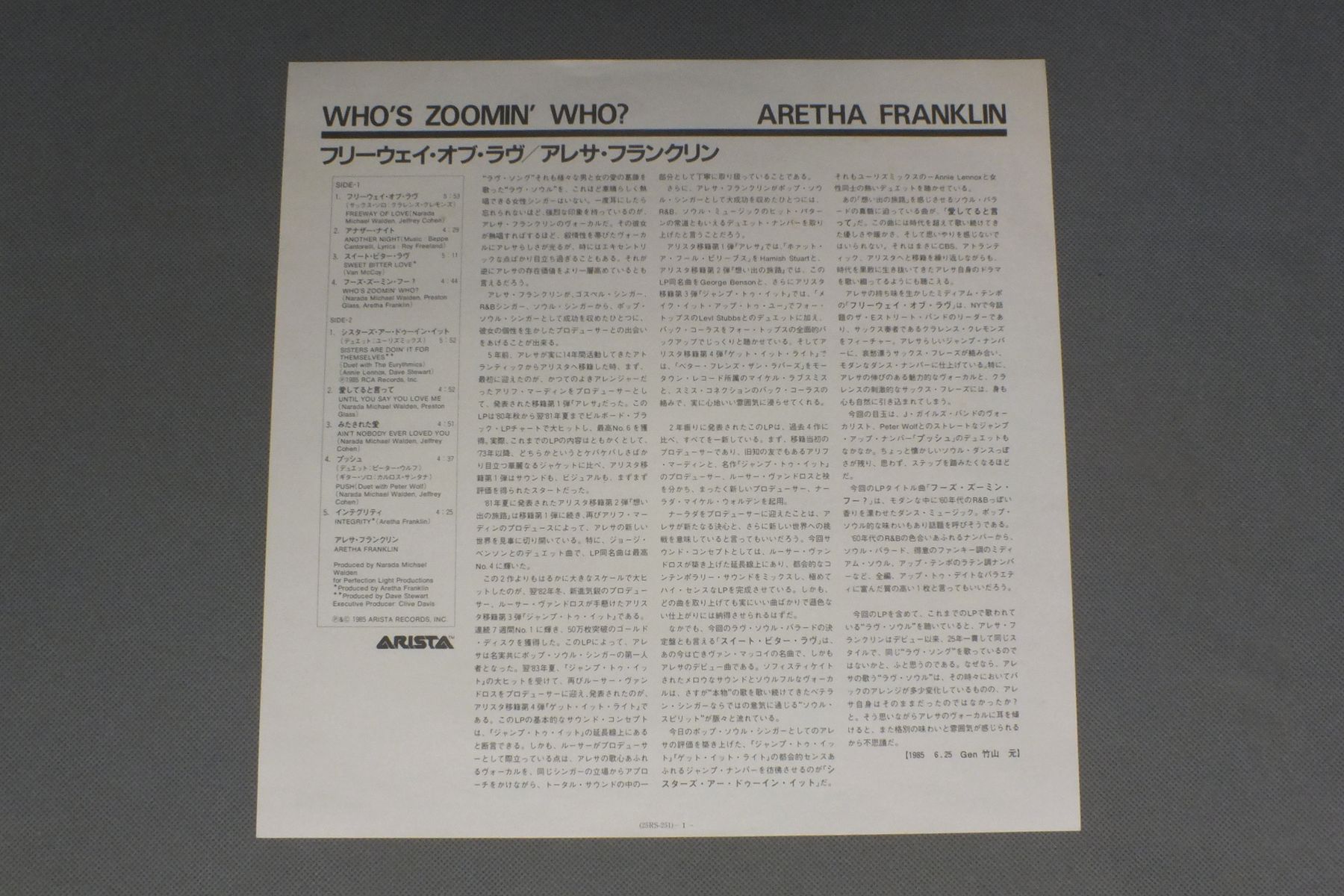ARETHA FRANLINアレサ・フランクリン/WHO`S ZOOMIN` WHO?フリーウェイ・オブ・ラヴ 25RS-251 製造国:日本盤 / Media:LP外観:EX盤の状態:EX 価格(税込):¥1,155(売約済) 送料 7inch:定形外郵便 360円~LP:定形外郵便 660円~送料は、注文の最終画面で確認頂けます。 > > ARETHA FRANLIN/WHO`S ZOOMIN` WHO? 外観 (EX)特記事項:特記なし。外観EXの共通説明:ダメージが限定的。中古品としては保存状態がよい方。シミ、ヨゴレ、スレ 少し~軽度。 盤の状態 (EX)特記事項:薄いスリキズ・スレ軽くある感じ。軽微なものの様子です。盤EXの共通説明:盤面のスリキズが薄いものが少し~軽度 音に出そうなものは無いように見える(軽微なソフトティック音は除く)。 Tweet それぞれの画像をクリックすると、大きい写真が見られます こちらの商品もお勧めです 770円 THREE DEGREES & MFSBスリー・ディグリーズ &MFSB / THREE DEGREES & MFSB SHOWスリー・ディグリーズ &MFSBショー 1,210円 FOUR TOPSフォー・トップス / MAGICマジック 1,210円 SMOKEY ROBINSONスモーキー・ロビンソン / BLAME IT ON LOVE & ALL THE GREAT HITSブレイム・イット・オン・ラブ 1,210円 O`JAYSオージェイズ / MY FAVORITE PERSONマイ・フェバリット・パーソン 770円 TUXEDO JUNCTIONタキシード・ジャンクション / TAKE THE A TRAINA列車で行こう 1,320円 TEMPTATIONSテンプテーションズ / LIVEライブ 770円 CHAMPAIGNシャンペーン / MODERN HEARTモダン・ハート 1,210円 COMMODORESコモドアーズ / NIGHTSHIFTナイトシフト