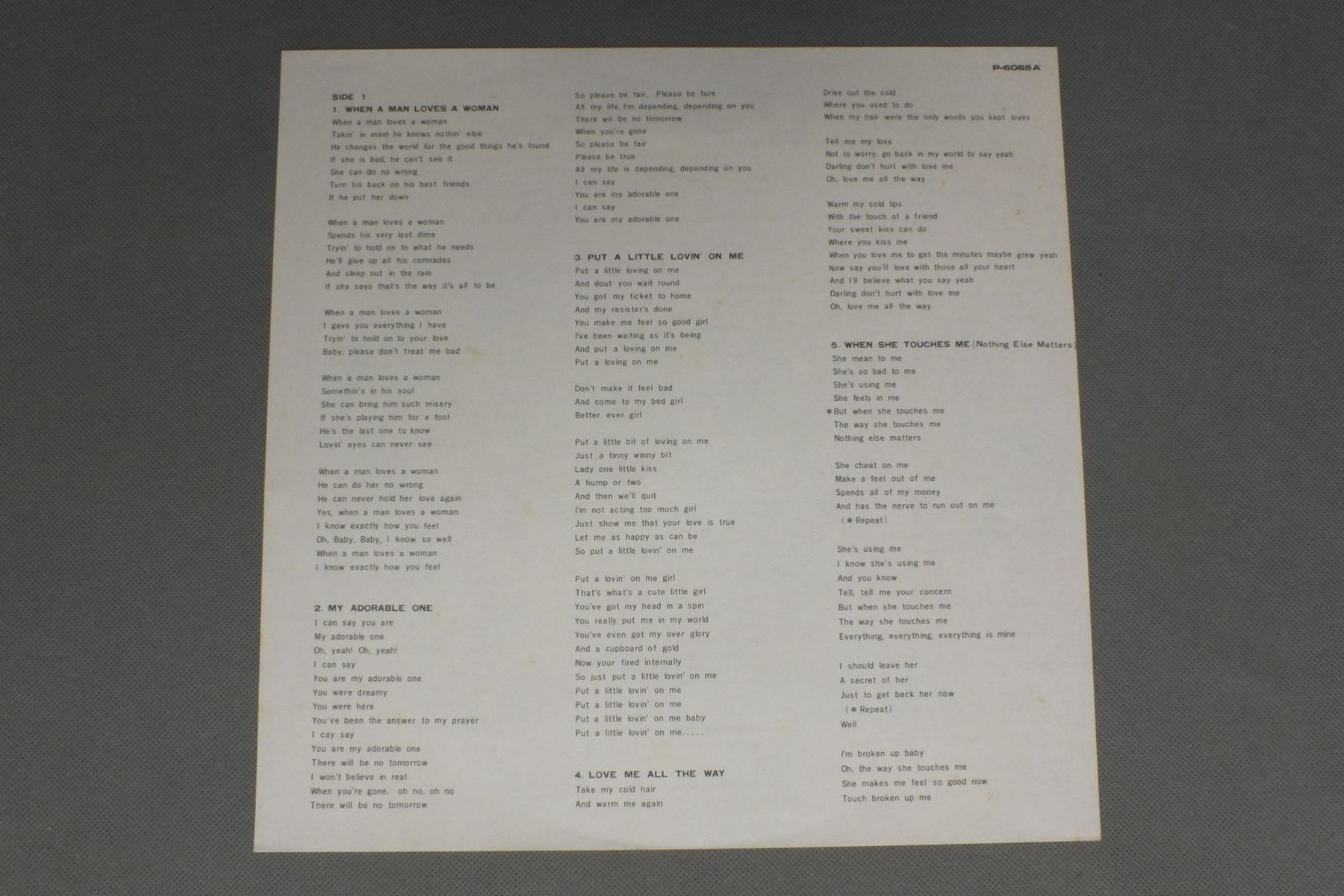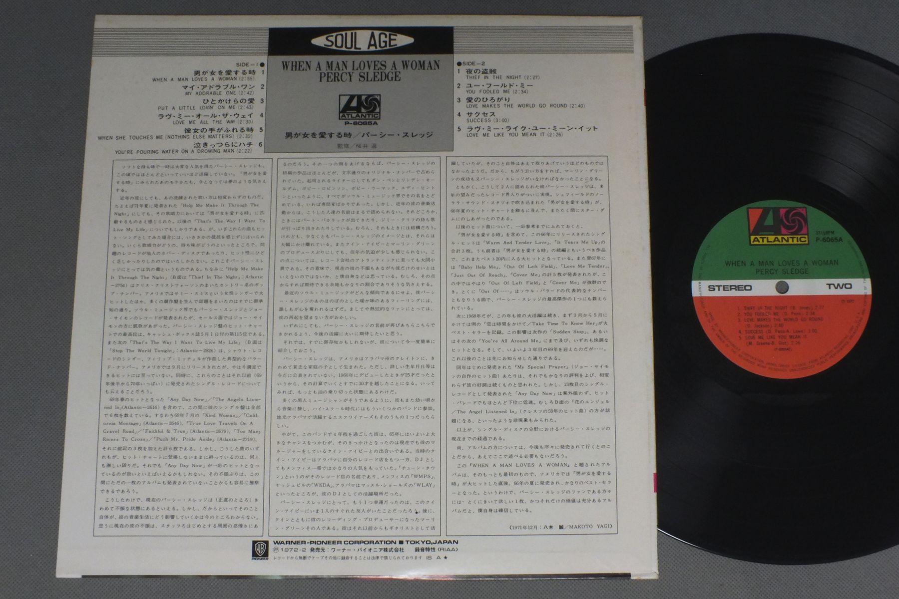 PERCY SLEDGEパーシー・スレッジ/WHEN A MAN LOVES A WOMAN男が女を愛する時 P-6065A 製造国:日本盤 / Media:LP外観:EX-盤の状態:EX 価格(税込):¥1,155(売約済) 送料 7inch:定形外郵便 360円~LP:定形外郵便 660円~送料は、注文の最終画面で確認頂けます。 > > PERCY SLEDGE/WHEN A MAN LOVES A WOMAN 外観 (EX-)特記事項:ジャケ表面にシミやよごれ有り。外観EX-の共通説明:ダメージ軽度~多少。 中古品としては普通の状態。シミ、ヨゴレ、スレなど軽く~多少。 盤の状態 (EX)特記事項:薄いスリキズ・スレ軽くある感じ。軽微なものの様子です。盤EXの共通説明:盤面のスリキズが薄いものが少し~軽度 音に出そうなものは無いように見える(軽微なソフトティック音は除く)。 Tweet それぞれの画像をクリックすると、大きい写真が見られます こちらの商品もお勧めです 662円 JOE TEXジョー・テックス / HOLD WHAT YOU`VE GOTホールド・ホワット・ユーヴ・ガット 1,320円 EARTH. WIND & FIREアース・ウインド & ファイアー / FACESフェイセス 1,210円 GRANDMASTER FLASHグランドマスター・フラッシュ / SOURCEソース 660円 AL GREENアル・グリーン / I`LL RISE AGAINアイル・ライズ・アゲイン 1,210円 OTIS REDDINGオーティス・レディング / RECORDED LIVEビッグ・オー 未発表ライブ 1,210円 ASHFORD & SIMPSONアシュフォード&シンプソン / SOLIDソリッド 1,210円 EARTH. WIND & FIREアース・ウインド & ファイアー / RAISE!天空の女神 660円 STEVIE WONDER / IN SQUARE CIRCLE
