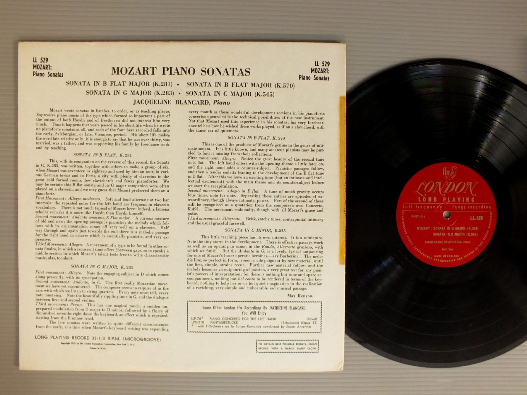 BLANCARD/MOZART-PIANO SONATAS K281-K283-K545-K570 LL529 製造国:英国盤 / Media:LP外観:EX-盤の状態:EX- 価格(税込):¥3,445(売約済) 送料 7inch:定形外郵便 360円~LP:定形外郵便 660円~送料は、注文の最終画面で確認頂けます。 > > BLANCARD/MOZART-PIANO SONATAS K281-K283-K545-K570 外観 (EX-)特記事項:背にテープ。外観EX-の共通説明:ダメージ軽度~多少。 中古品としては普通の状態。シミ、ヨゴレ、スレなど軽く~多少。 盤の状態 (EX-)特記事項:薄いスリキズ・細かい表面スレ軽くある感じ。全体的には殆どが軽微なものの様子です。盤EX-の共通説明:盤面のスリキズが多少有り。音に出そうなものは殆ど無いように見える~さほど気にならないぐらいの軽いプチ数カ所程度。 Tweet それぞれの画像をクリックすると、大きい写真が見られます こちらの商品もお勧めです 1,320円 RAMPAL / FESTIVAL OF FLUTE CONCERTOS 4,400円 TELEFUNKEN | LEONHARDTレオンハルト / CENBALOMUSIKチェンバロ作品集 990円 MIQUEL QUEROLミゲル・ケロル / HISPANIAE MUSICAイスパニアの音楽 990円 GRAINNE YEATSグラーニア・イェイツ / BELFAST HARP FESTIVAL 1792 1,980円 DIESKAU MENUHIN / BEETHOVEN FOLK SONGS 990円 FERNANDO GERMANI / ORGAN RECITAL AT SELBY ABBEY. YORKSHIRE 1,870円 YVES NAT / BRAHMS VARIATIONS ET FUGUE 990円 ADLER / PHILIP JAMES SYM. NO.1
