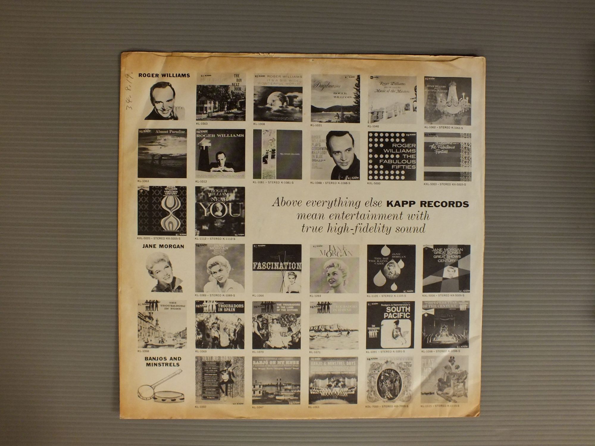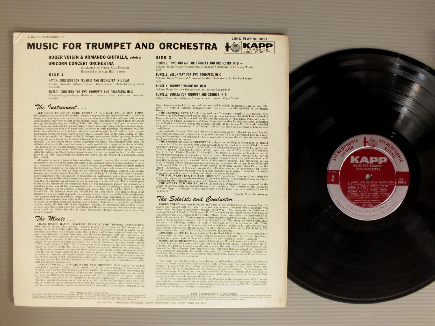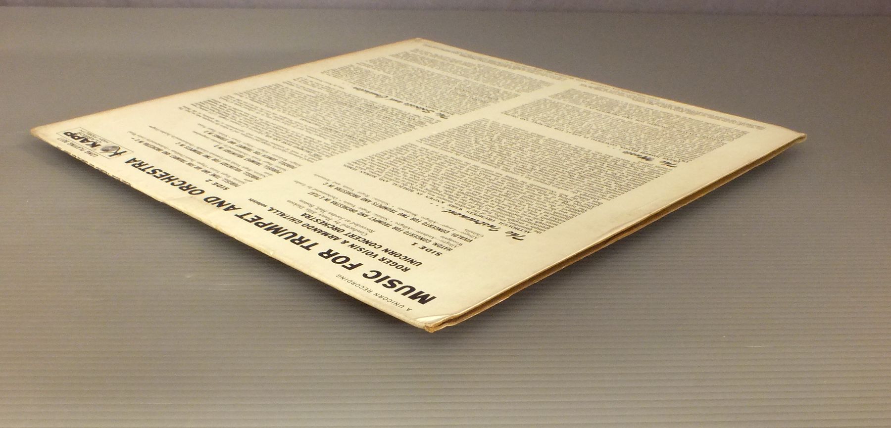 ROGER VOISIN-ARMANDO GHITALLA/MUSIC FOR TRUMPET&ORCH. KCL9017 製造国:米国盤 / Media:LP外観:EX盤の状態:EX- 価格(税込):¥924(売約済) 送料 7inch:定形外郵便 360円~LP:定形外郵便 660円~送料は、注文の最終画面で確認頂けます。 > > ROGER VOISIN-ARMANDO GHITALLA/MUSIC FOR TRUMPET&ORCH. 外観 (EX)特記事項:特記なし。外観EXの共通説明:ダメージが限定的。中古品としては保存状態がよい方。シミ、ヨゴレ、スレ 少し~軽度。 盤の状態 (EX-)特記事項:薄いスリキズ・細かい表面スレ軽くある感じ。全体的には殆どが軽微なものの様子です。盤EX-の共通説明:盤面のスリキズが多少有り。音に出そうなものは殆ど無いように見える~さほど気にならないぐらいの軽いプチ数カ所程度。 Tweet それぞれの画像をクリックすると、大きい写真が見られます こちらの商品もお勧めです 990円 PABLO CASALS / BEETHOVEN - TRIO FOR PIANO VIOLIN & CELLO 990円 DURAN-GRAPPELLI & HOLLOWAY / BRANDENBURG BOOGIE 1,430円 HANS REINARTZ-KURT HAUSMANN-KARL BENDER / TELEMANN-OBOE & VIOLA CONC. 990円 VIENNA PHILHARMONIA QUINTET / DVORAK - QUINTET NO3-BAGATELLES 990円 SMETANA QUARTET / SMETANA SQS NOS1 AND 2 1,430円 EMILL SEILER / XI FORSCHUNGSBEREICH SERIE A TELEMANN 1,430円 NEW ART WIND QUINTET / NIELSEN QUINTETTE 1,870円 SELLHEIM DUO / BRAHMS VIOLONCELLOSONATEN