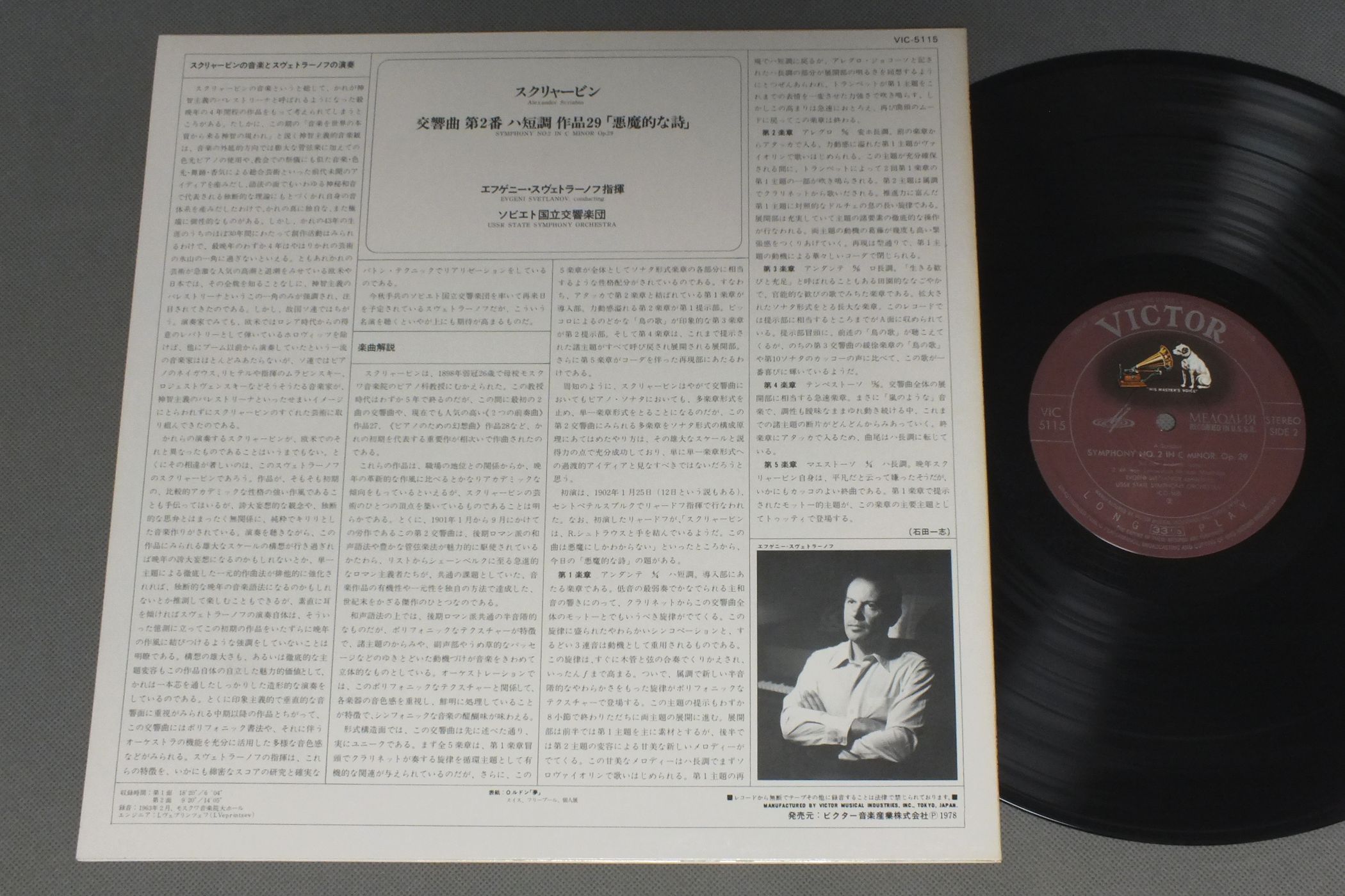 SVETLANOVスヴェトラーノフ/SCRIABIN SYM. NO2 OP29スクリャービン 交響曲 第2番 VIC-5115 製造国:日本盤 / Media:LP外観:EX盤の状態:EX+ 価格(税込):¥1,386(売約済) 送料 7inch:定形外郵便 360円~LP:定形外郵便 660円~送料は、注文の最終画面で確認頂けます。 > > SVETLANOV/SCRIABIN SYM. NO2 OP29 外観 (EX)特記事項:特記なし。外観EXの共通説明:ダメージが限定的。中古品としては保存状態がよい方。シミ、ヨゴレ、スレ 少し~軽度。 盤の状態 (EX+)特記事項:薄いスリキズ・スレ少し。一見してきれいな状態です。盤EX+の共通説明:盤面の極薄いスリキズ、スレ少し程度 音に出そうなものは無いように見える(極軽微なソフトティック音は除く)。 Tweet それぞれの画像をクリックすると、大きい写真が見られます こちらの商品もお勧めです 990円 FIEDLERフィードラー / GREATEST HITS-BOSTON POPS ORCH.グレイテスト・ヒッツ-ボストン・ポップス・コンサート 1,430円 LUPU-SEGALルプー-シーガル / MOZART PIANO CONCERTOS K467 & K414モーツアルト ピアノ協奏曲 第21・12番 990円 MAAZEL - BERLIN PHIL.マゼール - ベルリン・フィル / BRAHMS - SYM. NO3ブラームス -- 交響曲第3番 990円 KARAJANカラヤン / BEETHOVEN-SYM.SNO3 & NO6ベートーヴェン交響曲第三番-第六番 1,320円 ANSERMET - L`ORCHESTRE DE LA SUISSE ROMANDEアンセルメ - スイス・ロマンド管弦楽団 / MA MER L`OYEマ・メール・ロワ 990円 MUNCH - ROTTERDAM PHILHARMONISCH ORKESTミュンシュ - ロッテルダム・フィルハーモニー管弦楽団 / BEETHOVEN - SYMPHONY NO.6`PASTORALE`ベートーヴェン交響曲第6番`田園` 990円 STEPHEN BISHOP-COLIN DAVISスティーヴン・ビショップ-コリン・デイヴィス / BARTOK-PIANO CONC. NOS 1&3バルトーク-ピアノ協奏曲 第1番 & 第3番 990円 BRENDEL - MARRINER-ACADEMY OF ST.ブレンデル‐マリナー-アカデミー室内管弦楽団 / MOZART - PIIANO CONCERT K.415&K.449モーツアルト-ピアノ協奏曲第13番K.415第14番K.449