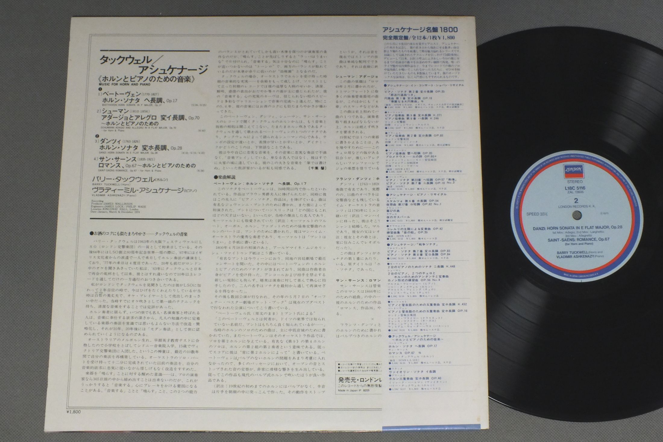 TUCKWELL-ASHKENAZYタックウェル-アシュケナージ/MUSIC FOR HORN & PIANOホルンとピアノのための音楽 L18C-5116 製造国:日本盤 / Media:LP外観:EX盤の状態:EX+帯:EX 価格(税込):¥880(売約済) 送料 7inch:定形外郵便 360円~LP:定形外郵便 660円~送料は、注文の最終画面で確認頂けます。 > > TUCKWELL-ASHKENAZY/MUSIC FOR HORN & PIANO 外観 (EX)特記事項:特記なし。外観EXの共通説明:ダメージが限定的。中古品としては保存状態がよい方。シミ、ヨゴレ、スレ 少し~軽度。 盤の状態 (EX+)特記事項:薄いスリキズ・スレ少し。一見してきれいな状態です。盤EX+の共通説明:盤面の極薄いスリキズ、スレ少し程度 音に出そうなものは無いように見える(極軽微なソフトティック音は除く)。 帯の状態 (EX):シミやよごれ有り。 Tweet それぞれの画像をクリックすると、大きい写真が見られます こちらの商品もお勧めです 990円 J.-F.PAILLARDジャン=フランソワ・パイヤール / J.-F.PAILLARD CONCERT DE BAROQUEパイヤール・バロック・コンサ−ト 770円 PHILHARMONISCHE SOLISTEN BERLINベルリン・フィルハーモニー・ゾリステン / MOZART - KLARINETTENOUINETEE KVモーツアルト - クラリネット5重奏曲 2,420円 LEOPOLD WLACHウラッハ / ART OF LEOPOLD WLACH 5LP BOXウラッハの芸術 4枚組 990円 KARL RICHTER - ELISABETH LINDERMEIRリヒター - リーダーマイア - ザイツ他 / HEINRICH SCHUTZ - MUSCIALISCHE EXEQUEIENハインリッヒ・シュッツ - ムジカリッシェ・エクセヴィエン 2,640円 GIESEKING & PHILHARMONIA WIND QUARTETギーゼキング フィルハーモニア木管四重奏団 / MOZART QUINTET K452ピアノと木管の為の五重奏曲 モーツァルト K452 1,430円 SCHLLENBERGER etcシェレンベルガー / MOZART/QUARTET KV370 etcモーツァルト/オーボエ四重奏曲 990円 UGHI-SAWALLISCHウーギ-サヴァリッシュ / BEETHOVEN SONATAS KREUTZER SPRINGクロイツェル & スプリング 1,320円 STARKER & SEBOKシュタルケル & シェベック / BEETHOVEN - SONATES NO3 & 4ベートーヴェン - チェロ・ソナタ 第3番4番