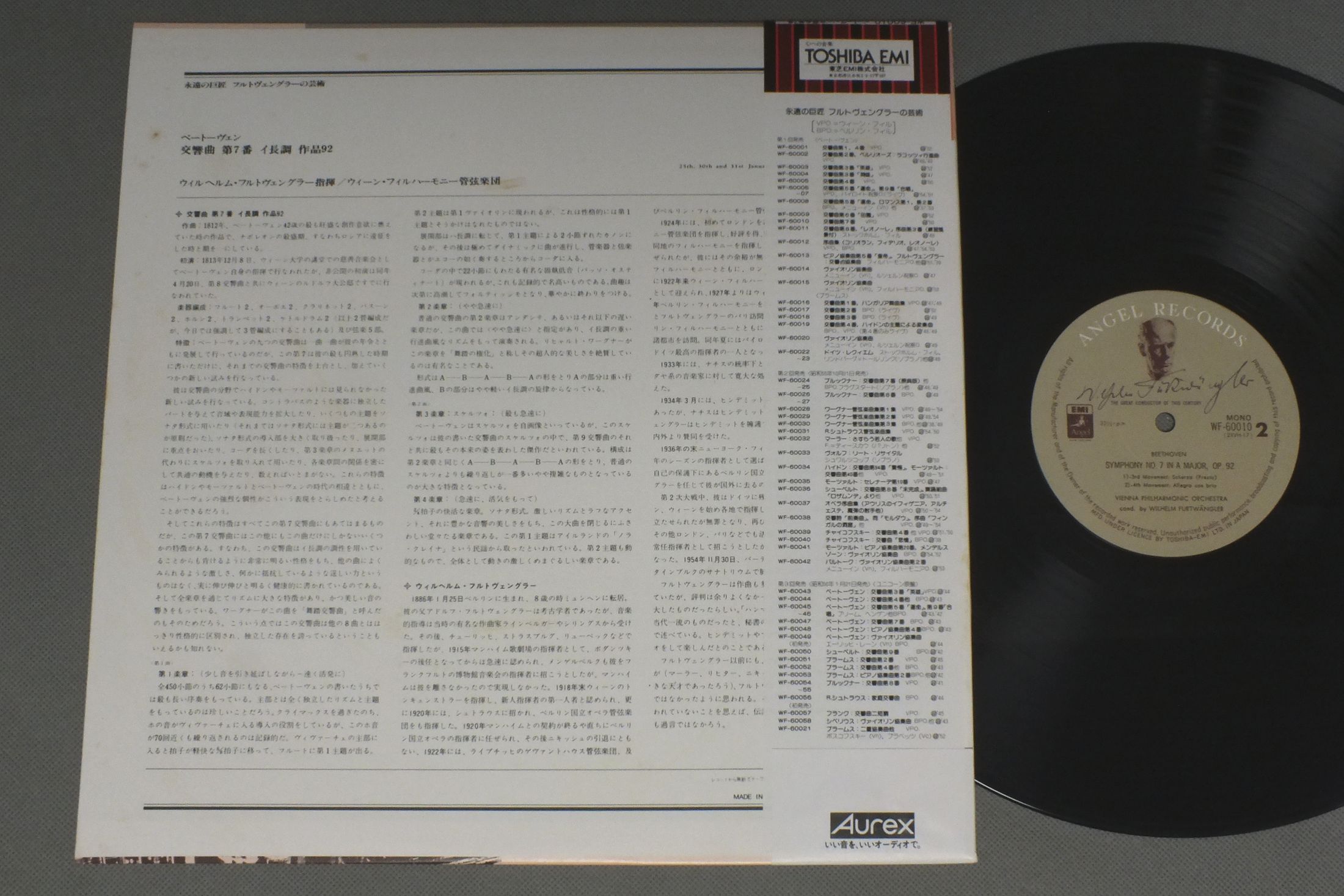 FURTWANGLERフルトヴェングラー/BEETHOVEN SYM. NO7ベートーヴェン-交響曲第7番 WF-60010 製造国:日本盤 / Media:LP外観:EX-盤の状態:EX+帯:EX 価格(税込):¥880(売約済) 送料 7inch:定形外郵便 360円~LP:定形外郵便 660円~送料は、注文の最終画面で確認頂けます。 > > FURTWANGLER/BEETHOVEN SYM. NO7 外観 (EX-)特記事項:ジャケ表面にシミやよごれ有り。外観EX-の共通説明:ダメージ軽度~多少。 中古品としては普通の状態。シミ、ヨゴレ、スレなど軽く~多少。 盤の状態 (EX+)特記事項:薄いスリキズ・スレ少し。一見してきれいな状態です。盤EX+の共通説明:盤面の極薄いスリキズ、スレ少し程度 音に出そうなものは無いように見える(極軽微なソフトティック音は除く)。 帯の状態 (EX):シミやよごれ有り。 Tweet それぞれの画像をクリックすると、大きい写真が見られます こちらの商品もお勧めです 1,320円 RICHTER - KARAJAN - VIENNA SYMPHONY ORCHESTRAリヒテル - カラヤン - ウィーン交響楽団 / TCHAIKOVSKY - PIANO CONNCERTO NO.1チャイコフスキー - ピアノ協奏曲第1番 990円 TOSCANINIトスカニーニ / ROSSINI OVERTURESロッシーニ 序曲集 770円 WALTERワルター / MOZART/VIOLIN CONC. NO3 etcモーツァルト/ヴァイオリン協奏曲 3番 他 1,320円 MATACIC - MONTE CARLO ORCHESTRAマタチッチ - モンテカルロ国立歌劇場管弦楽団 / GREIEG - SCHUMANN - PIANO CONCERTOSグリーグ&シューマン - ピアノ協奏曲 770円 BERNSTEIN - NEW YORK PHILHARMONICバーンステイン - ニューヨーク・フィル / ROSSINI OVERTURESロッシーニ名序曲集 990円 SZELLセル / MOZART- SYM.S NOS28 & 33 etcモーツァルト-交響曲第28番 & 第33番 他 1,430円 MUNCH - ORCHESTRE DE PARISミュンシュ - パリ音楽院管弦楽団 / BERLIOZ SYMPHONIE FANTASTIQUEベルリオーズ 幻想交響曲 990円 WALTER - COLUMBIA SYM.ワルター / ACTUAL REHEARSALS VOL3リハーサル風景VOL3