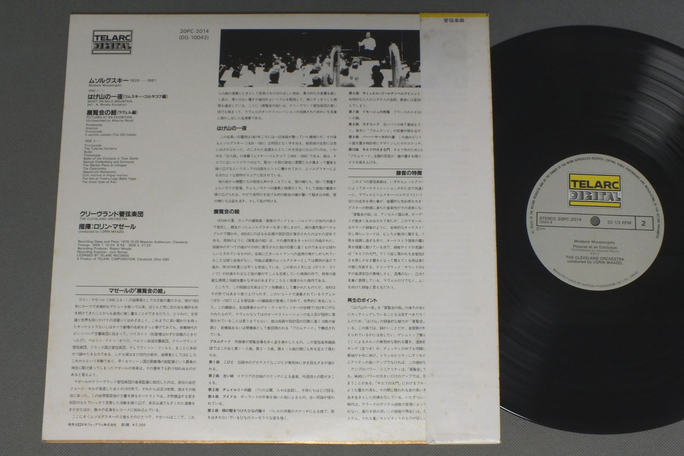MAAZELマゼール/MUSSORGSKY PICTURES AT AN EXHIBITIONムソルグスキー 展覧会の絵 20PC-2014 製造国:日本盤 / Media:LP外観:EX盤の状態:EX+帯:EX- 価格(税込):¥1,320(売約済) 送料 7inch:定形外郵便 360円~LP:定形外郵便 660円~送料は、注文の最終画面で確認頂けます。 > > MAAZEL/MUSSORGSKY PICTURES AT AN EXHIBITION 外観 (EX)特記事項:特記なし。外観EXの共通説明:ダメージが限定的。中古品としては保存状態がよい方。シミ、ヨゴレ、スレ 少し~軽度。 盤の状態 (EX+)特記事項:薄いスリキズ・スレ少し。一見してきれいな状態です。盤EX+の共通説明:盤面の極薄いスリキズ、スレ少し程度 音に出そうなものは無いように見える(極軽微なソフトティック音は除く)。 帯の状態 (EX-):シミやよごれ有り。 Tweet それぞれの画像をクリックすると、大きい写真が見られます こちらの商品もお勧めです 990円 MONTEUX - VIENNA PHIL.モントゥー - ウィーン・フィル / HAYDN -SYM. NO94 SURPRIXE & 101 CLOCKハイドン - 交響曲第94番驚がく&101番時計 1,320円 PAILLARD - ORCHESTRE DE CHAMBLE PAILLRDパイヤール - パイヤール室内管弦楽団 / AUTOUR DE L`ADAGIO CELEBLE DE L`ALBINONIアルビノーニのアダージョ 1,320円 ABBADO - VIENNA PHIL.アバード - ウィーン・フィル / BRUCKNER - SYM. NO1ブルックナー 交響曲第1番 1,430円 BOHM - WIENER PHILLHARMONICベーム - ウィーンフィル / MOZART - SYMPHONY NO41 JUPITERモーツァルト - 交響曲第40番41番 990円 KARAJANカラヤン / HAYDN SYM.S NOS103-104ハイドン 交響曲 103番 変`太鼓連打`-交響曲 第104番 `ロンドン` 990円 BERNSTEINバーンステイン / PICTURES AT AN EXHIBITIONムソルグスキー-展覧会の絵-ラヴェル-ボレロ 770円 GIULINI - CHICAGO SYM. ORCH.ジュリーニ- シカゴ交響楽団 / MUSSORGSKY - BILDER EINER AUSSSTELLUNGムソルグスキー -展覧会の絵 990円 PREVIN - LONDON SYMPHONY ORCHESTRAプレヴィン - ロンドン交響楽団 / PROKOFIEV - PETER AND THE WOLFプロコフィエフ - ピーターと狼