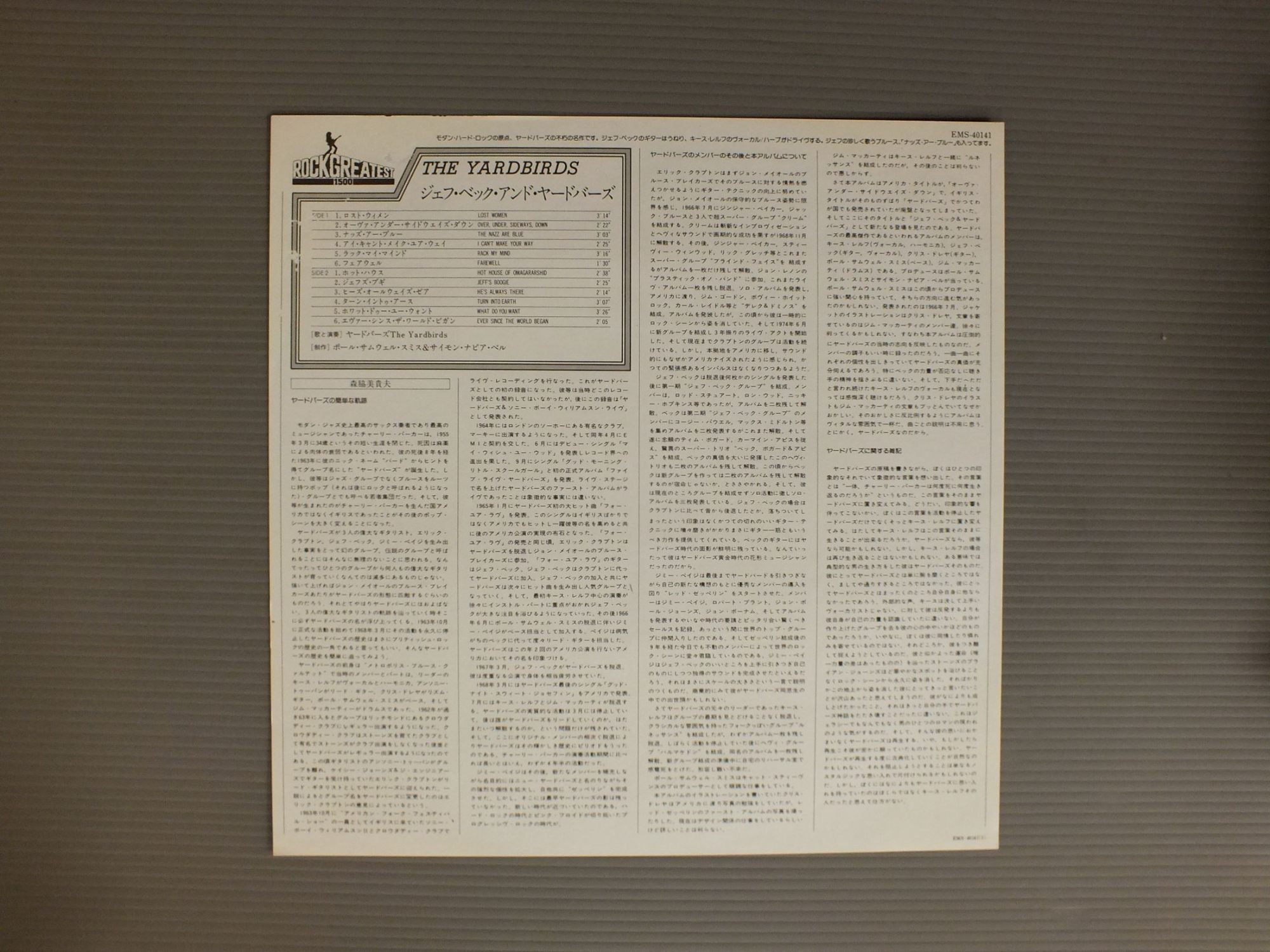 YARDBIRDSヤードバーズ/YARDBIRDSジェフ・ベック・アンド・ヤードバーズ EMS40141 製造国:日本盤 / Media:LP外観:EX盤の状態:EX+帯:EX 価格(税込):¥1,650(売約済) 送料 7inch:定形外郵便 360円~LP:定形外郵便 660円~送料は、注文の最終画面で確認頂けます。 > > YARDBIRDS/YARDBIRDS 外観 (EX)特記事項:背周辺に日焼け有り。外観EXの共通説明:ダメージが限定的。中古品としては保存状態がよい方。シミ、ヨゴレ、スレ 少し~軽度。 盤の状態 (EX+)特記事項:薄いスリキズ・スレ少し。一見してきれいな状態です。盤EX+の共通説明:盤面の極薄いスリキズ、スレ少し程度 音に出そうなものは無いように見える(極軽微なソフトティック音は除く)。 帯の状態 (EX):特記なし。 Tweet それぞれの画像をクリックすると、大きい写真が見られます こちらの商品もお勧めです 4,950円 ANIMALSアニマルズ / BEST ALBUM アニマルズのすべて 赤盤 2,640円 SPOTNICKSスプートニクス / KARELIA-THE BEST OF THE SPOTNICKS霧のカレリア-ベスト・オブ・ザ・スプートニクス