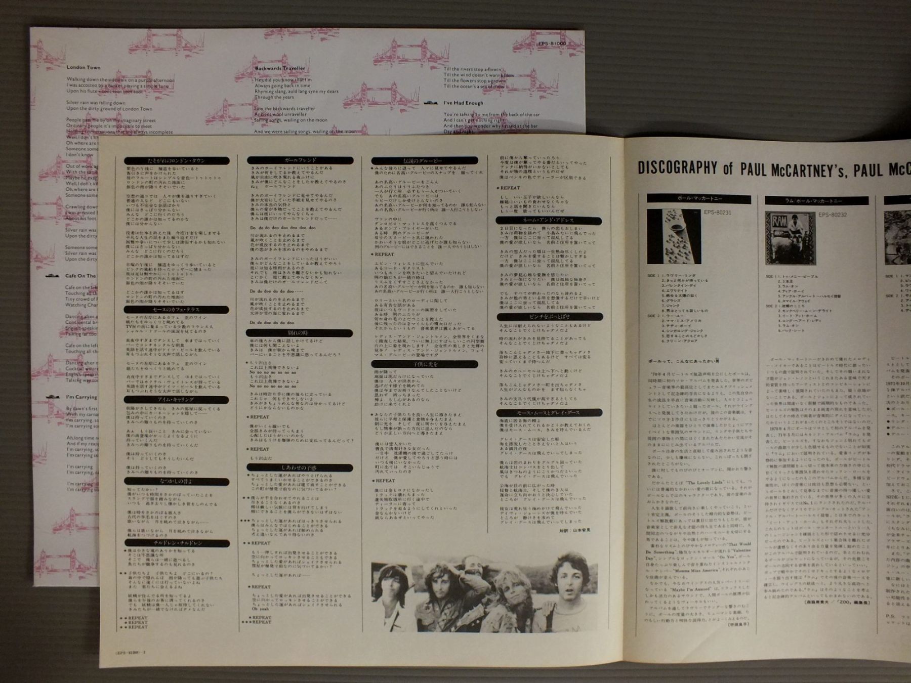 PAUL MCCARTNEY & WINGSポール・マッカートニー&ウイングス/LONDON TOWNたそがれのロンドン・タウン EPS81000 製造国:日本盤 / Media:LP外観:EX盤の状態:EX+帯:EX 価格(税込):¥1,485(売約済) 送料 7inch:定形外郵便 360円~LP:定形外郵便 660円~送料は、注文の最終画面で確認頂けます。 > > PAUL MCCARTNEY & WINGS/LONDON TOWN 外観 (EX)特記事項:表ジャケ背下付近にヨレ。外観EXの共通説明:ダメージが限定的。中古品としては保存状態がよい方。シミ、ヨゴレ、スレ 少し~軽度。 盤の状態 (EX+)特記事項:薄いスリキズ・スレ少し。一見してきれいな状態です。盤EX+の共通説明:盤面の極薄いスリキズ、スレ少し程度 音に出そうなものは無いように見える(極軽微なソフトティック音は除く)。 帯の状態 (EX):シミやよごれ有り。 Tweet それぞれの画像をクリックすると、大きい写真が見られます こちらの商品もお勧めです 1,210円 WINGSウイングス / GREATEST HITSグレイテスト・ヒット 1,650円 GEORGE HARRISONジョージ・ハリソン / EXTRA TEXTUREジョージ・ハリソン帝国 1,210円 WINGSウィングス / VENUS & MARSヴィーナス・アンド・マース 1,650円 GEORGE HARRISONジョージ・ハリスン / DARK HORSEダーク・ホース 880円 PAUL McCARTNEYポール・マッカートニー / TUG OF WARタグ・オブ・ウォー 770円 PAUL MCCARTNEY&WINGSポール・マッカートニー&ウイングス / BAND ON THE RUNバンド・オン・ザ・ラン 770円 WINGSポール・マッカートニー&ウイングス / VENUS AND MARSヴィーナス・アンド・マース 990円 WINGS / VENUS AND MARS