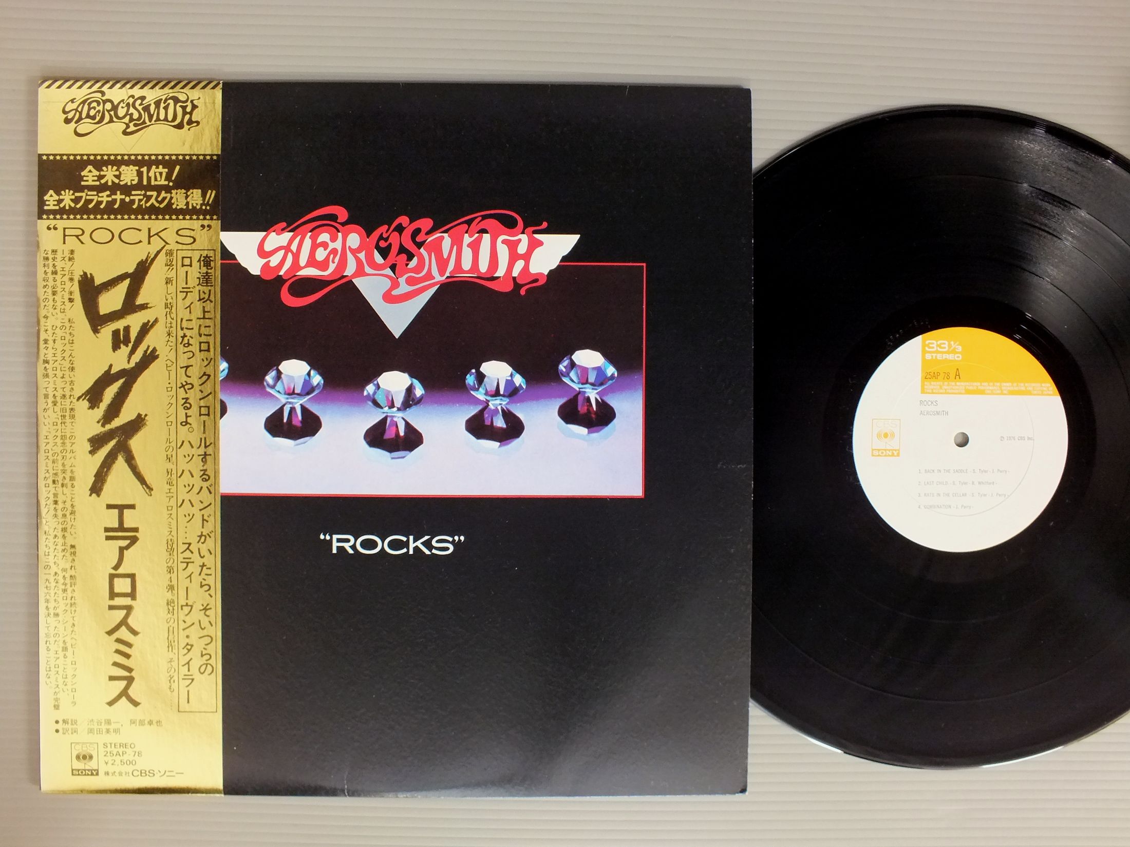 AEROSMITHエアロスミス/ROCKSロックス 25AP78 製造国:日本盤 / Media:LP外観:EX盤の状態:EX+帯:EX 価格(税込):¥1,650(売約済) 送料 7inch:定形外郵便 360円~LP:定形外郵便 660円~送料は、注文の最終画面で確認頂けます。 > > AEROSMITH/ROCKS 外観 (EX)特記事項:特記なし。外観EXの共通説明:ダメージが限定的。中古品としては保存状態がよい方。シミ、ヨゴレ、スレ 少し~軽度。 盤の状態 (EX+)特記事項:薄いスリキズ・スレ少し。一見してきれいな状態です。盤EX+の共通説明:盤面の極薄いスリキズ、スレ少し程度 音に出そうなものは無いように見える(極軽微なソフトティック音は除く)。 帯の状態 (EX):裏側に切れ有り。 Tweet それぞれの画像をクリックすると、大きい写真が見られます こちらの商品もお勧めです 660円 BERLIN / COUNT THREE & PRAY 1,320円 MICHAEL SCHENKER GROUPマイケル・シェンカー・グループ / 1st ALBUM神(帰ってきたフライング・アロウ 770円 HAGAR SCHON AARONSON HRIEVEヘイガー、ショーン、アローソン、シュリーヴ / THROUGH THE FIRE炎の饗宴 660円 NIGHT RANGER / MIDNIGHT MADNESS + BOOKMIDNIGHT MADNESS + BOOK付 990円 ANGELエンジェル / ANGEL天使の美学 770円 IAN GILLAN BANDイアン・ギラン・バンド / LIVE AT THE BUDOKANライブ・イン・ジャパン 770円 MONTROSEモントローズ / WARNER BROS PRESENTS MONTROSEワーナー・ブラザース・プレゼンツ・モントローズ 770円 IAN GILLAN BANDイアン・ギラン・バンド / LIVE AT THE BUDOKAN VOL2ライブ・イン・ジャパン VOL2
