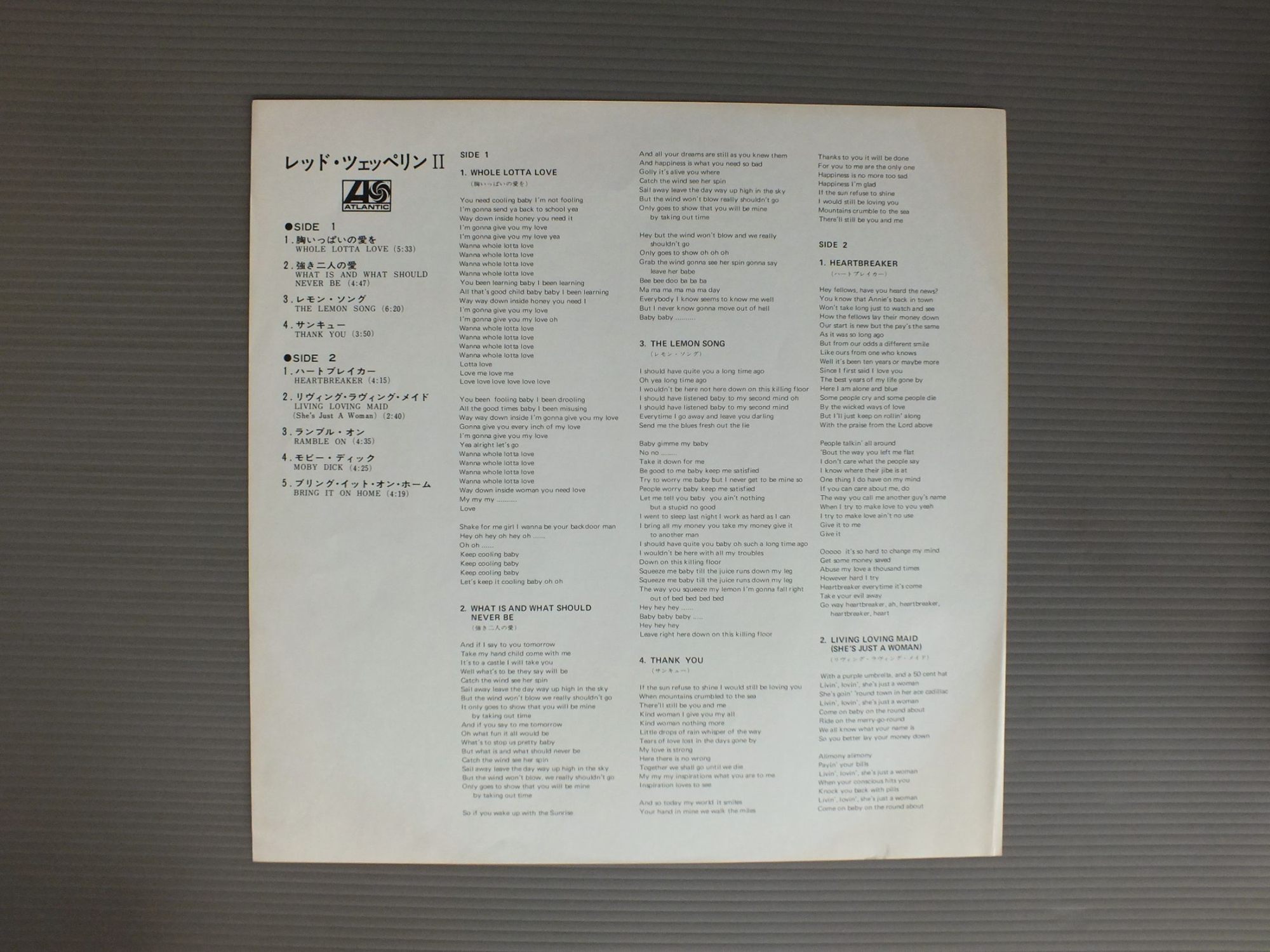 LED ZEPPELINレッド・ツェッペリン/LED ZEPPELIN IIレッド・ツェッペリンII P10101A 製造国:日本盤 / Media:LP外観:EX盤の状態:EX+ 価格(税込):¥1,650(売約済) 送料 7inch:定形外郵便 360円~LP:定形外郵便 660円~送料は、注文の最終画面で確認頂けます。 > > LED ZEPPELIN/LED ZEPPELIN II 外観 (EX)特記事項:背スレやヘリスレ有り。見開きに小さなスレ剥がれ。背焼け有り。外観EXの共通説明:ダメージが限定的。中古品としては保存状態がよい方。シミ、ヨゴレ、スレ 少し~軽度。 盤の状態 (EX+)特記事項:薄いスリキズ・スレ少し。一見してきれいな状態です。盤EX+の共通説明:盤面の極薄いスリキズ、スレ少し程度 音に出そうなものは無いように見える(極軽微なソフトティック音は除く)。 Tweet それぞれの画像をクリックすると、大きい写真が見られます こちらの商品もお勧めです 1,980円 ROBERT PLANTロバート・プラント / PICTURE AT ELEVEN11時の肖像