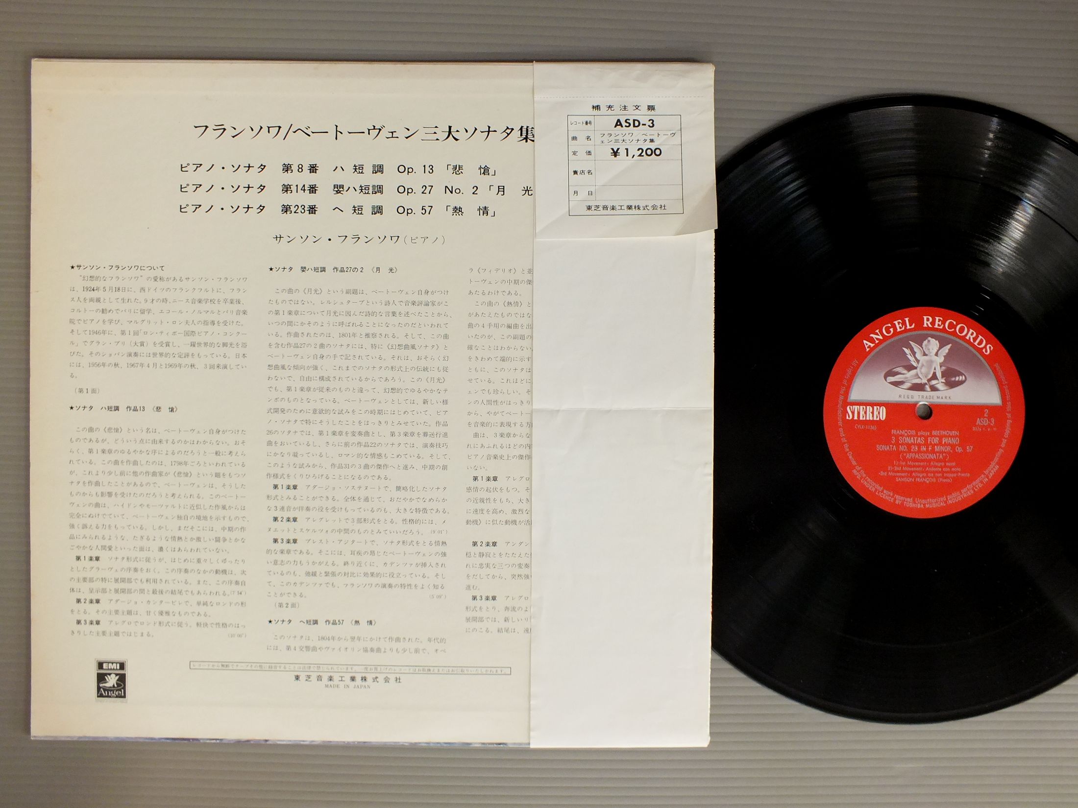 FRANCOISフランソワ/FRANCOIS PLAYS BEETHOVEN 3 PIANO SONATASフランソワ-ベートーヴェン三大ソナタ集 ASD3 製造国:日本盤 / Media:LP外観:EX盤の状態:EX帯:EX- 価格(税込):¥990 送料 7inch:定形外郵便 360円~LP:定形外郵便 660円~送料は、注文の最終画面で確認頂けます。 > > FRANCOIS/FRANCOIS PLAYS BEETHOVEN 3 PIANO SONATAS 外観 (EX)特記事項:裏ジャケにシミ有り。外観EXの共通説明:ダメージが限定的。中古品としては保存状態がよい方。シミ、ヨゴレ、スレ 少し~軽度。 盤の状態 (EX)特記事項:薄いスリキズ・スレ軽くある感じ。殆どが軽微なものの様子です。盤EXの共通説明:盤面のスリキズが薄いものが少し~軽度 音に出そうなものは無いように見える(軽微なソフトティック音は除く)。 帯の状態 (EX-):ヨレや折れ跡有り。 Tweet それぞれの画像をクリックすると、大きい写真が見られます こちらの商品もお勧めです 770円 FRANCOIS GLORIEUXフランソワ・グロリュー / PLAYS THE BEATLES驚異の才人グロリュー ビートルズを弾く 1,430円 ESCHENBACHエッシェンバッハ / SCHUMANN - KINDERSZENENシューマン- 子供の情景 990円 POWER BIGGSパワー・ビックス / PLYAS BACH IN THE THOMASKIRCHEバッハ - トッカータとフーガ(トーマス教会のパワー・ビックス) 990円 RALPH KIRKPATRICKラルフ・カークパトリック / BACH - FRANZOSISCHE SUITENバッハ - フランス組曲 990円 INGRID HAEBLERイングリット・ヘブラー / MOZART-4 PIANO SONATASモーツァルト-ピアノ・ソナタ・第11番 990円 BRAILOWSKYブライロフスキー / CHOPIN - NOCTURNESショパン夜想曲集 1,430円 RICHTERリヒテル / BEETHOVEN - PIANO SONATA etcベートーヴェン - ピアノソナタ他 990円 FRANCE CLIDATフランス・クリダ / FRANZ LISZT INTEGRALE DE LOEUVRE POUR PIANO 15リスト-ピアノ曲大全集15 巡札の年第3年 イタリア