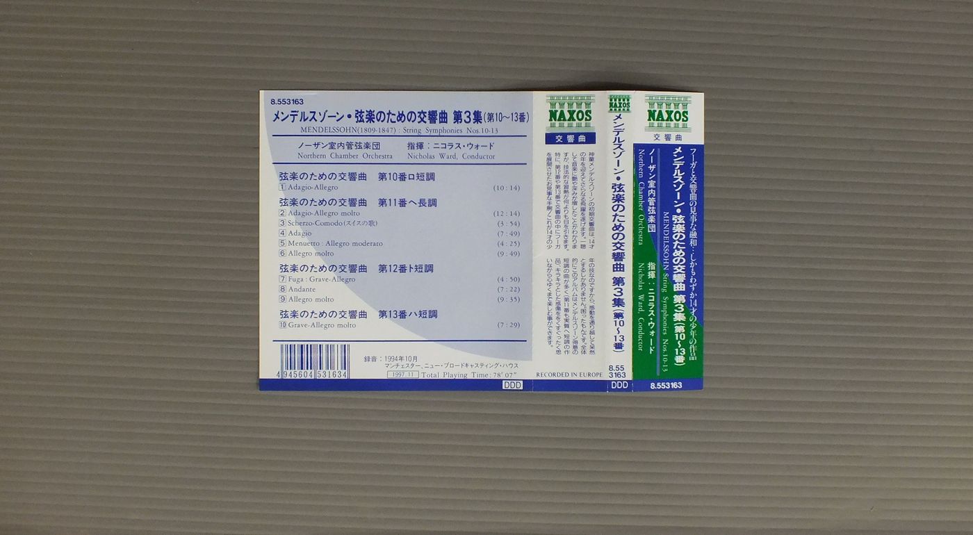 NICHOLAS WARDニコラス・ウォード/MENDELSSOHN-STRING SYM.S VOL3メンデルスゾーン-弦楽のための交響曲 第3集 8.553163 製造国:輸入盤 / Media:CD外観:EX+盤の状態:EX+帯:EX 価格(税込):¥660 送料 7inch:定形外郵便 360円~LP:定形外郵便 660円~送料は、注文の最終画面で確認頂けます。 レコード検索 > J-POP > NICHOLAS WARD/MENDELSSOHN-STRING SYM.S VOL3 外観 (EX+)特記事項:特記事項無し。コンディションリスト参照。外観EX+の共通説明:中古としては美品、一見してきれいでダメージが軽微。シミ、ヨゴレ、スレ有っても僅か~少し。 盤の状態 (EX+)特記事項:薄いスリキズ・スレ少し。一見してきれいな状態です。盤EX+の共通説明:盤面の極薄いスリキズ、スレ少し程度 音に出そうなものは無いように見える(極軽微なソフトティック音は除く)。 帯の状態 (EX):特記事項無し。コンディションリストを参照。 Tweet それぞれの画像をクリックすると、大きい写真が見られます こちらの商品もお勧めです 1,540円 BOHM - BERLINER PHILHARMONIKERベーム - ベルリン・フィル / SCHUBERT - SYMPHONIEN NR.5シューベルト交響曲第5番 990円 WIENNA PHILHARMONIC WIND GROUPウィーン・フィルハーモニー管弦楽団グループ / MOZART - DIVERTOMENTO モーツァルト - 喜遊曲 2,860円 JOCHUM - CHOR UND ORCHESTER DES BAYERISCHEN RUNDFUNKSヨッフム - バイエルン放送交響楽団 / HAYDN - MISSA SANCTAE CAECILIAEハイドン - チェチリアのミサ 1,540円 BOHM - BERLINER PHILHARMONIKERベーム - ベルリン・フィル / R.STRAUSS - TILL EULENSPIEGELリヒャルト・シュトラウス - ティル・オイレンシュピーゲルの愉快ないたずら 2,200円 BOULT + LONDON PHILHARMONIC ORCHESTRA / VAUGHAN WILLIAMS - THE NINE SYMPHONIES 9 LP BOX 1,540円 HAGER - MOZAARTEUM ORCHESTER SALZBURGレオポルト・ハーガー - ザルツブルク・モーツァルテウム管弦楽団 / MOZART - THAMOS KING OF EGYPT 990円 KENPE - BERLIN PHILHARMONIC ORCHESTRAケンペ - ベルリン・フィルハーモニー管弦楽団 / DVORAK - SYMPHONY NO.9ドヴォルザーク - 交響曲第9番 新世界より 1,760円 RICHTER - KARAJAN - WIENNA PHILHARMONICリヒター - カラヤン - ウィーン・フィル / TCHAIKOVSKY - CONCERT NO1 FOR PIANO AND ORCHESTRAチャイコフスキー - ピアノとオーケストラのための協奏曲第1番