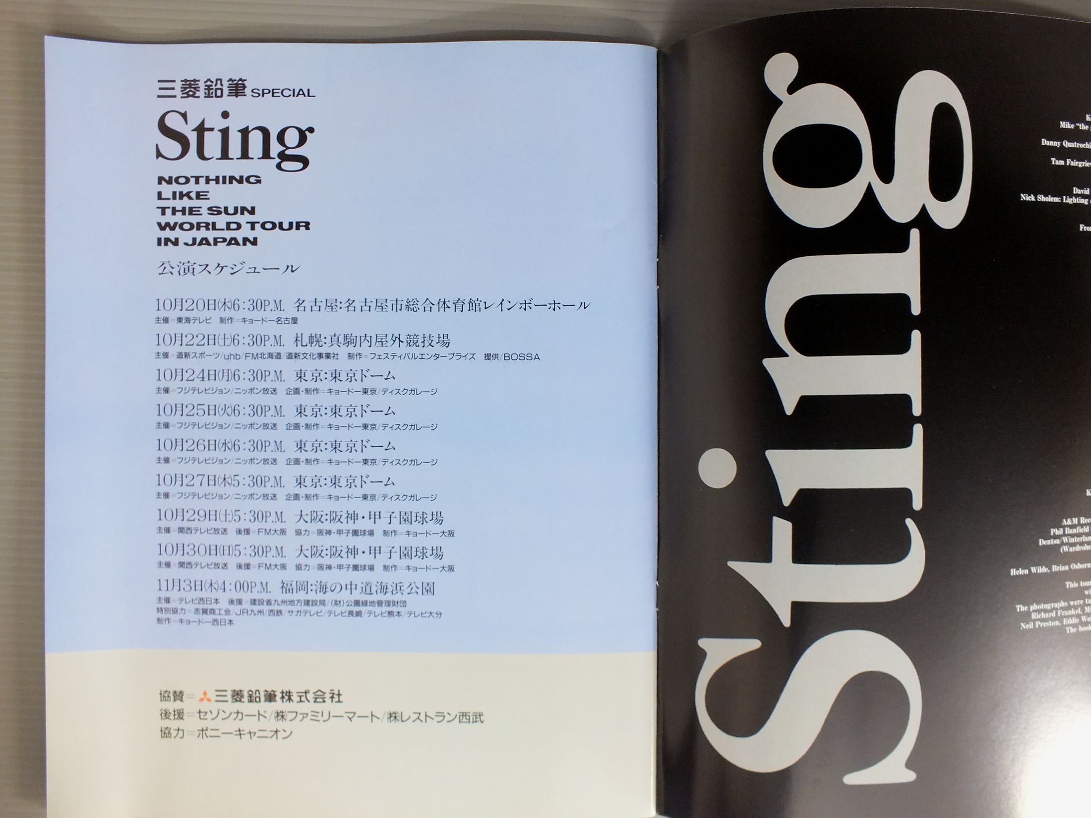 STINGスティング/1988 NOTHING LIKE THE SUN WORLD TOUR IN JAPAN PROGRAM日本公演 1988 外観:EX 価格(税込):¥770 送料 7inch:定形外郵便 360円~LP:定形外郵便 660円~送料は、注文の最終画面で確認頂けます。 レコード検索 > CLASSIC CHAMBER > STING/1988 NOTHING LIKE THE SUN WORLD TOUR IN JAPAN PROGRAM 外観 (EX)特記事項:特記なし。外観EXの共通説明:ダメージが限定的。中古品としては保存状態がよい方。シミ、ヨゴレ、スレ 少し~軽度。 Tweet それぞれの画像をクリックすると、大きい写真が見られます こちらの商品もお勧めです 1,320円 IAN MATTHEWSイアン・マシューズ / DTEALIN` HOMEスティーリン・ホーム 770円 MARK GOLDENBERG / L`HOMME A VALISE鞄を持った男 2,200円 RY COODERライ・クーダ / INTO THE PURPLE VALLEY紫の峡谷 3,300円 ELVIS PRESLEYBLUE HAWAII MONO / 6,050円 ELVIS PRESLEY / ELVIS IS BACK MONO 2,200円 ELTON JOHN / VERY ALIVE 1,980円 RY COODERライ・クーダ / BORDERLINEボーダーライン 4,950円 JOIN MARTYN / SUNDAY`S CHILD