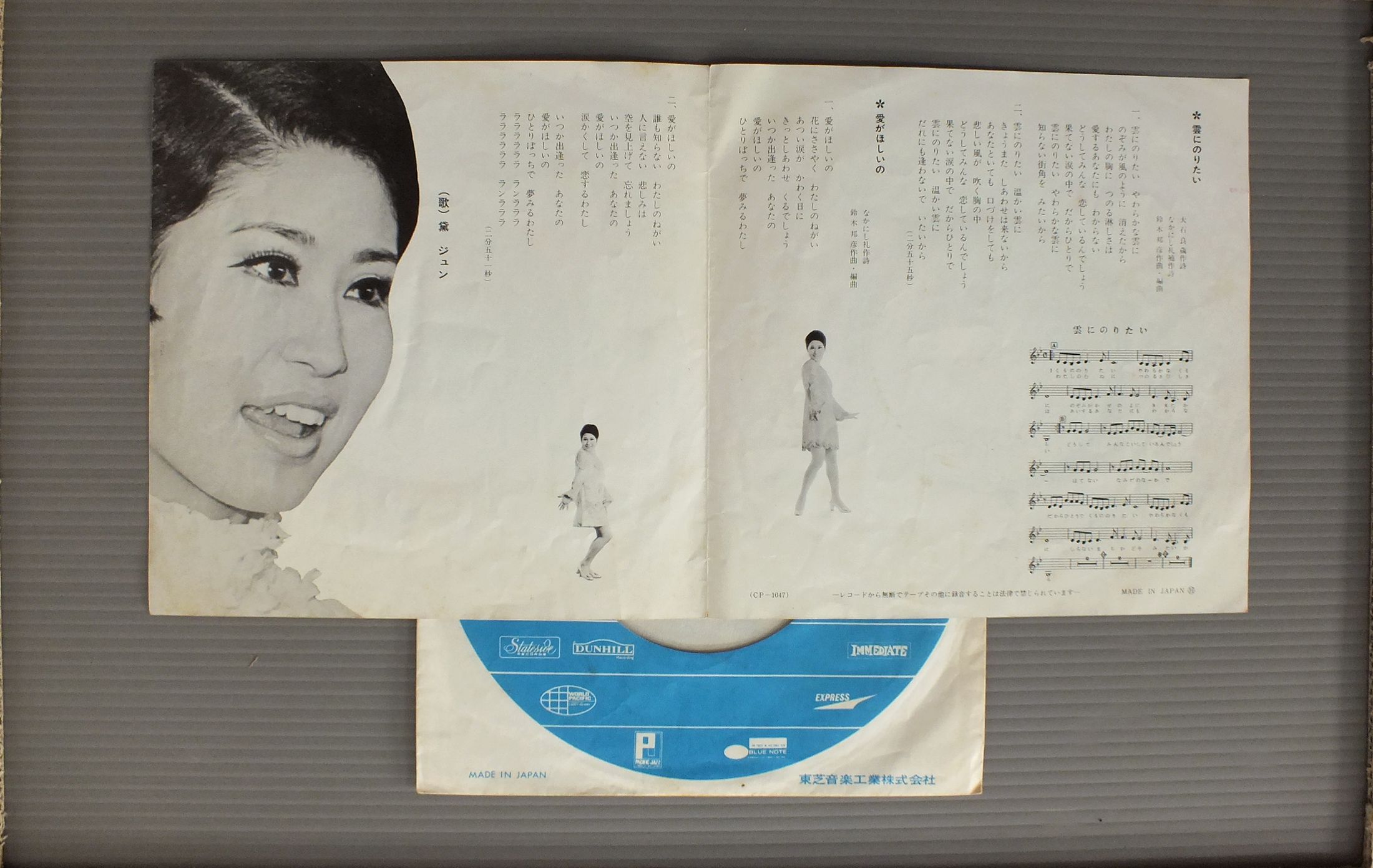 JUN MAYUZUMI黛ジュン/AMONG THE CLOUDS雲にのりたい CP1047 製造国:日本盤 / Media:7inch外観:EX-盤の状態:EX 価格(税込):¥550 送料 7inch:定形外郵便 360円~LP:定形外郵便 660円~送料は、注文の最終画面で確認頂けます。 レコード検索 > J-POP > JUN MAYUZUMI/AMONG THE CLOUDS 外観 (EX-)特記事項:ヨレ有り。見開きにシミ有り。外観EX-の共通説明:ダメージ軽度~多少。 中古品としては普通の状態。シミ、ヨゴレ、スレなど軽く~多少。 盤の状態 (EX)特記事項:薄いスレやスリキズが少々。盤EXの共通説明:盤面のスリキズが薄いものが少し~軽度 音に出そうなものは無いように見える(軽微なソフトティック音は除く)。 Tweet それぞれの画像をクリックすると、大きい写真が見られます こちらの商品もお勧めです 990円 YUKO TOMITAとみたゆう子 / TIMEタイム 880円 AKIRA INABA因幡晃 / NANIKA IIWASURETA YOUNA何か言い忘れたようで… 880円 MASA TAKAGI高木麻早 / 1st ALBUM高木麻早 770円 KEIKO FUJI藤圭子 / WOMAN`S BLUES女のブルース 660円 KENICHI HAGIWARA萩原健一 / NADJAナジャ 770円 YUMI MATSUTOYA松任谷由実 / DA・DI・DA 770円 AYUMI NAKAMURA中村 あゆみ / BOY 770円 NOA HORIGUCHI堀ロノア / SHOKAN-BAKO書簡箱