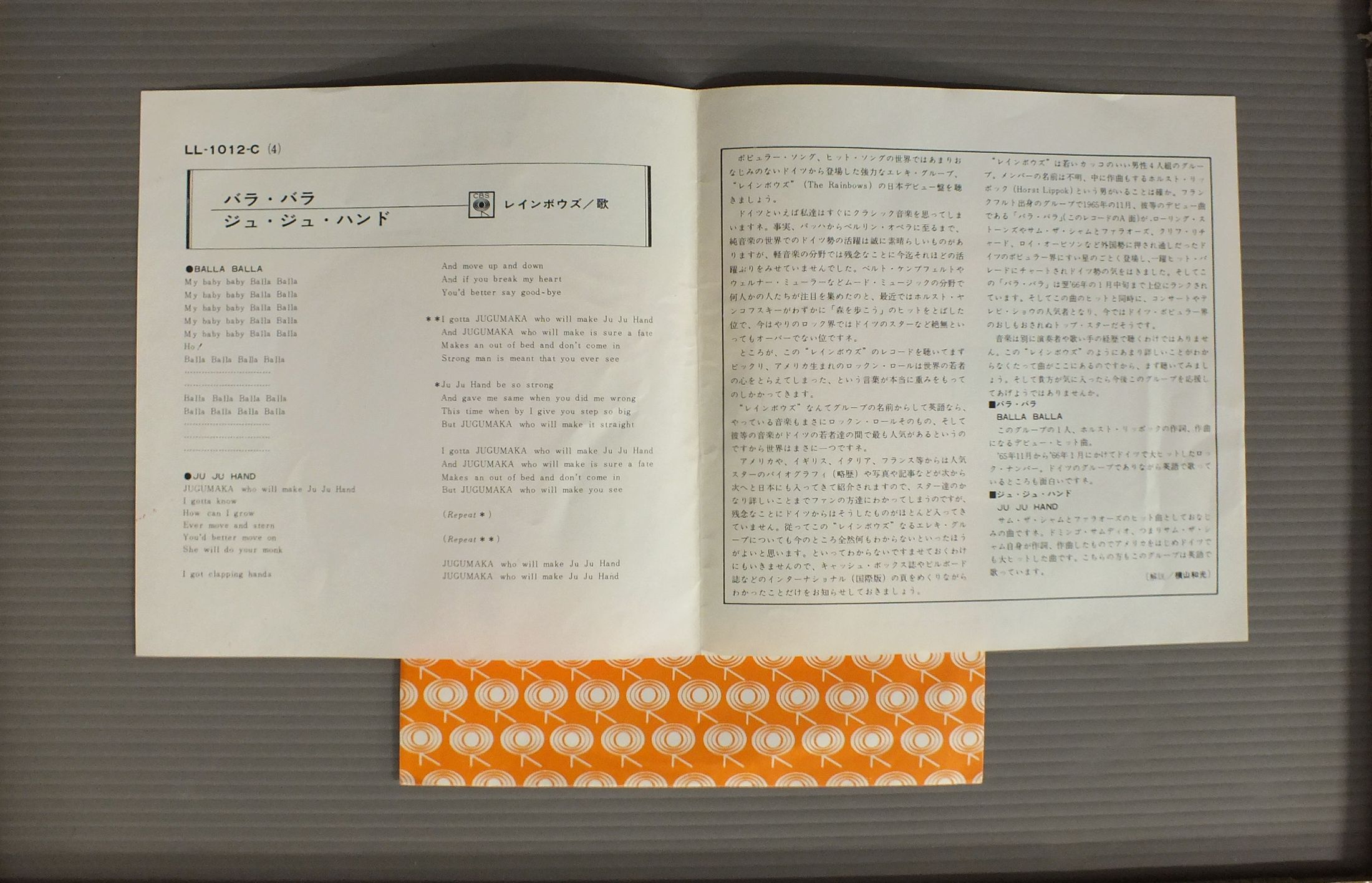 RAINBOWSレインボウズ/BALLA BALLAバラ・バラ LL1012C 製造国:日本盤 / Media:7inch外観:EX盤の状態:EX 価格(税込):¥770 送料 7inch:定形外郵便 360円~LP:定形外郵便 660円~送料は、注文の最終画面で確認頂けます。 > > RAINBOWS/BALLA BALLA 外観 (EX)特記事項:特記なし。外観EXの共通説明:ダメージが限定的。中古品としては保存状態がよい方。シミ、ヨゴレ、スレ 少し~軽度。 盤の状態 (EX)特記事項:薄いスリキズ・スレ軽くある感じ。殆どが軽微なものの様子です。盤EXの共通説明:盤面のスリキズが薄いものが少し~軽度 音に出そうなものは無いように見える(軽微なソフトティック音は除く)。 Tweet それぞれの画像をクリックすると、大きい写真が見られます こちらの商品もお勧めです 770円 ABBAアバ / VOULEZ-VOUSヴーレ・ヴー 770円 MARC BOLANマーク・ボラン / YOU SCARE ME TO DEATH霊魂の叫び 1,650円 TEN YEARS AFTERテン・イヤーズ・アフター / CRICKLEWOOD GREENクリックルウッド・グリーン 1,100円 ABBAアバ / GREATEST HITS 24 770円 ABBAアバ / ARRIVALアライバル 770円 ABBAアバ / ARRIVALアライバル 1,320円 WILLIE & THE POOR BOYSウィリーとプア・ボーイズ / ACTION FOR RESEARCH INTO MULTIPLE SCLEROSISロニー・レイン救済基金 770円 ABBAアバ / GREATEST HITS VOL.2グレイテスト・ヒッツVOL.2