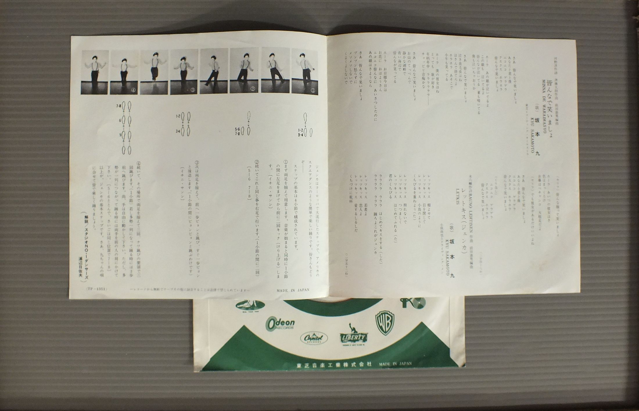 KYU SAKAMOTO坂本九/LET KISレットキス(ジェンカ) TP1351 製造国:日本盤 / Media:7inch外観:EX盤の状態:EX 価格(税込):¥880 送料 7inch:定形外郵便 360円~LP:定形外郵便 660円~送料は、注文の最終画面で確認頂けます。 レコード検索 > 1980s–90s > KYU SAKAMOTO/LET KIS 外観 (EX)特記事項:特記なし。外観EXの共通説明:ダメージが限定的。中古品としては保存状態がよい方。シミ、ヨゴレ、スレ 少し~軽度。 盤の状態 (EX)特記事項:薄いスリキズ・スレ軽くある感じ。軽微なものの様子です。盤EXの共通説明:盤面のスリキズが薄いものが少し~軽度 音に出そうなものは無いように見える(軽微なソフトティック音は除く)。 Tweet それぞれの画像をクリックすると、大きい写真が見られます こちらの商品もお勧めです 770円 HIBARI MISORA美空ひばり / 1932-35芸能生活30周年記念 歌謡曲50年 第2集 ( 昭和7- 10年) 880円 上原敏 / 憶い出の任侠・時代歌謡-ポリドール SP原盤 シリーズ 660円 MISAO MATSUBARA松原操 / COLLECTION VOL2第ニ集-浮草の唄 660円 CHIEKO SATOH佐藤千夜子 / BEST COLLECTIONオリジナル原盤による懐しの歌声シリーズ4 東京行進曲 1,210円 KEIICHIRO AKAGI赤木圭一郎 / EIEN-NO-TONY永遠のトニー 赤木圭一郎絶唱集 990円 YOSHIO TABATA田端義夫 / SHIMA SODACHI島育ち 880円 上原敏 / ポリドール(SP原盤)シリーズ -第6集- 哀愁の抒情・マドロス歌謡 1,210円 HACHIRO KASUGA春日八郎 / HACHIRO KASUGA HIT ALBUM春日八郎 -魅力のすべて-
