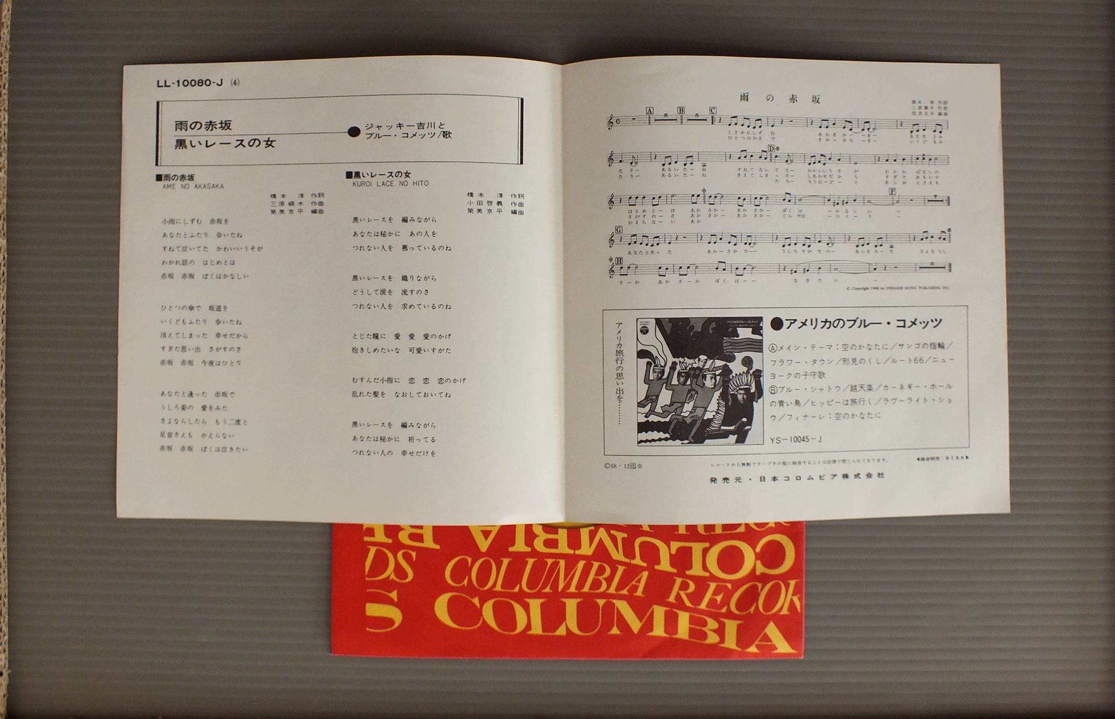 JACKEY YOSHIKAWA AND HIS BLUE COMETSジャッキー吉川とブルー・コメッツ/AME NO AKASAKA雨の赤坂 LL10080J 製造国:日本盤 / Media:7inch外観:EX盤の状態:EX 価格(税込):¥550 送料 7inch:定形外郵便 360円~LP:定形外郵便 660円~送料は、注文の最終画面で確認頂けます。 > > JACKEY YOSHIKAWA AND HIS BLUE COMETS/AME NO AKASAKA 外観 (EX)特記事項:特記なし。外観EXの共通説明:ダメージが限定的。中古品としては保存状態がよい方。シミ、ヨゴレ、スレ 少し~軽度。 盤の状態 (EX)特記事項:薄いスリキズ・スレ軽くある感じ。殆どが軽微なものの様子です。盤EXの共通説明:盤面のスリキズが薄いものが少し~軽度 音に出そうなものは無いように見える(軽微なソフトティック音は除く)。 Tweet それぞれの画像をクリックすると、大きい写真が見られます こちらの商品もお勧めです 1,320円 TAKESHI TERAUCHI & BLUEJEANS寺内タケシとブルー・ジーンズ / ELECTRIC GUITAR SONGS WITHOUT SONG歌のないエレキ歌謡曲 1,320円 TAKESHI TERAUCHI & THE BUNNYS寺内タケシとザ・バニーズ / LET`S GO CLASSICSレッツ・ゴー運命 770円 YUZO KAYAMA加山雄三 / GOLDEN ALBUMゴールデン・アルバム(あなたと共に)赤盤 660円 YUZO KAYAMA加山雄三 / 15TH ANNIVERSARY加山雄三1976 武道館ライブ 550円 TIGERSタイガース / 10 YEARS ROMANCE十年ロマンス 1,650円 MUNETAKA INOUE & HIS SHARP FIVE井上宗孝とシャープ・ファイヴ / SHARP FIVE SCREEN GO GOシャープ・ファイヴ・スクリーン・ゴーゴー 1,210円 TIGERSタイガース / TIGERS 1982十年ロマンス 660円 YUZO KAYAMA加山雄三 / AISURUTOKIHA IMA愛する時は今