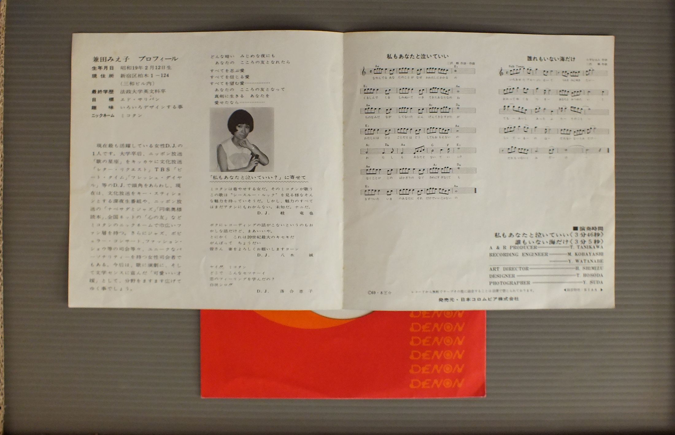 MIEKO KANEDA兼田みえ子/CONSOLATION私もあなたと泣いていい? CD30 製造国:日本盤 / Media:7inch外観:EX盤の状態:EX- 価格(税込):¥440 送料 7inch:定形外郵便 360円~LP:定形外郵便 660円~送料は、注文の最終画面で確認頂けます。 > > MIEKO KANEDA/CONSOLATION 外観 (EX)特記事項:特記なし。外観EXの共通説明:ダメージが限定的。中古品としては保存状態がよい方。シミ、ヨゴレ、スレ 少し~軽度。 盤の状態 (EX-)特記事項:薄いスリキズ・細かい表面スレ軽くある感じ。全体的には殆どが軽微なものの様子です。盤EX-の共通説明:盤面のスリキズが多少有り。音に出そうなものは殆ど無いように見える~さほど気にならないぐらいの軽いプチ数カ所程度。 Tweet それぞれの画像をクリックすると、大きい写真が見られます こちらの商品もお勧めです 770円 OSAMU KITAYAMA北山修 / OSAMU KITAYAMA ALBUM戦争を知らない子供たち 北山修作詩集 1,210円 TAKASHI NISHIOKA西岡たかし / KAZE HAKUSHI風博士 660円 KEMEケメ / TOKI GA SHIMESUMONO時が示すもの KEME VOL4 880円 SHIGERU IZUMIYA泉谷しげる / LIVE IZUMIYAライブ!!泉谷 王様たちの夜 1,980円 HAKO YAMAZAKI山崎ハコ / NINGEN MAGAI人間まがい 1,320円 JIRO`Sジローズ / FOR THE LOVE & YOU JIRO`S 1ジローズ登場 戦争を知らない子供たち 赤盤 1,320円 NEKO猫 / NEKO猫 1,760円 FIVE BALLOONS五つの赤い風船 / 1st ALBUMフォーク・アルバム 第1集