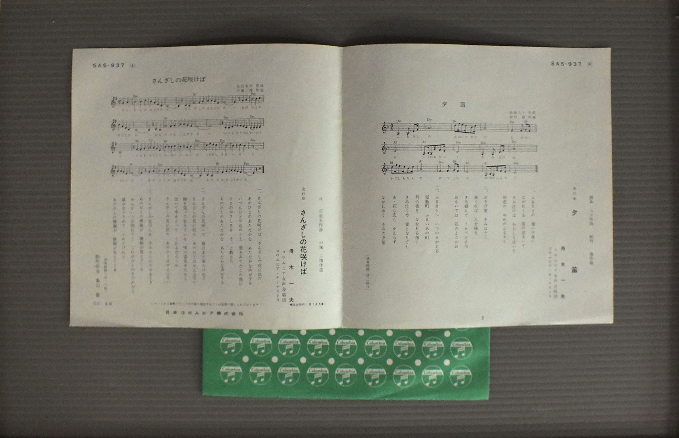 KAZUO FUNAKI舟木一夫/YUBUE夕笛 SAS937 製造国:日本盤 / Media:7inch外観:EX盤の状態:EX 価格(税込):¥550 送料 7inch:定形外郵便 360円~LP:定形外郵便 660円~送料は、注文の最終画面で確認頂けます。 > > KAZUO FUNAKI/YUBUE 外観 (EX)特記事項:特記なし。外観EXの共通説明:ダメージが限定的。中古品としては保存状態がよい方。シミ、ヨゴレ、スレ 少し~軽度。 盤の状態 (EX)特記事項:薄いスリキズ・スレ軽くある感じ。軽微なものの様子です。盤EXの共通説明:盤面のスリキズが薄いものが少し~軽度 音に出そうなものは無いように見える(軽微なソフトティック音は除く)。 Tweet それぞれの画像をクリックすると、大きい写真が見られます こちらの商品もお勧めです 880円 上原敏 / 憶い出の任侠・時代歌謡-ポリドール SP原盤 シリーズ 990円 YOSHIO TABATA田端義夫 / SHIMA SODACHI島育ち 660円 CHIEKO SATOH佐藤千夜子 / BEST COLLECTIONオリジナル原盤による懐しの歌声シリーズ4 東京行進曲 1,320円 藤山一郎 - 美空ひばり - 高峰三枝子 - 織井茂子 他 / ベスト20 特選-映画主題歌集 (2) 1,210円 高峰秀子-橋幸夫 他 / 続 日本流行歌史 880円 TOSHIRO OKAMOTO岡本敦朗 / SHIROI HANA NO SAKUKORO白い花の咲く頃 550円 HISAO ITO伊藤久男 / BEST ALBUM懐しの歌声 伊藤久男と共に 880円 上原敏 / ポリドール(SP原盤)シリーズ -第6集- 哀愁の抒情・マドロス歌謡