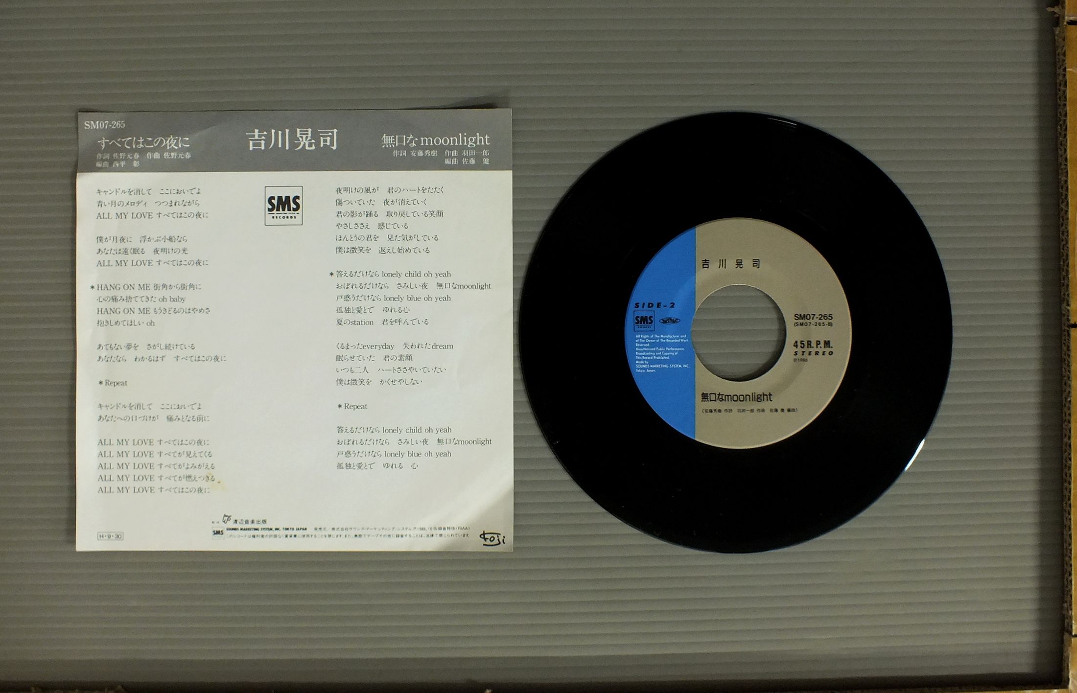 KOJI KIKKWA吉川晃司/SUBETE-HA KONO YORU NIすべてはこの夜に SM07 265 製造国:日本盤 / Media:7inch外観:EX盤の状態:EX+ 価格(税込):¥550 送料 7inch:定形外郵便 360円~LP:定形外郵便 660円~送料は、注文の最終画面で確認頂けます。 > > KOJI KIKKWA/SUBETE-HA KONO YORU NI 外観 (EX)特記事項:ヨレ有り。外観EXの共通説明:ダメージが限定的。中古品としては保存状態がよい方。シミ、ヨゴレ、スレ 少し~軽度。 盤の状態 (EX+)特記事項:薄いスリキズ・スレ少し。一見してきれいな状態です。盤EX+の共通説明:盤面の極薄いスリキズ、スレ少し程度 音に出そうなものは無いように見える(極軽微なソフトティック音は除く)。 Tweet それぞれの画像をクリックすると、大きい写真が見られます こちらの商品もお勧めです 770円 YUMING松任谷由実 / RINCARNATIONリ・インカーネイション 1,210円 PEDORO & CUPRICIOUSペドロ&カプリシャス / BEST ALBUM華麗なるニューポップスの世界 1,210円 AKIRA KOBAYASHI小林旭 / マイトガイ・ゴールデン・ヒット 440円 AMII OZAKI尾崎亜美 / SHOT 1,210円 MOTOHARU SANO佐野元春 / BACK TO THE STREET 1,210円 YUMI MATSUTOYA松任谷由実 / DA・DI・DAダ・ディ・ダ 1,980円 GOODBYE / FIFTH DIMENSION 660円 MASAMICHI SUGI杉真理 / MISTONEミストーン