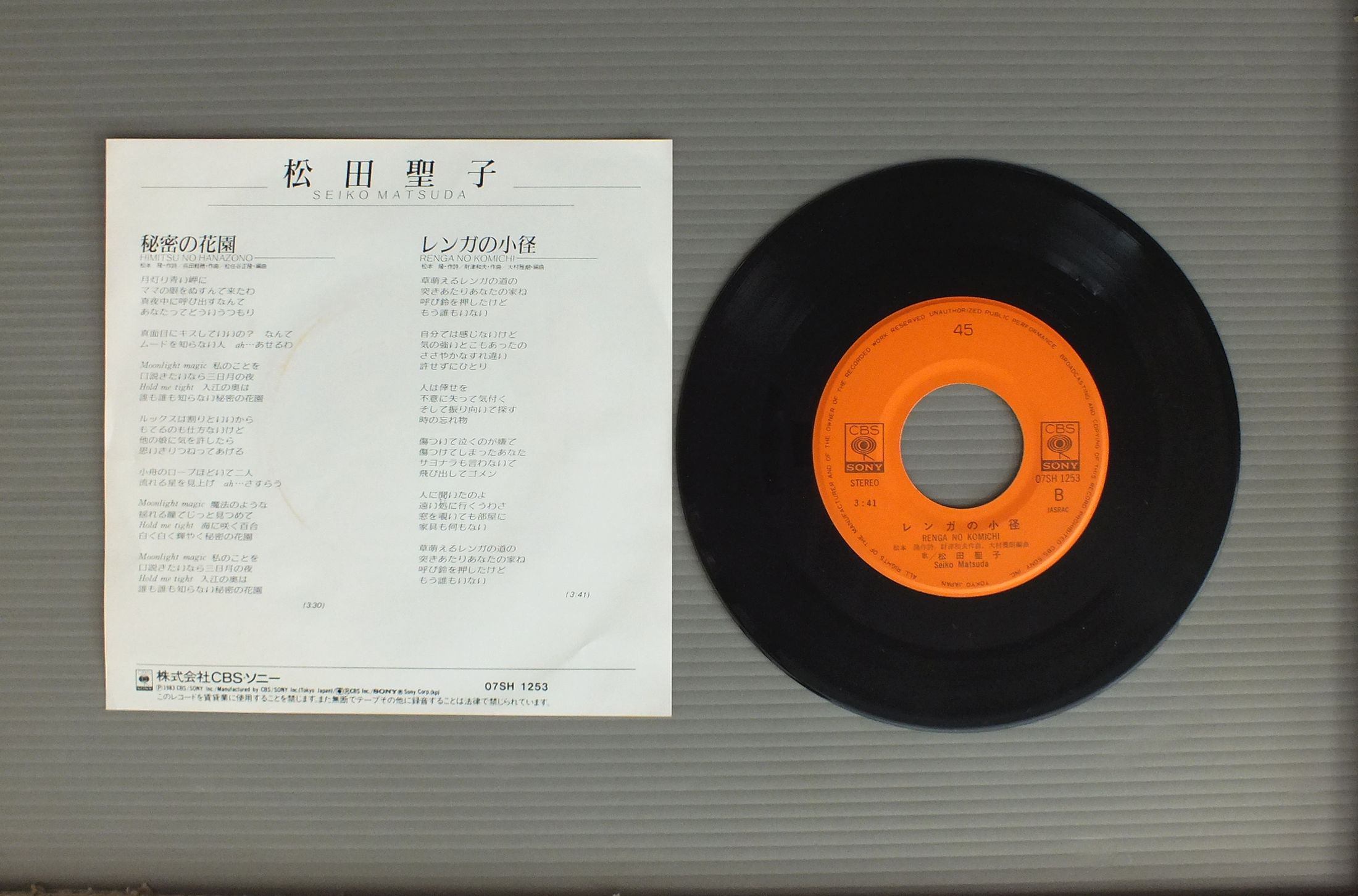 SEIKO MATSUDA松田聖子/HIMITSU NO HANAZONO秘密の花園 07SH1253 製造国:日本盤 / Media:7inch外観:EX盤の状態:EX+ 価格(税込):¥495 送料 7inch:定形外郵便 360円~LP:定形外郵便 660円~送料は、注文の最終画面で確認頂けます。 レコード検索 > J-POP > SEIKO MATSUDA/HIMITSU NO HANAZONO 外観 (EX)特記事項:裏側にリングスレ。外観EXの共通説明:ダメージが限定的。中古品としては保存状態がよい方。シミ、ヨゴレ、スレ 少し~軽度。 盤の状態 (EX+)特記事項:薄いスリキズ・スレ少し。一見してきれいな状態です。盤EX+の共通説明:盤面の極薄いスリキズ、スレ少し程度 音に出そうなものは無いように見える(極軽微なソフトティック音は除く)。 Tweet それぞれの画像をクリックすると、大きい写真が見られます こちらの商品もお勧めです 990円 PINK LADYピンク・レディー / BYE BYE CARNIVALバイ・バイ・カーニバル 1,320円 YOU HAYAMI早見優 / COLORFUL BOX 770円 SHOKO SAWADA沢田聖子 / KAZEN NO YOKAN風の予感 770円 NAOKO KAWAI河合奈保子 / STARDUST GARDEN千年庭園 770円 NAOKO KAWAI河合奈保子 / TWILIGHT DREAM 1,320円 ONYANKO CLUBおニャン子クラブ / MERRY X`MAS FOR YOU PIC DISCメリー・クリスマス・フォー・ユー 440円 YOU HAYAMI早見優 / MUSICミュージック 770円 SHOKO SAWADA沢田聖子 / SHOKO LIVE