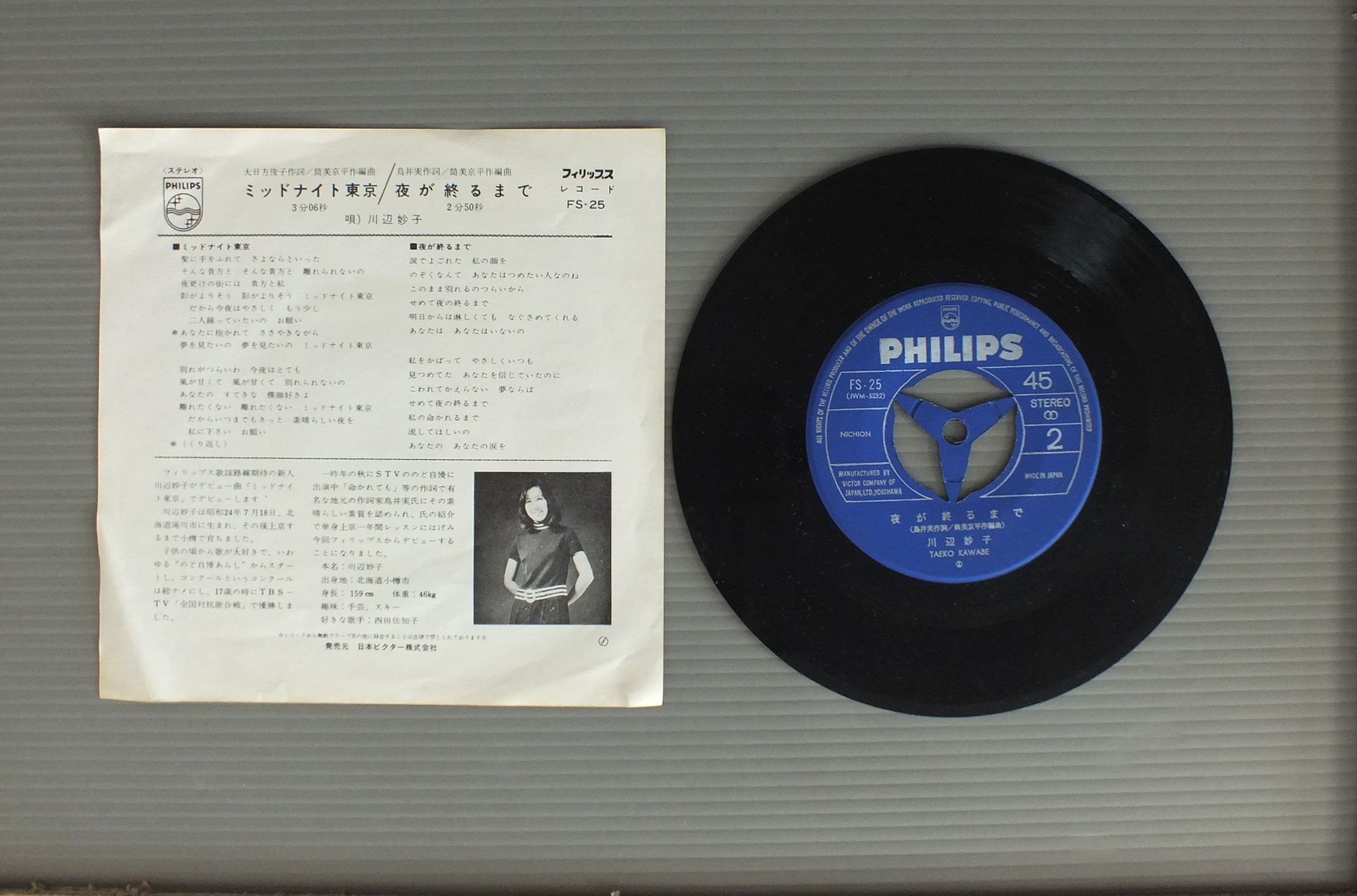 TAEKO KAWABE川辺妙子/MIDNIGHT TOKYOミッドナイト東京 FS25 製造国:日本盤 / Media:7inch外観:EX盤の状態:EX 価格(税込):¥880 送料 7inch:定形外郵便 360円~LP:定形外郵便 660円~送料は、注文の最終画面で確認頂けます。 レコード検索 > JAZZ > TAEKO KAWABE/MIDNIGHT TOKYO 外観 (EX)特記事項:ヨレ有り。外観EXの共通説明:ダメージが限定的。中古品としては保存状態がよい方。シミ、ヨゴレ、スレ 少し~軽度。 盤の状態 (EX)特記事項:薄いスリキズ・スレ軽くある感じ。軽微なものの様子です。盤EXの共通説明:盤面のスリキズが薄いものが少し~軽度 音に出そうなものは無いように見える(軽微なソフトティック音は除く)。 Tweet それぞれの画像をクリックすると、大きい写真が見られます こちらの商品もお勧めです 660円 TOMOKAZU MIURA三浦友和 / AND FRIENDS文化放送 三浦友和と仲間たち 赤頭巾ちゃん秘密だよ 1,980円 GOODBYE / FIFTH DIMENSION 1,210円 YUMI MATSUTOYA松任谷由実 / DA・DI・DAダ・ディ・ダ 990円 CAROLキャロル / 1975 4.13.1975 4.13. 990円 HATUMI SHIBATAしばたはつみ / BEST 16マイ・ラグジュアリー・ナイト しばたはつみ ベスト16 880円 MIDORI KINOUCHI木之内みどり / ORIGINAL BEST COLLECTIONオリジナル・ベスト・コレクション 990円 MAYUMI ITUWA五輪真弓 / SHUNNSHUU春愁 990円 TADUMI TOYOSHIUMA豊島たづみ / STILL NIGHT