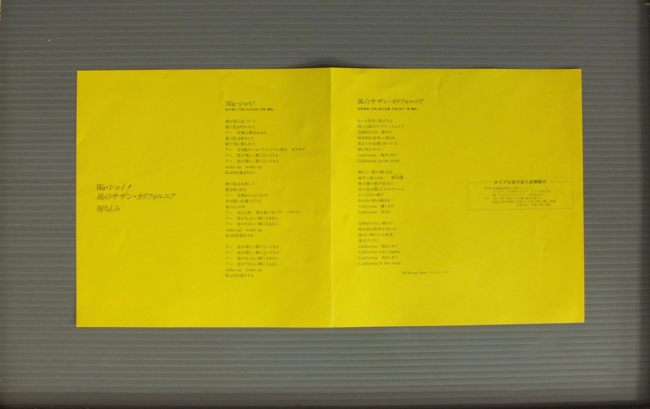 CHIEMI HORI堀ちえみ/WASHOIWA・ショイ! 7A0501 製造国:日本盤 / Media:7inch外観:EX盤の状態:EX+ 価格(税込):¥550 送料 7inch:定形外郵便 360円~LP:定形外郵便 660円~送料は、注文の最終画面で確認頂けます。 レコード検索 > SWING/BIG BAND > CHIEMI HORI/WASHOI 外観 (EX)特記事項:特記なし。外観EXの共通説明:ダメージが限定的。中古品としては保存状態がよい方。シミ、ヨゴレ、スレ 少し~軽度。 盤の状態 (EX+)特記事項:薄いスリキズ・スレ少し。一見してきれいな状態です。盤EX+の共通説明:盤面の極薄いスリキズ、スレ少し程度 音に出そうなものは無いように見える(極軽微なソフトティック音は除く)。 Tweet それぞれの画像をクリックすると、大きい写真が見られます こちらの商品もお勧めです 770円 SHOKO SAWADA沢田聖子 / YUMENO KATACHI夢のかたち 1,210円 MOMOE YAMAGUCH山口百恵 / MOBIUS`S GAMEメビウス・ゲーム 1,210円 HIROMI IWASAKI岩崎宏美 / ROMANTIC CONCERT 2ロマンティック・コンサート2 + ピンナップ付 1,210円 SONOKO KAWAI河合その子 / MODE DE SONOKO 880円 SEIKO MATSUDA松田聖子 / WINDY SHADOW 990円 YOU HAYAMI早見優 / RECESSリーセス 770円 SHOKO SAWADA沢田聖子 / SHOKO LIVE 440円 ERI E-AREA新田恵利 / ERI E-AREA