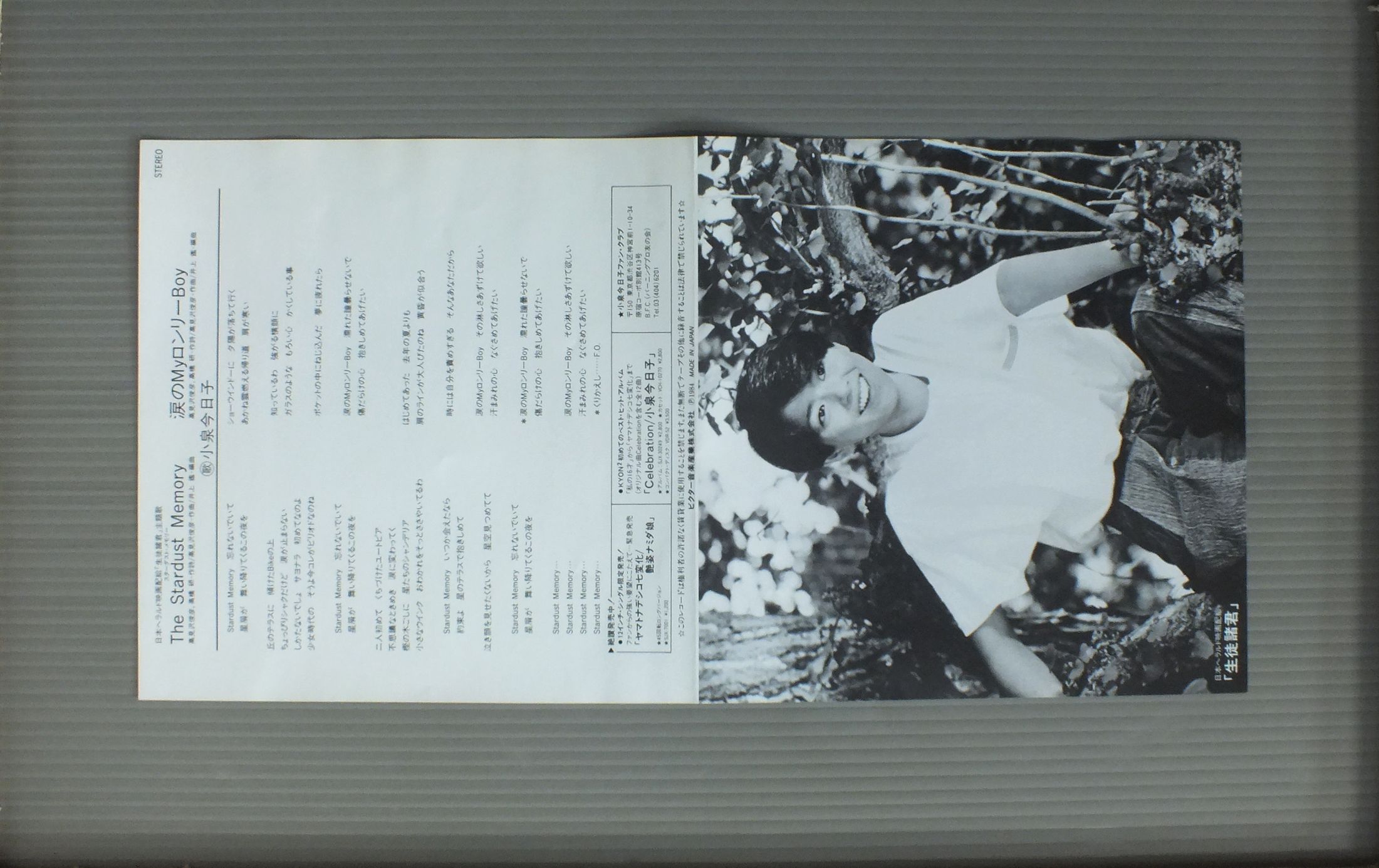 KYOKO KOIZUMI小泉今日子/STARDUST MEMORYスターダスト・メモリー SV7460 製造国:日本盤 / Media:7inch外観:EX盤の状態:EX+ 価格(税込):¥330 送料 7inch:定形外郵便 360円~LP:定形外郵便 660円~送料は、注文の最終画面で確認頂けます。 > > KYOKO KOIZUMI/STARDUST MEMORY 外観 (EX)特記事項:特記なし。外観EXの共通説明:ダメージが限定的。中古品としては保存状態がよい方。シミ、ヨゴレ、スレ 少し~軽度。 盤の状態 (EX+)特記事項:薄いスリキズ・スレ少し。一見してきれいな状態です。盤EX+の共通説明:盤面の極薄いスリキズ、スレ少し程度 音に出そうなものは無いように見える(極軽微なソフトティック音は除く)。 Tweet それぞれの画像をクリックすると、大きい写真が見られます こちらの商品もお勧めです 990円 PINK LADYピンク・レディー / BYE BYE CARNIVALバイ・バイ・カーニバル 1,870円 ATSUMI KURASAWA倉沢敦美 / MESSAGEメッセージ 770円 YUKO ISHIKAWA石川優子 / YUKO TOKIMEKU-KORO優子ときめくころ 1,320円 YOSHIMI IWASAKI岩崎良美 / RING-A-DING (1st ALBUM)リング・ア・ディング (1st ALBUM) 880円 SONOKO KAWAI河合その子 / SONOKOその子 1,210円 HIROMI IWASAKI岩崎宏美 / ROMANTIC CONCERT 2ロマンティック・コンサート2 + ピンナップ付 770円 MIKI ASAKURA麻倉未希 / DANCIN` M. 1,210円 TSUKASA ITOH伊藤つかさ / SAYONARA KONNICHIWAさよなら、こんにちは